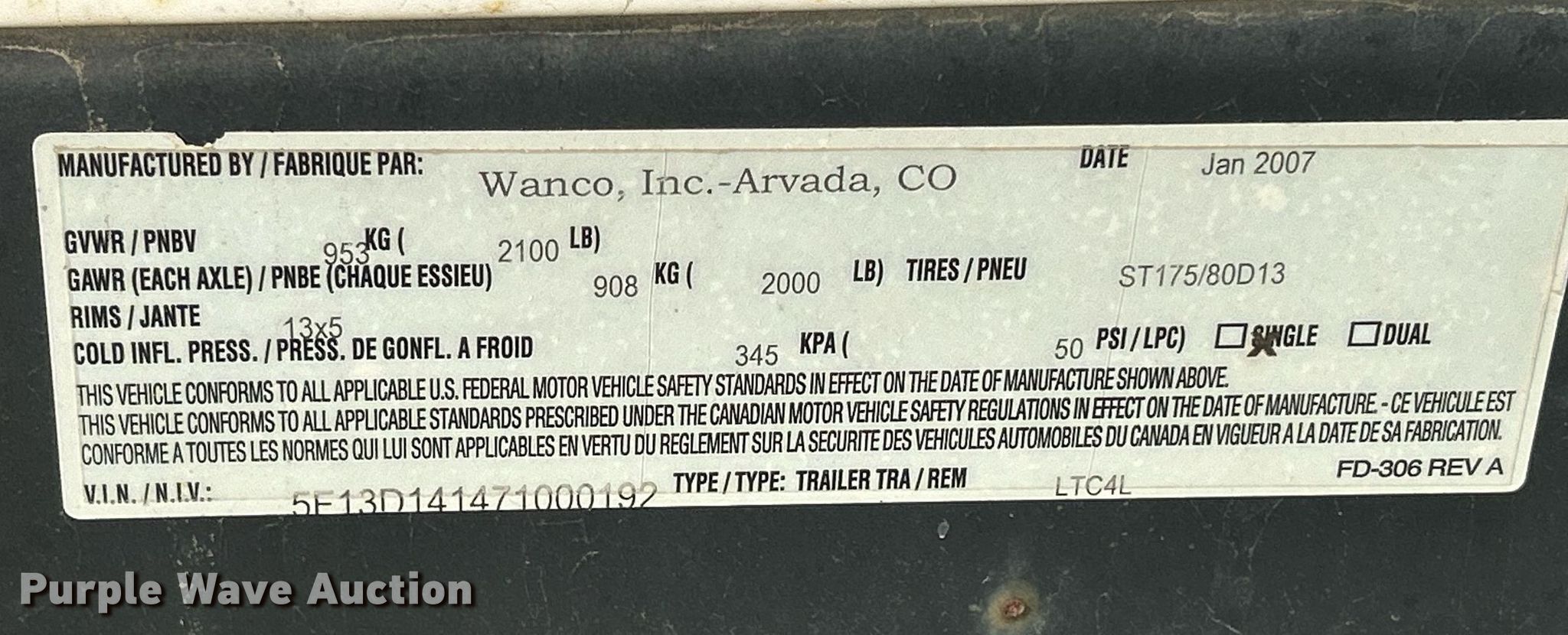 - VIN: 5F13D141471000192