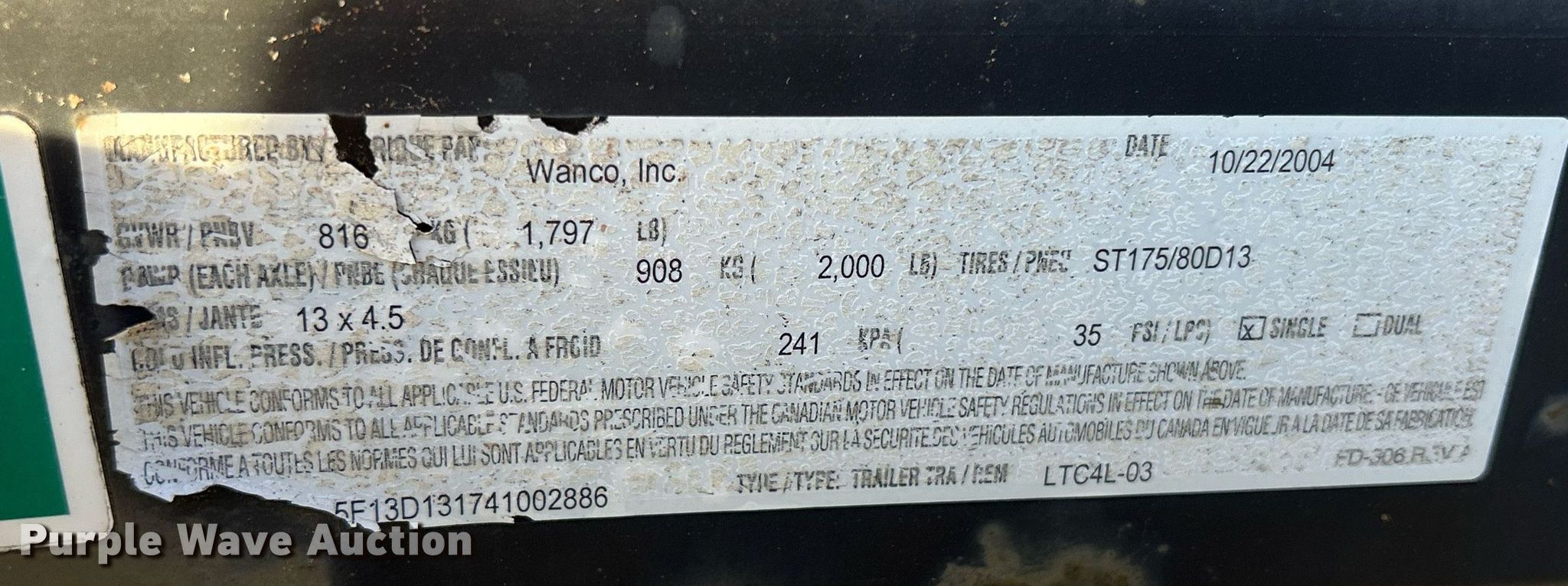 2004 Wacker LTC4 light plant. Hours: 1,556 on meter, VIN: 5F13D131741002886. Engine Lomardini, Cylinders: 3, Fuel type: Diesel. Features Light plant Bulbs: 4, Watts: 1,000, Tower height: 30', Hoist: Manual, Stabilizers. Trailer 10' L x 48" W, Ball hitch size: 2", Suspension: Spring, Axles: Single, Tire size: 175/80R13, GVWR: 1,797 lbs. Transfer of ownership documentation will be a bill of sale. Bobcat of Waterloo - Cedar Falls. 4325 University Avenue. Cedar Falls, IA 50613
