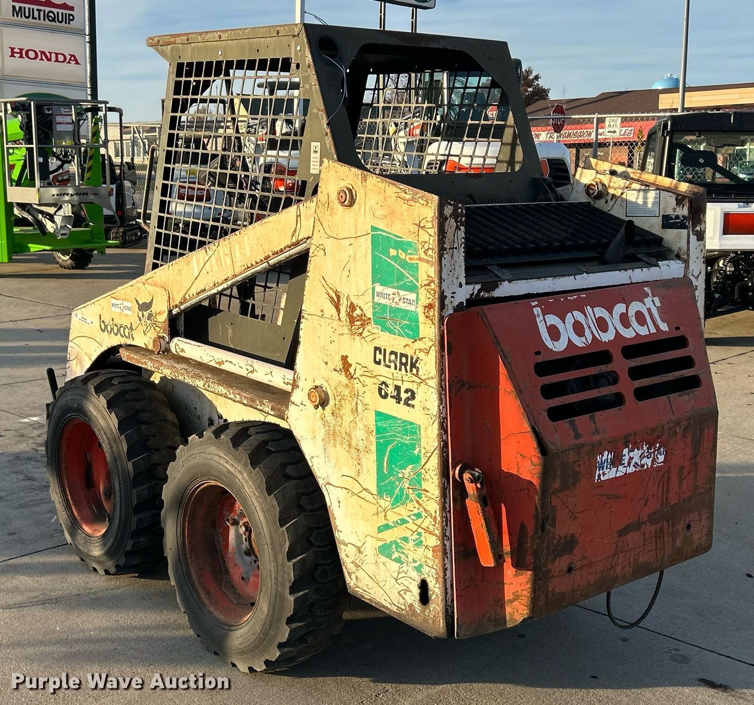 1981 Bobcat 642 skid steer loader. Hours: 3,253 on meter, Serial: 5014M11321. Engine Cylinders: 4, Fuel type: Diesel. Transmission Hydrostatic. Operators station Bucket control: Foot. Features Auxiliary hydraulics, Quick coupler: Manual. Tires Size: 10-16.5. Notes Engine disassembled, parts may be missing, Non-operational unit. Bobcat of Waterloo - Cedar Falls. 4325 University Avenue. Cedar Falls, IA 50613