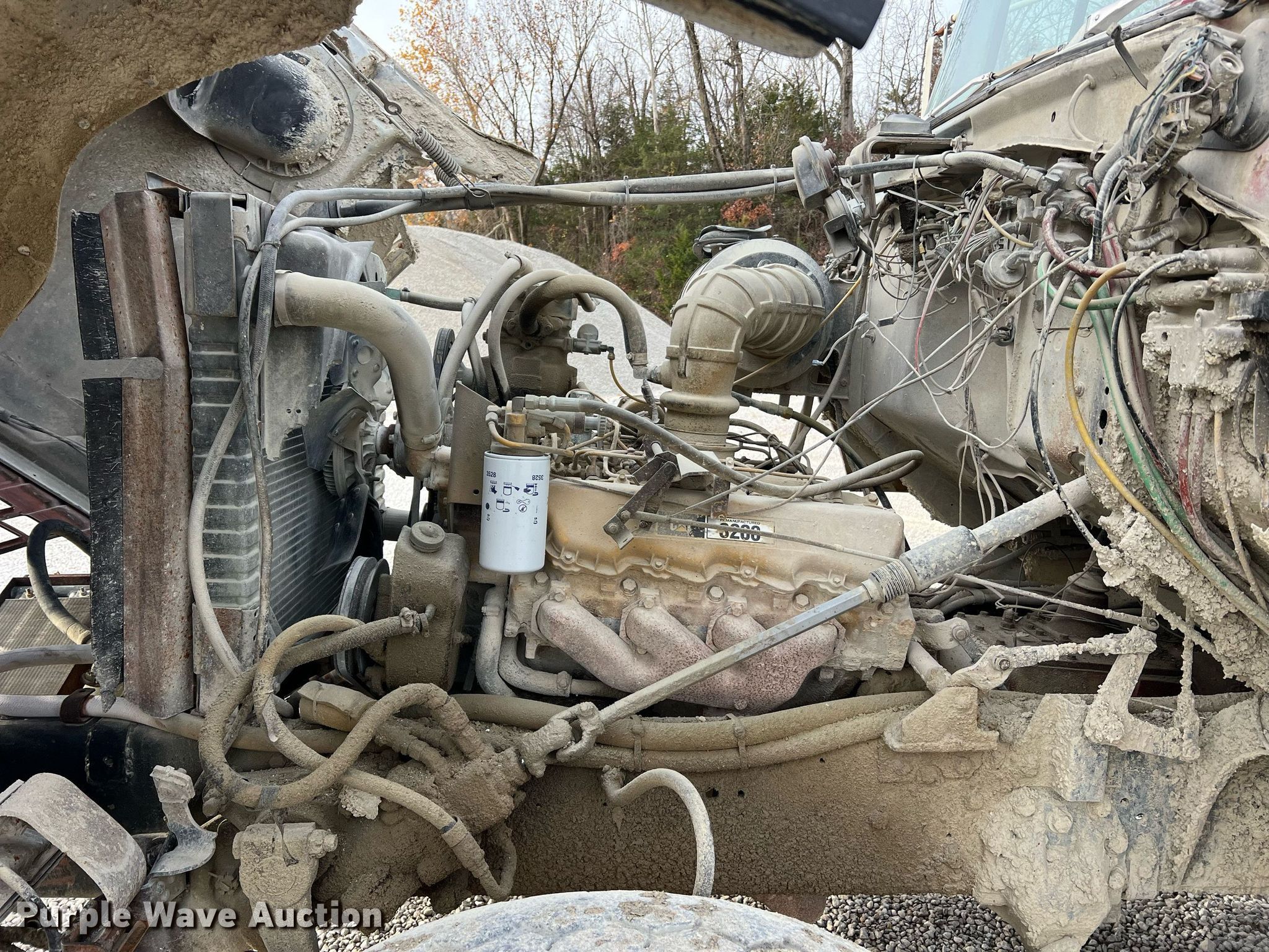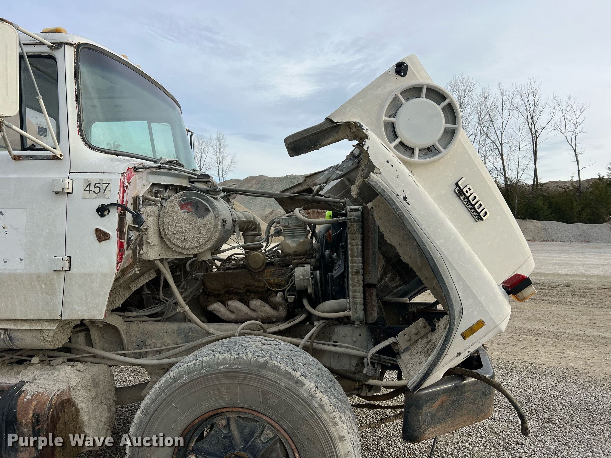 1982 Ford L8000 water truck. Miles: 63,023 on odometer, Hours: 1,422 on meter, VIN: 1FDYU80U8CVA18970. Engine Caterpillar 3208, Displacement: 10.4L, Cylinders: 6, Fuel type: Diesel, HP: 250. Transmission Eaton Fuller Road ranger RT-6613, Manual, Speed: 13. Chassis Axles: Tandem, Differential lock: Inter-axle, Suspension: Spring over walking beam, Brakes: Air, PTO, GVWR: 50,000 lbs, Wheelbase: 222". Interior Heat. Features Bed / tank 15'L x 94" W, Spray bar: Rear, Top fill. Tires Size: 385/65R22.5. Notes Front mounted pump missing, Front PTO shaft hits radiator housing, Tank leaks. Missouri title. Capital Quarries Company, Inc.. 23400 Old Highway 63 South. Hartsburg, MO 65039