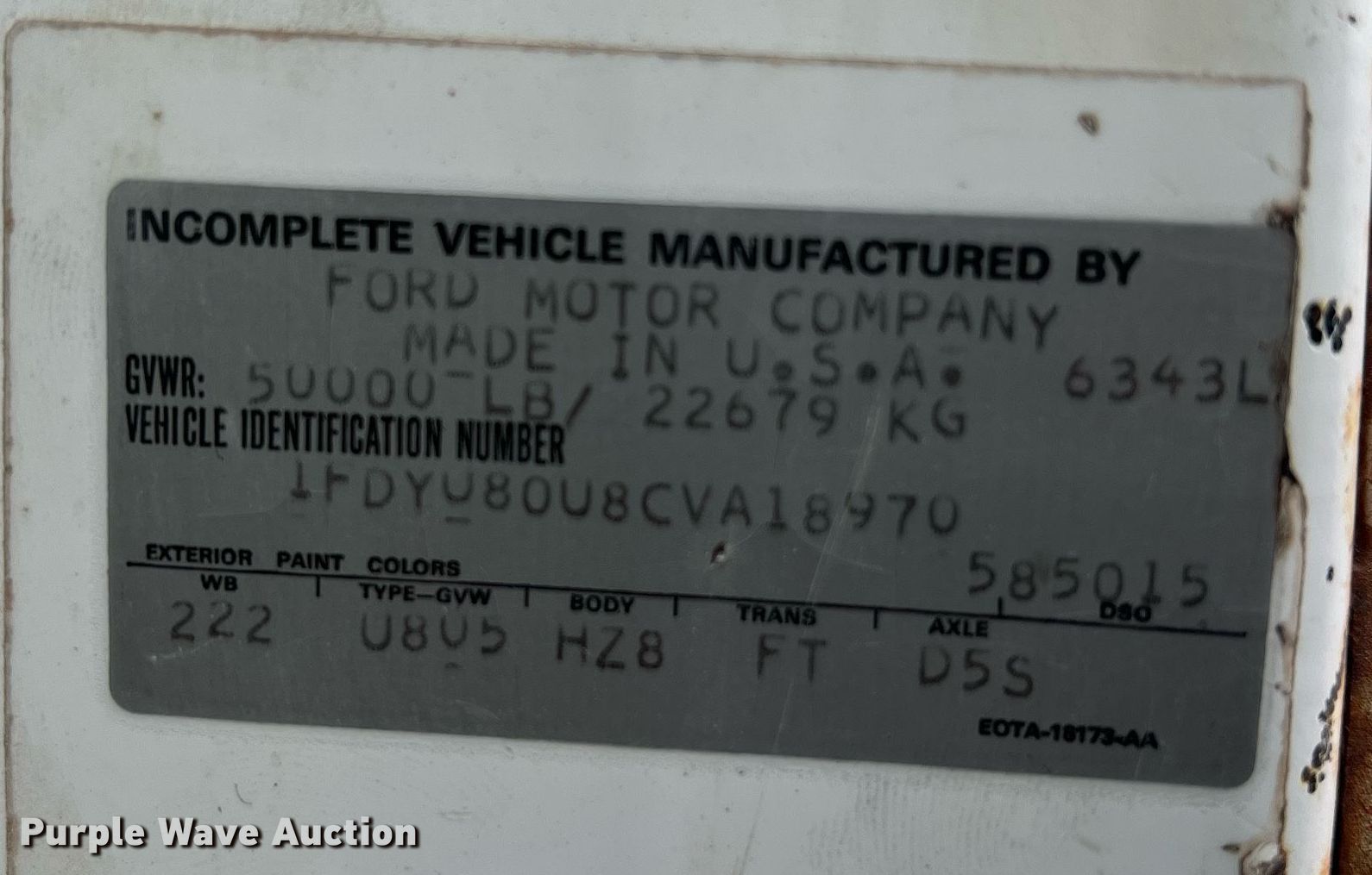 - VIN: 1FDYU80U8CVA18970