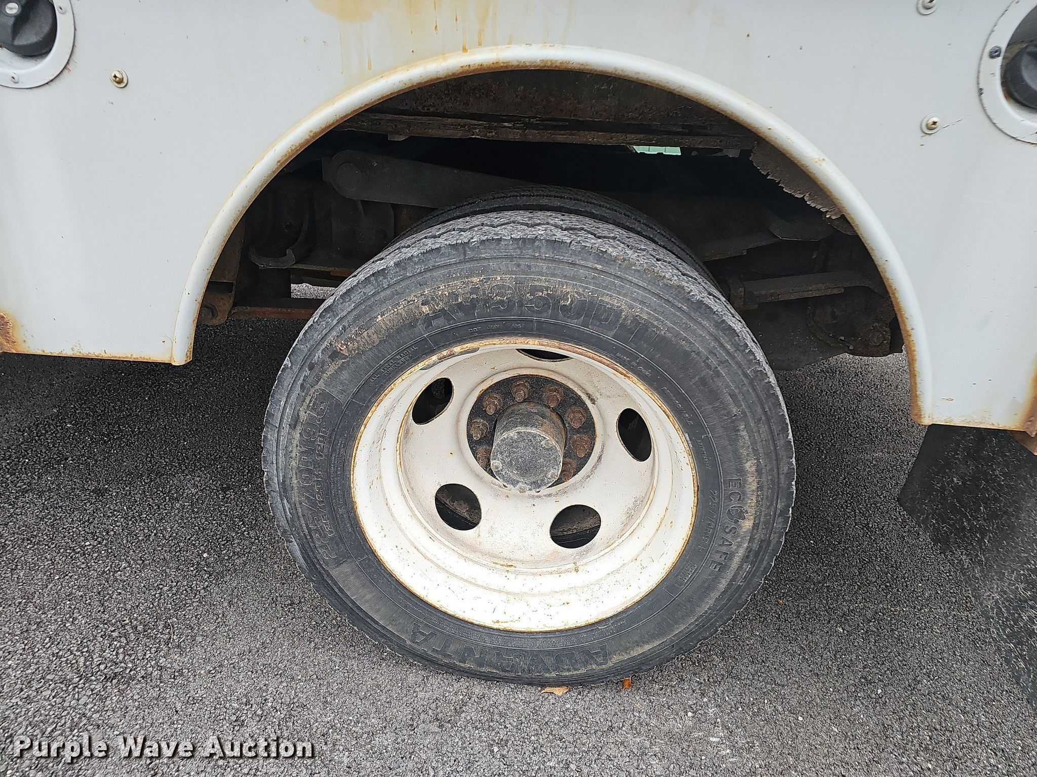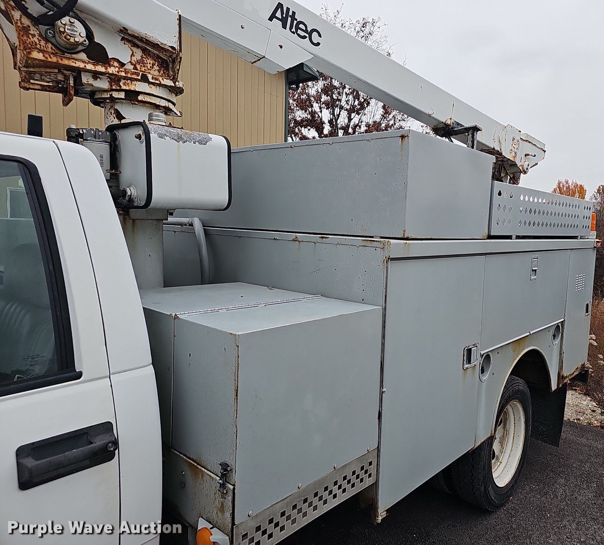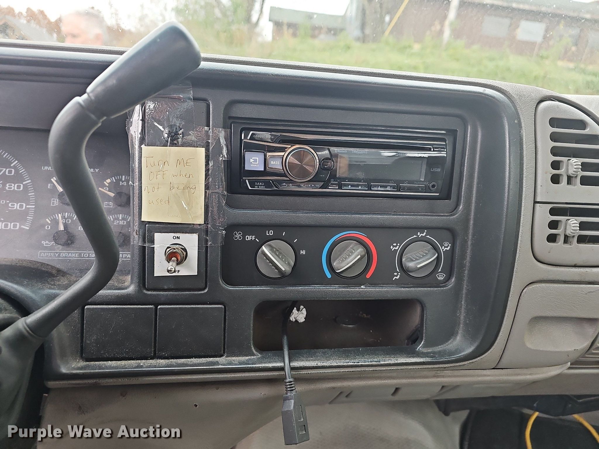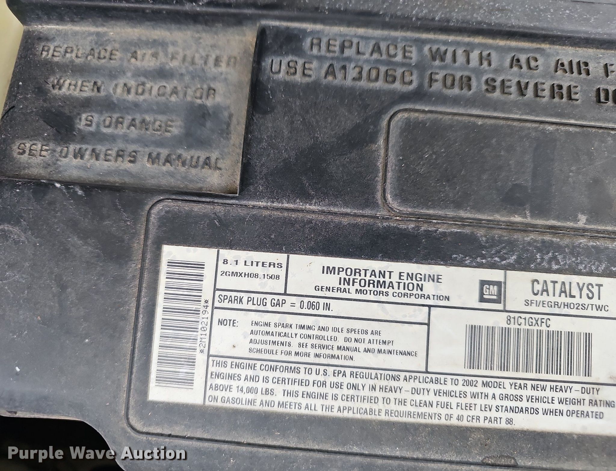2002 Chevrolet Silverado 3500HD bucket truck. Miles: 206,484 on odometer, VIN: 3GBKC34G32M102194. Engine Displacement: 8.1L V8 OHV, Cylinders: 8, Fuel type: Gas. Transmission Automatic. Chassis Axles: Single, Suspension: Spring, Brakes: Hydraulic, PTO. Interior Heat. Features Bed Steelweld, 11'L x 90" W, Engine Onan 6.5NHDFB30502M, Serial: K010301737, Displacement: 980cc, Cylinders: 2, Fuel: Gas, KW: 6.5, Boom Altec, Serial: 1101BV8818, Boom length: 30.6', Maximum lift capacity: 350 lbs, Boom type: Telescopic, Man basket, Boom controls Platform/ basket.. Tires Size: 225/70R19.5. Notes Dash warning indicator: ABS. Missouri title. Title distribution may be delayed up to 14 days from verification of funds. Perfect Signs. 8953 East State Highway 76. Reeds Spring, MO 65737