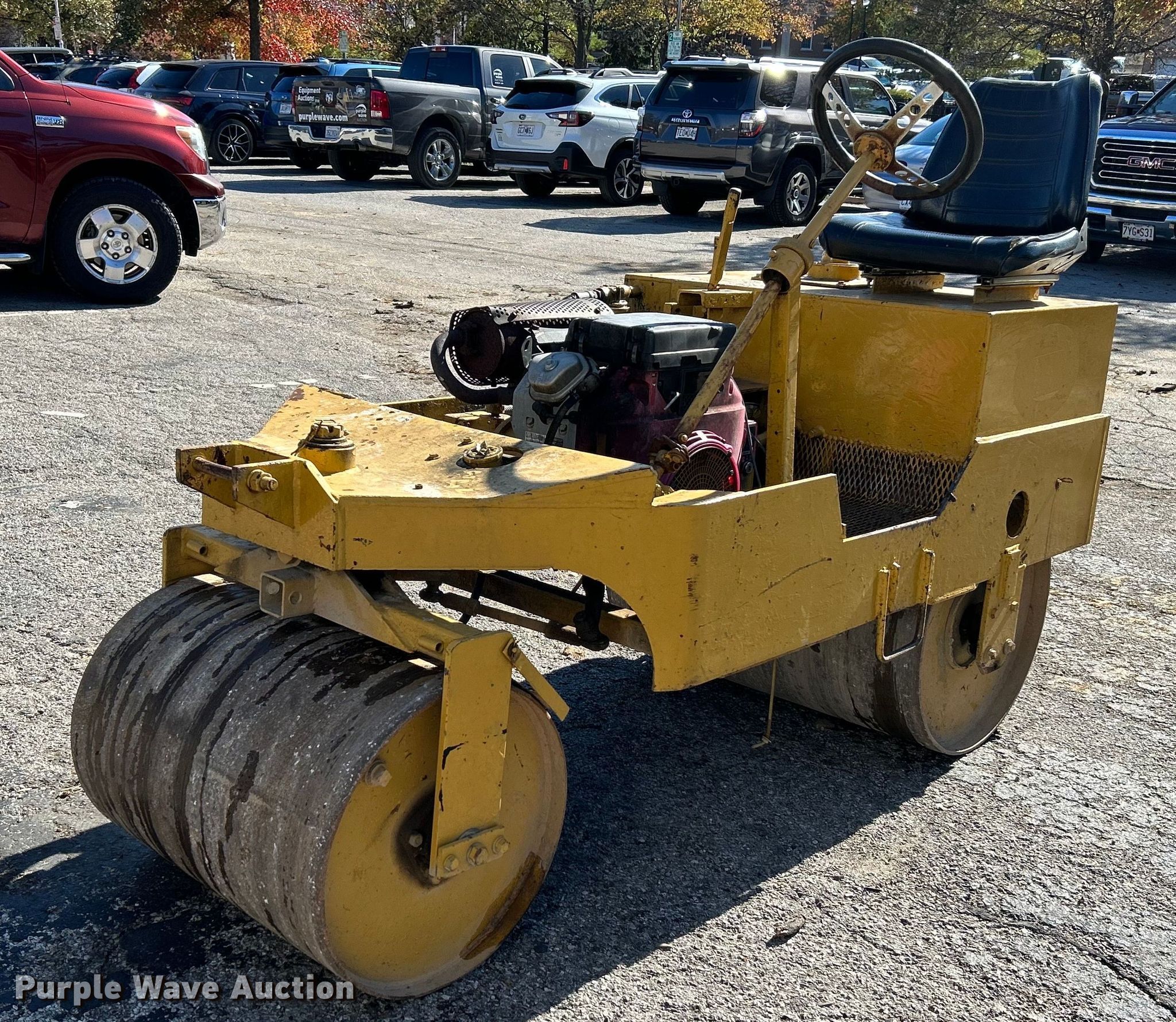Double drum roller. Hours: Unknown. Engine Honda GX160, Cylinders: 2, Fuel type: Gas. Transmission Hydrostatic. Features Drum: Smooth, Front drum Width: 27.5", Diameter: 19", Rear drum Width: 34", Diameter: 23", Drum scrapers: Front, Rear, Water spray applicator: Front, Rear. Notes No hour meter. JL Contracting. Kirkwood, MO 63122