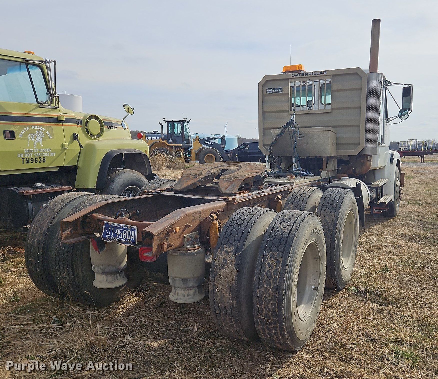 2001 Freightliner FL112 semi truck. Miles: Unknown, VIN: 1FUJBGAS81HJ45354. Engine Caterpillar C-12, Displacement: 12.0L, Cylinders: 6, Fuel type: Diesel, Engine brake. Transmission Manual. Chassis Axles: Tandem, Differential lock: Inter-axle, Suspension: Air, Brakes: Air, GVWR: 52,000 lbs. Interior Heat, Cruise control Beds: Single. Features Deck plate: Aluminum, Fifth wheel type: Air operated, Fuel tank: Dual. Tires Front: 255/80R22.5, Rear: 11R22.5. Notes Dash warning indicator: Check engine, ABS, Non-operational dash cluster. Montana title. Hepler, KS 66746