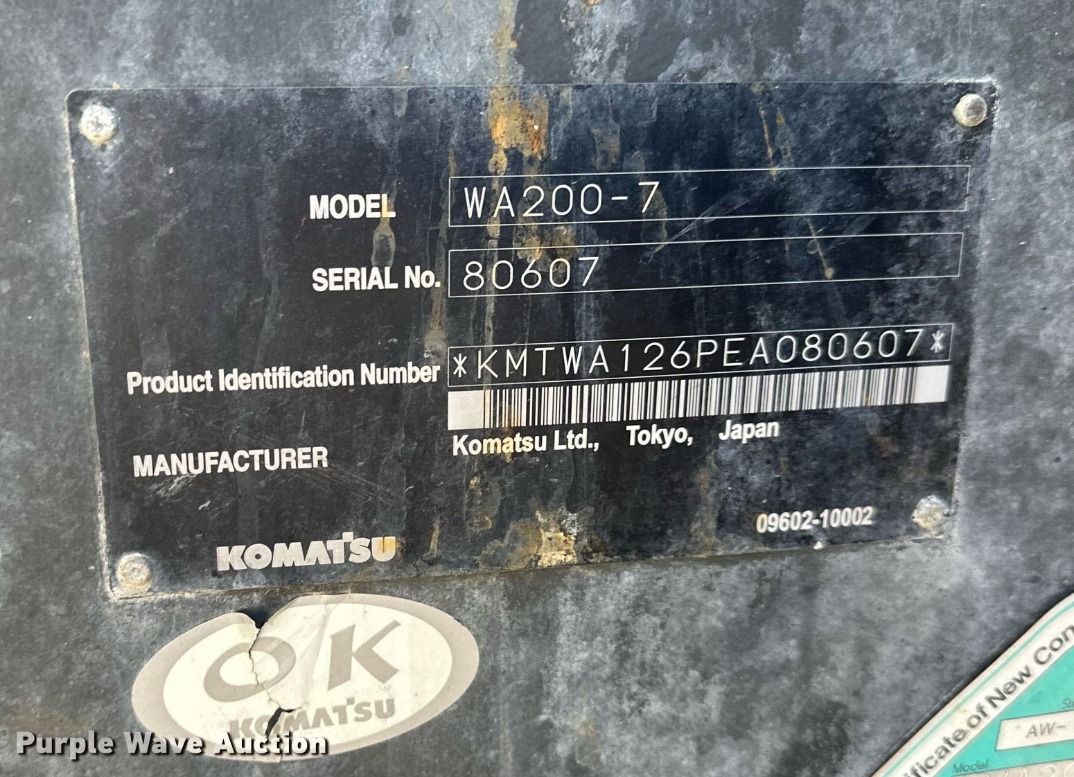 Purple Wave is selling a used Wheel Loader in Kansas. This item is a 2016 Komatsu WA200-7 wheel loader with the following: Hours: 15,600 on meter, Serial: KMTWA126PEA080607