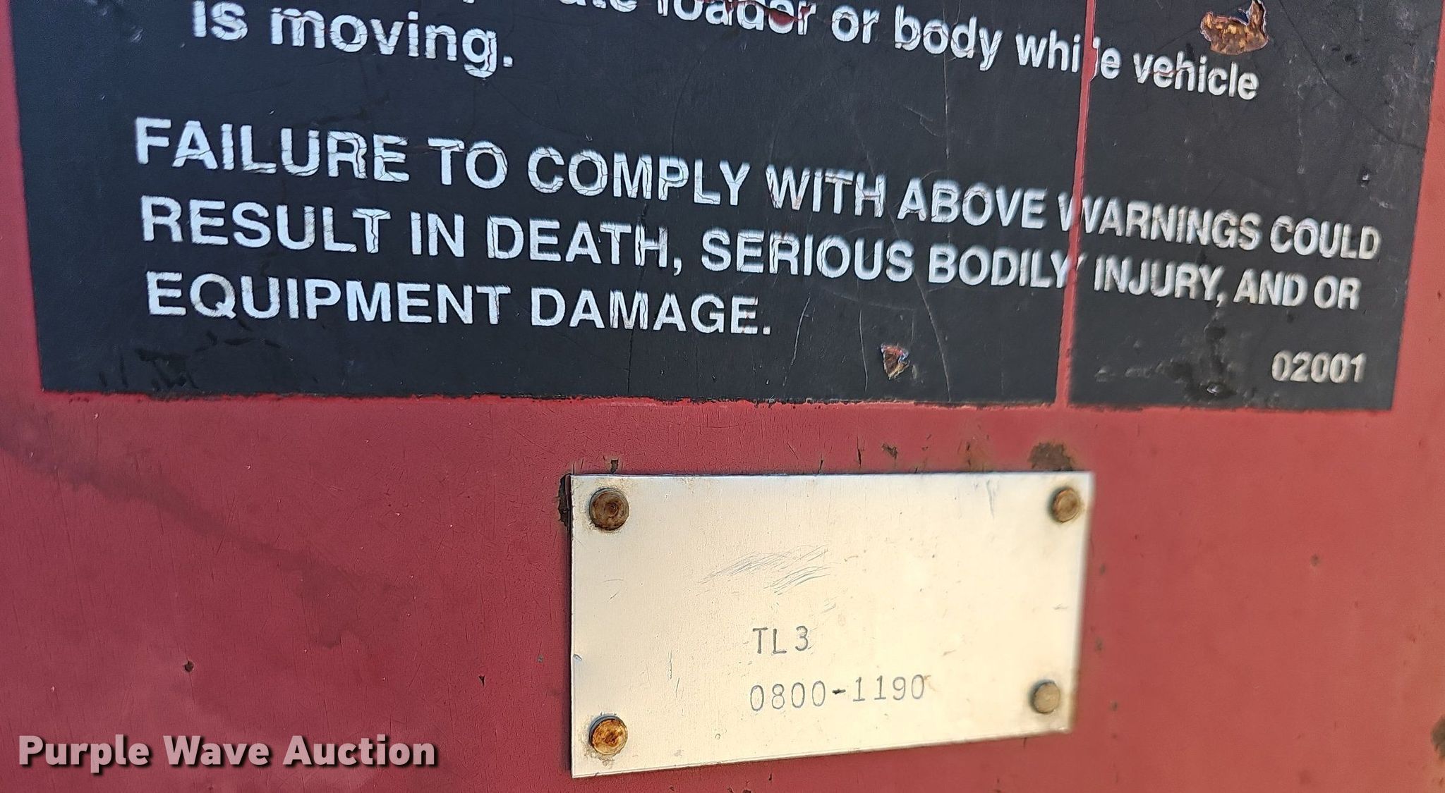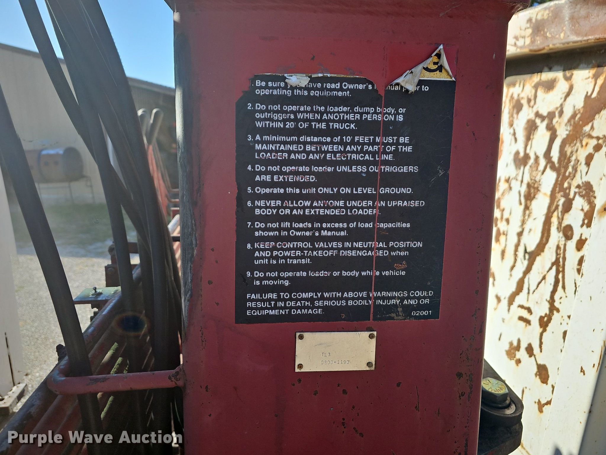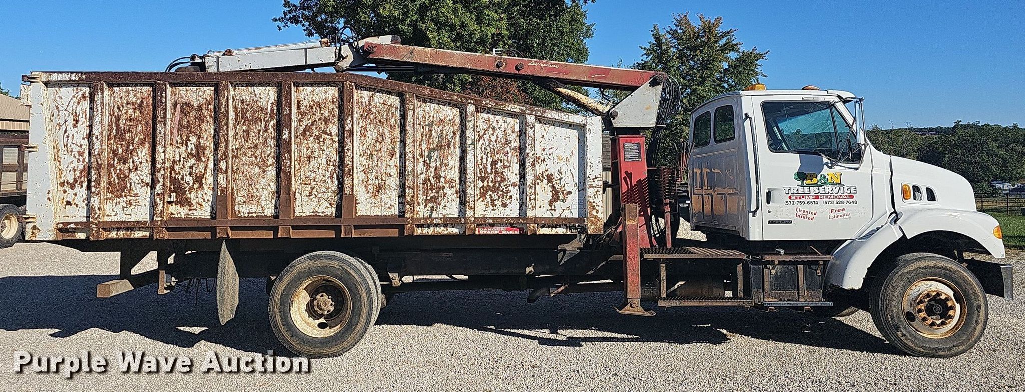 2000 Sterling L-Line dump truck. Miles: 218,863 on odometer, VIN: 2FZHAJAA6YAG32259. Engine Caterpillar 3126, Displacement: 7.2L, Cylinders: 6, Fuel type: Diesel. Transmission Automatic. Chassis Axles: Single, Suspension: Spring, Brakes: Air, PTO, GVWR: 33,000 lbs FAWR: 12,000 lbs, RAWR: 21,000 lbs. Interior AC, Heat, Cruise control. Features Dump bed Best Equipment Co, 15'L x 102" W, Side height: 62", Bed type: Steel, Ram: Dual, End gate: Manual, Dump bed 46"H, 62"H, Lighting grapple , Model TL3. Tires Size: 11/R22.5. Notes Fuel gauge issues, Dash warning indicator: ABS, Windshield chipped or cracked. Missouri title. Title distribution may be delayed up to 14 days from verification of funds. B&N Tree Service and Debris Removal. 12805 Highway N. Dixon, MO 65459