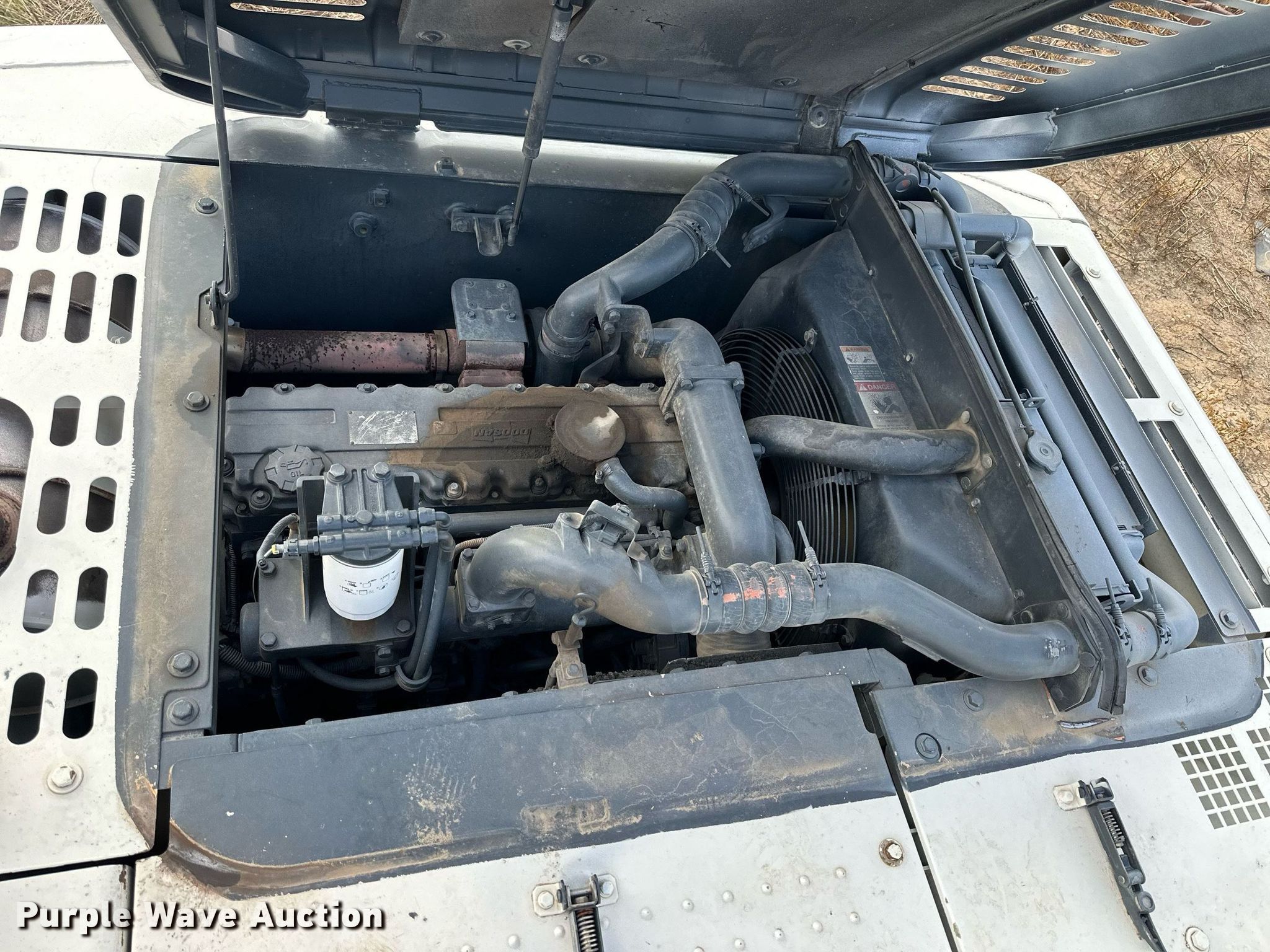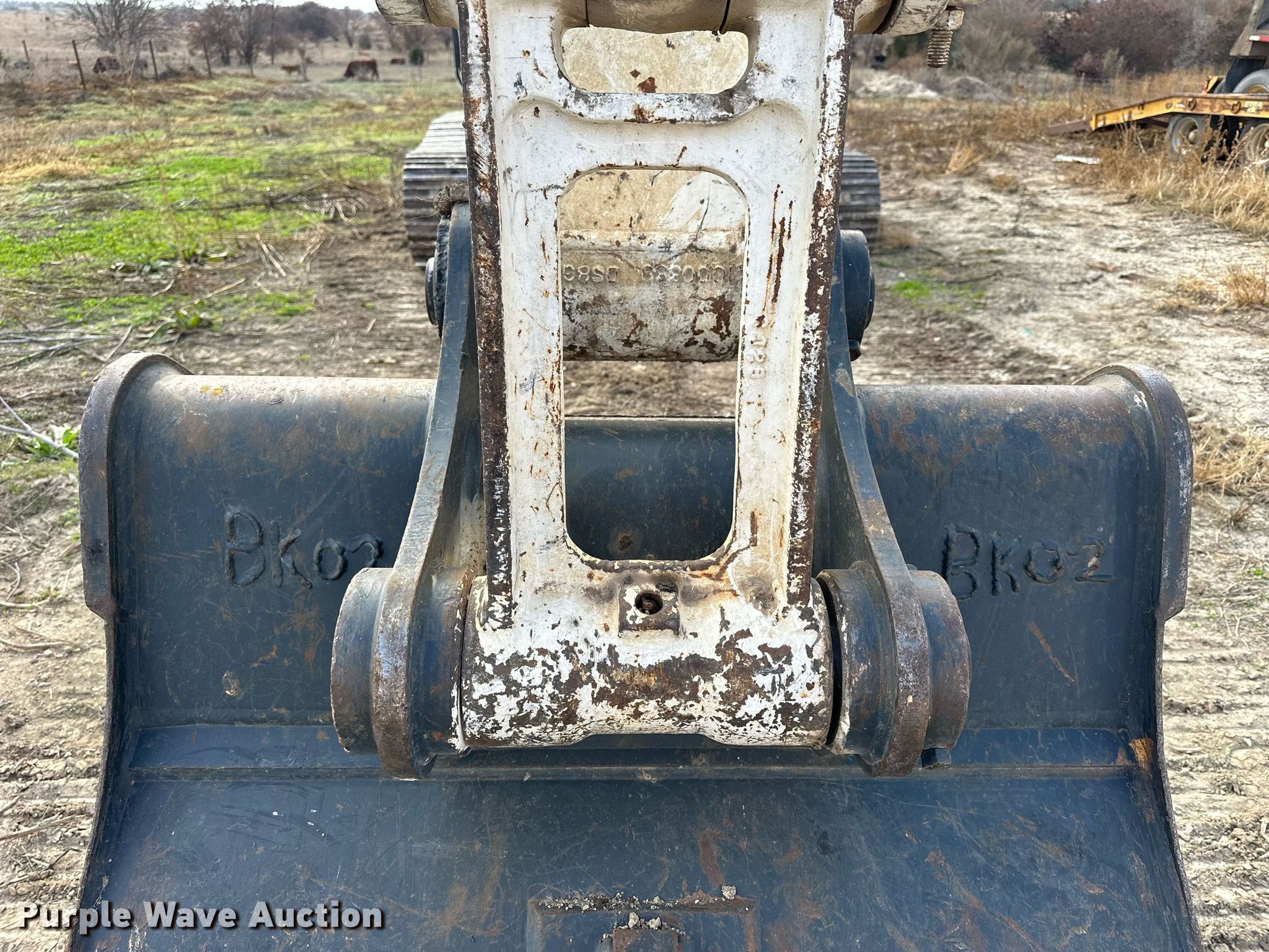 2008 Terex TXC225LC-2 excavator. Hours: 7,389 on meter, Serial: DHKHFXS0H80040090. Engine Doosan DL06, Displacement: 5.8L, Cylinders: 6, Fuel type: Diesel. Transmission Hydrostatic, Two speed travel. Operators station Enclosed cab, AC, Heat. Features Auxiliary hydraulics, Boom Standard, Stick Stick length: 12', Bucket Width: 44", Teeth: 6. Tracks Width: 32", Steel, Grouser pads: Triple. Notes Glass missing, Non-operational AC, Heat, Non-operational display , One left track pad missing. 1914 19th Road. Clay Center, KS 67432