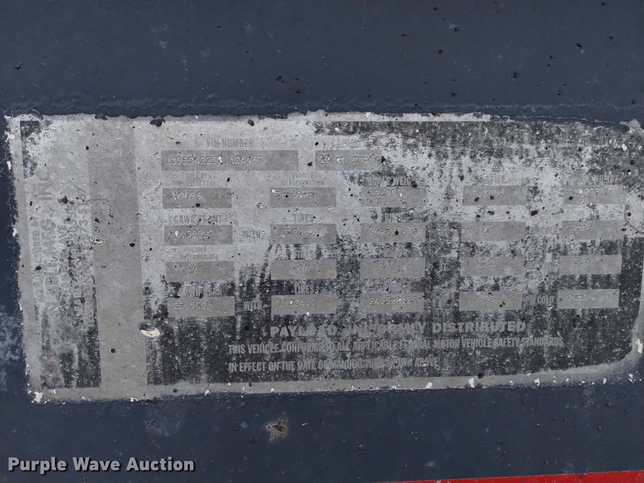 Purple Wave is selling a used Bottom Dump Trailer in Nebraska. This item is a 1996 Corn Belt Mfg. S-4202 bottom dump trailer with the following: VIN: 1C9SS4225T1424467