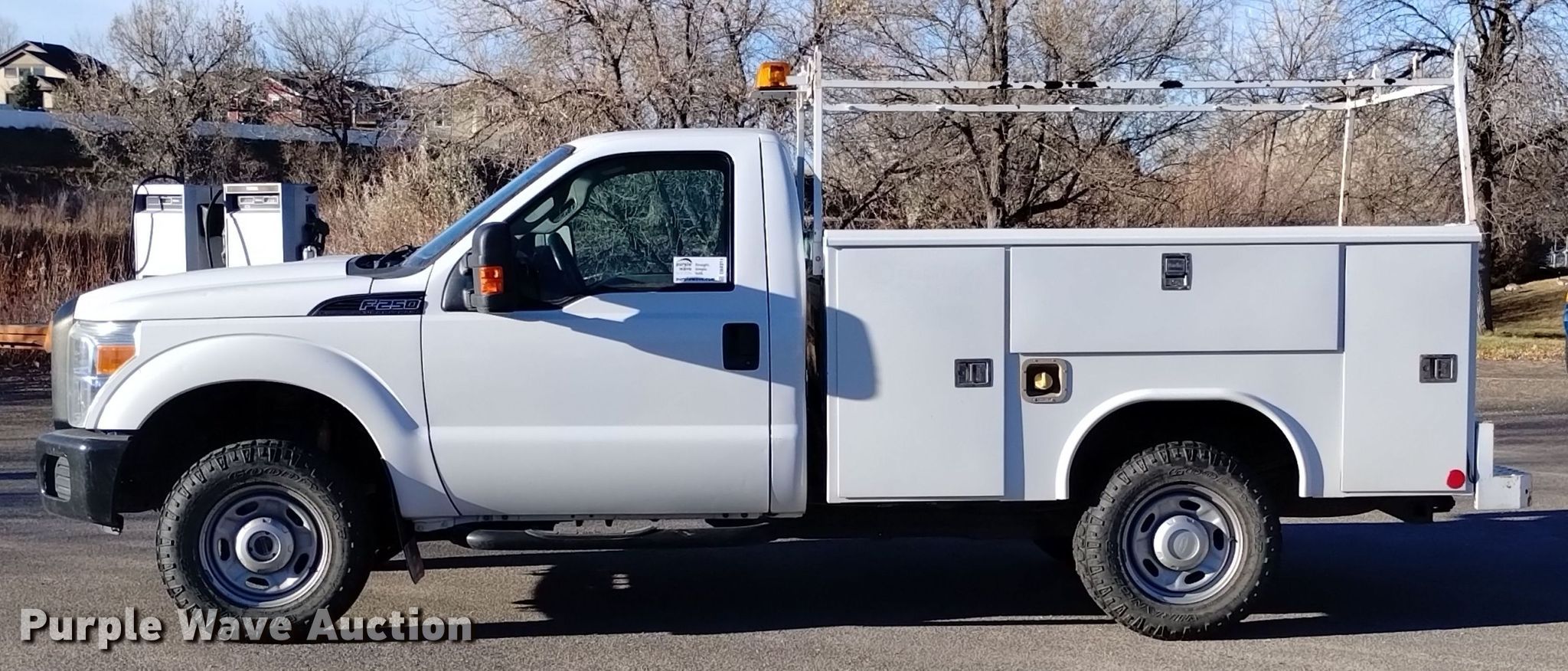 This 2012 Ford F250 Super Duty utility bed pickup truck will sell to the highest bidder regardless of price.