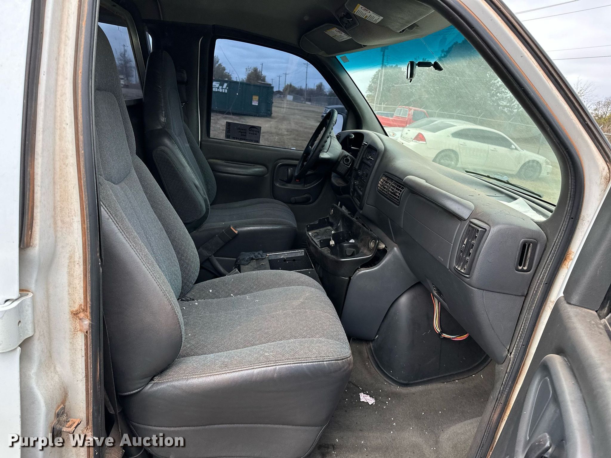 2002 Chevrolet Express 3500 van. Miles: Unknown, VIN: 1GAHG39R021219189. Engine Displacement: 5.7L V8 OHV, Cylinders: 8, Fuel type: Gas. Transmission Automatic. Interior AC, Heat, Cruise control. Tires Size: 245/75R16. Notes Windshield chipped or cracked, Dead battery, Keys missing, Non-operational unit. Oklahoma title. Mileage has not been verified. Exempt will be written in the odometer disclosure on the title. Title distribution may be delayed up to 14 days from verification of funds. 1550 North Midwest Boulevard. Guthrie, OK 73044