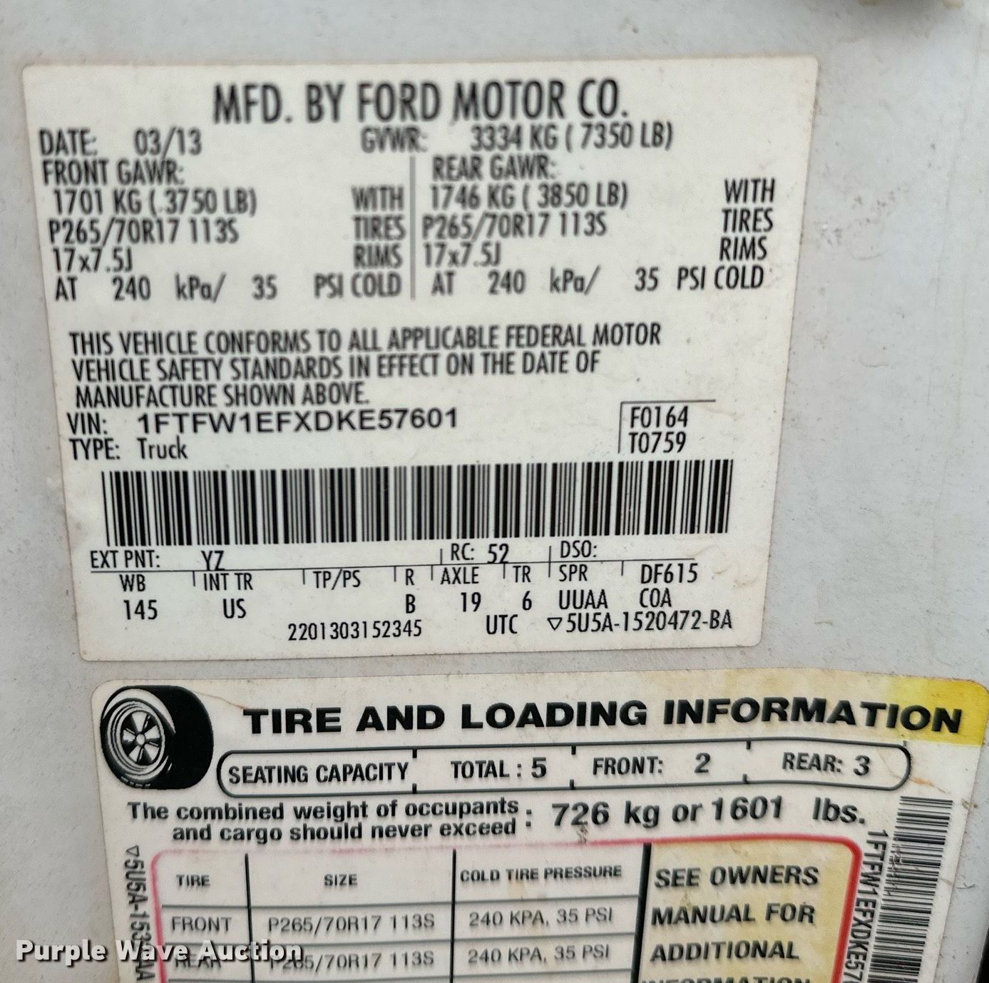 Purple Wave is selling a used 1/2 Ton Pickup or Van in Oklahoma. This item is a 2013 Ford F150 SuperCrew pickup truck with the following: Miles: Unknown, VIN: 1FTFW1EFXDKE57601