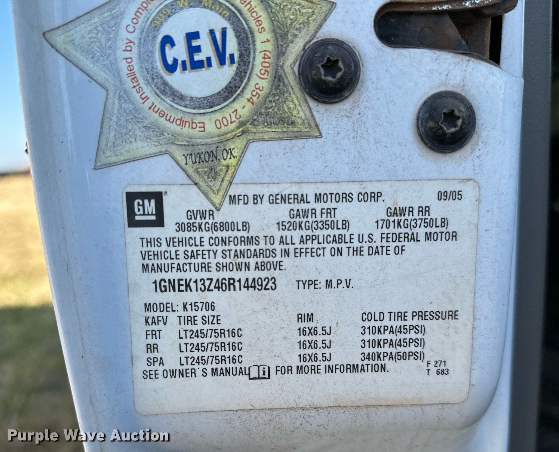 Purple Wave is selling a used Passenger Vehicle in Oklahoma. This item is a 2006 Chevrolet Tahoe SUV with the following: Miles: Unknown, VIN: 1GNEK13Z46R144923