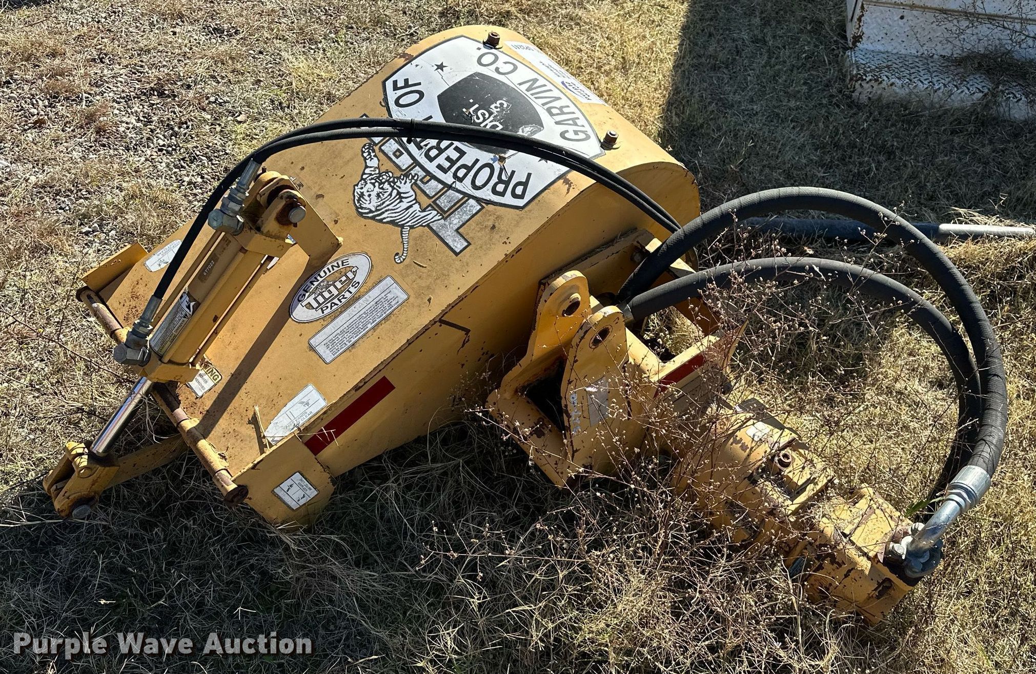 Tiger side boom ditcher. Width: 19". Garvin County - District 3. 50270 East County Road 1520. Stratford, OK 74872