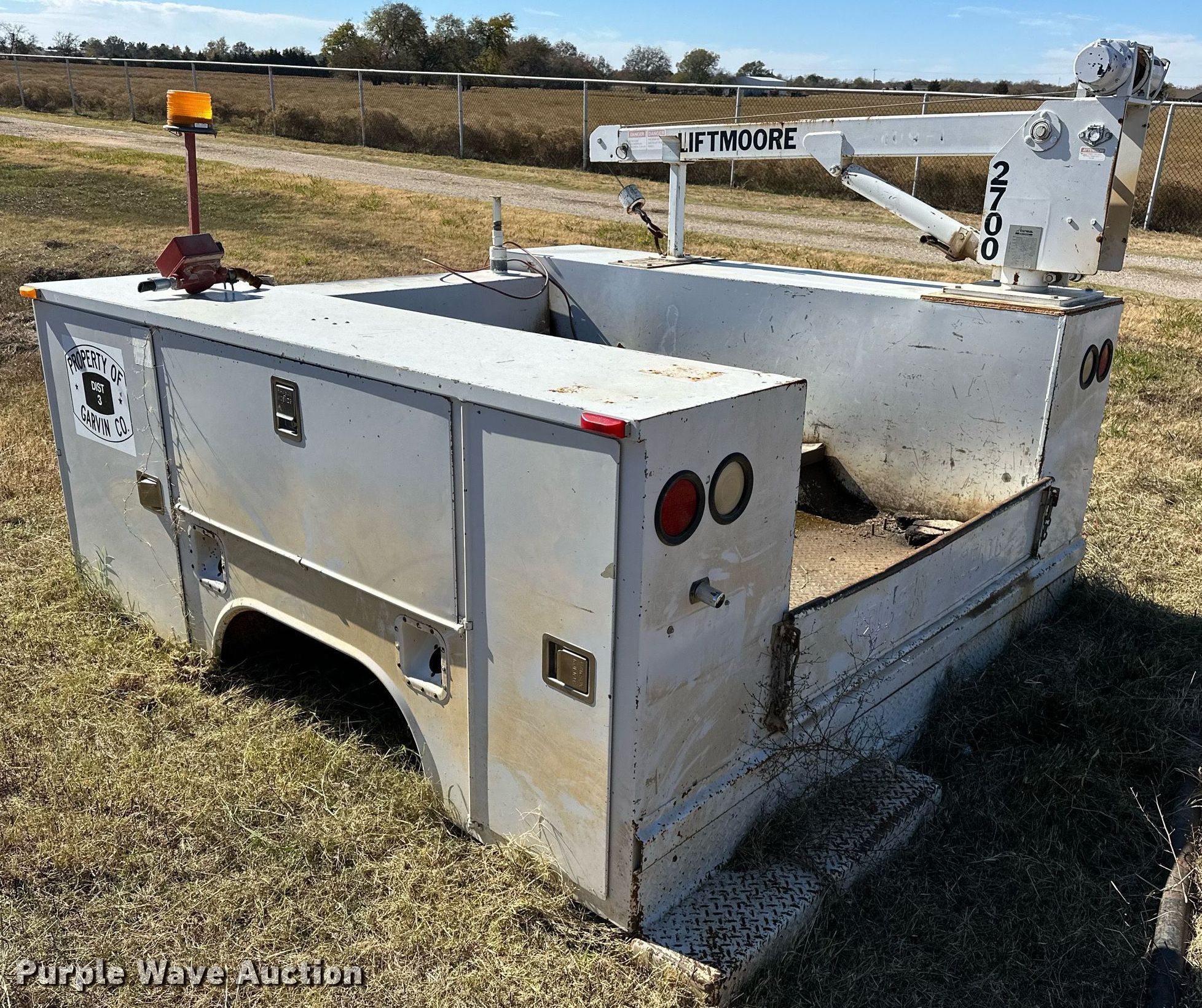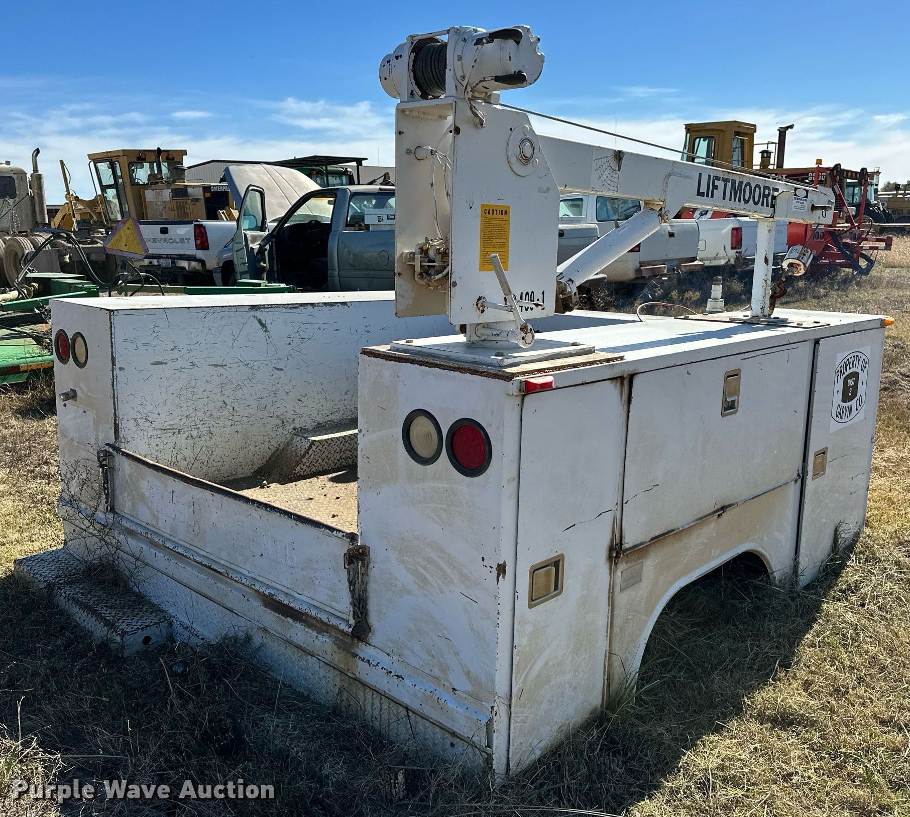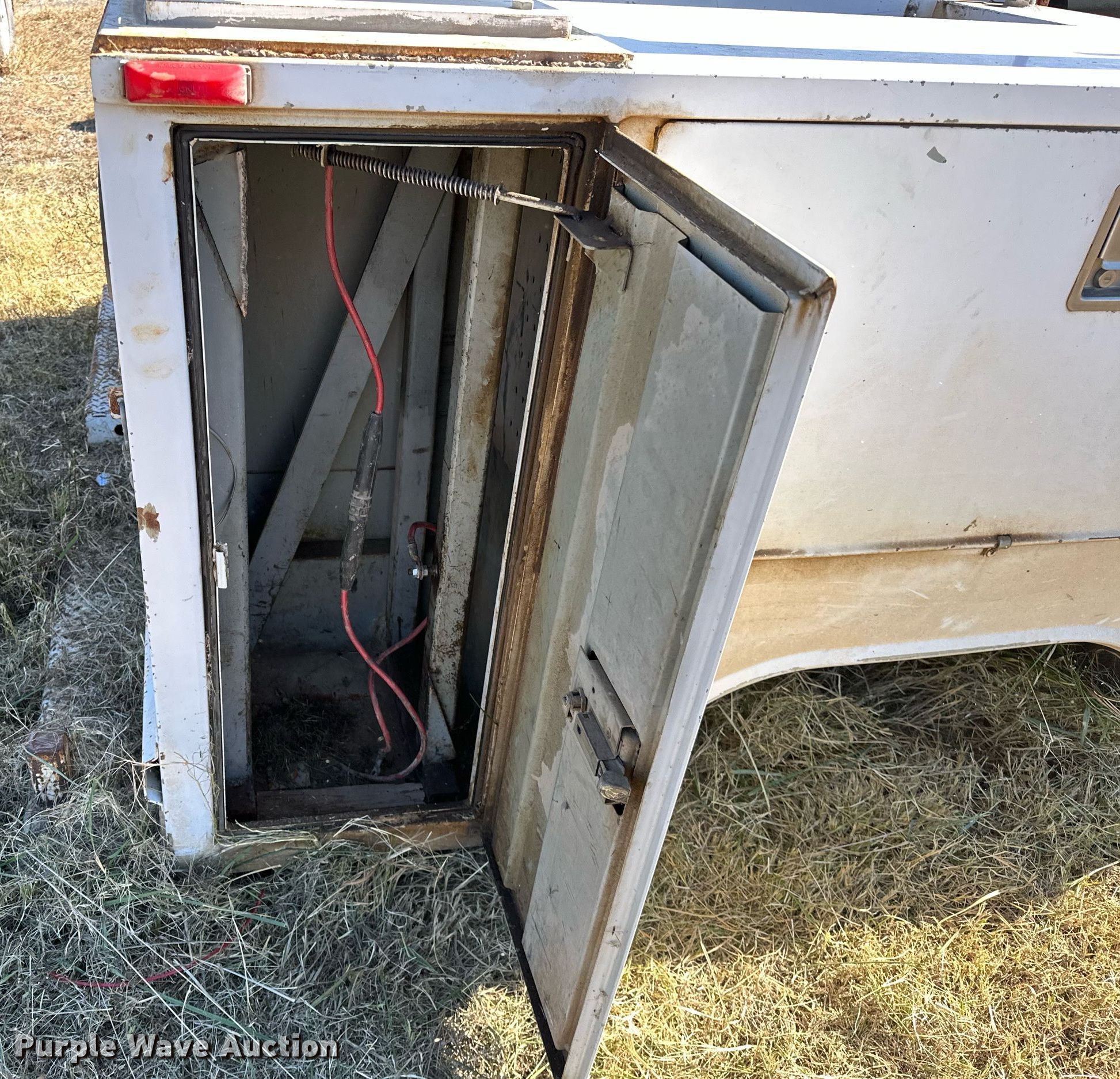 Purple Wave is selling a used Automotive Parts or Acces. in Oklahoma. This item is a Rawson-Koenig S56DW94 utility bed with the following: Serial: 109358, 96' L x 96" W, Liftmoore crane, Maximum lift capacity: 2,700lbs, Sections: 2, Boom Length: 6', Maximum boom Length: 15'