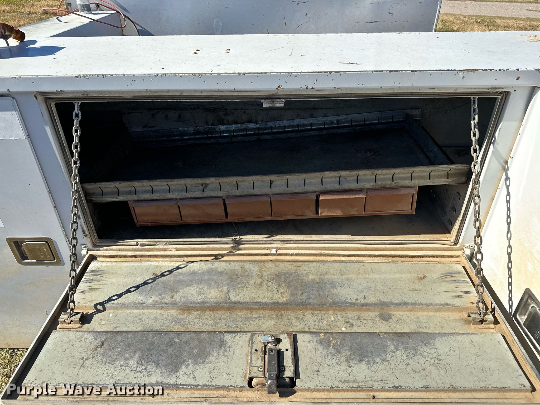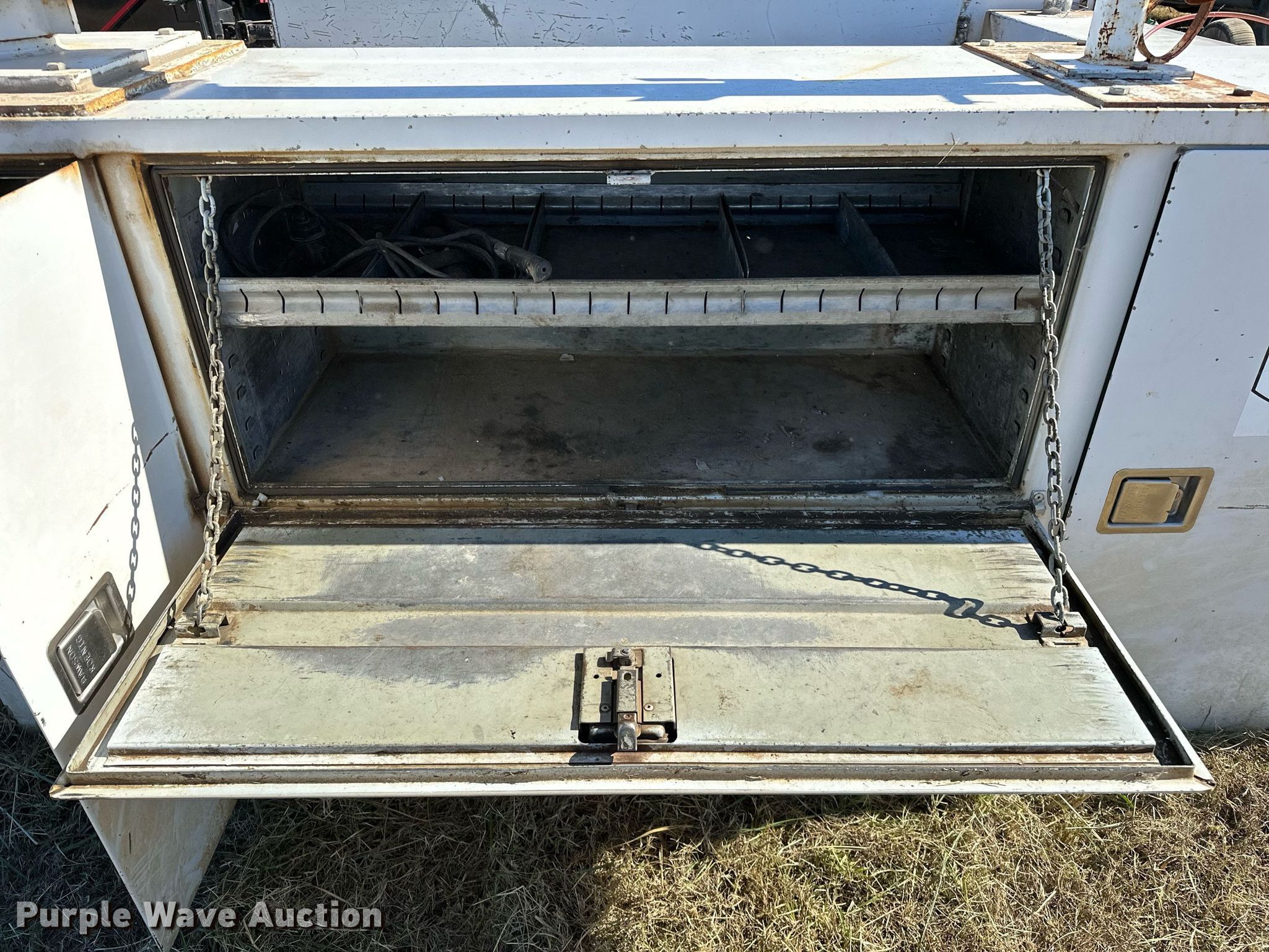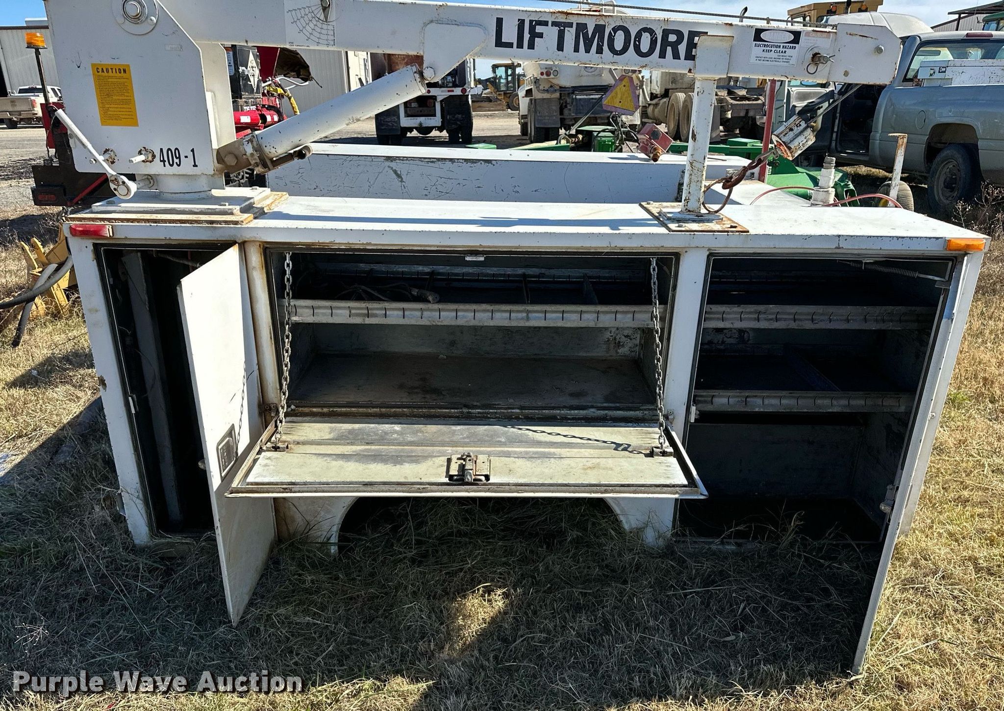 Purple Wave is selling a used Automotive Parts or Acces. in Oklahoma. This item is a Rawson-Koenig S56DW94 utility bed with the following: Serial: 109358, 96' L x 96" W, Liftmoore crane, Maximum lift capacity: 2,700lbs, Sections: 2, Boom Length: 6', Maximum boom Length: 15'