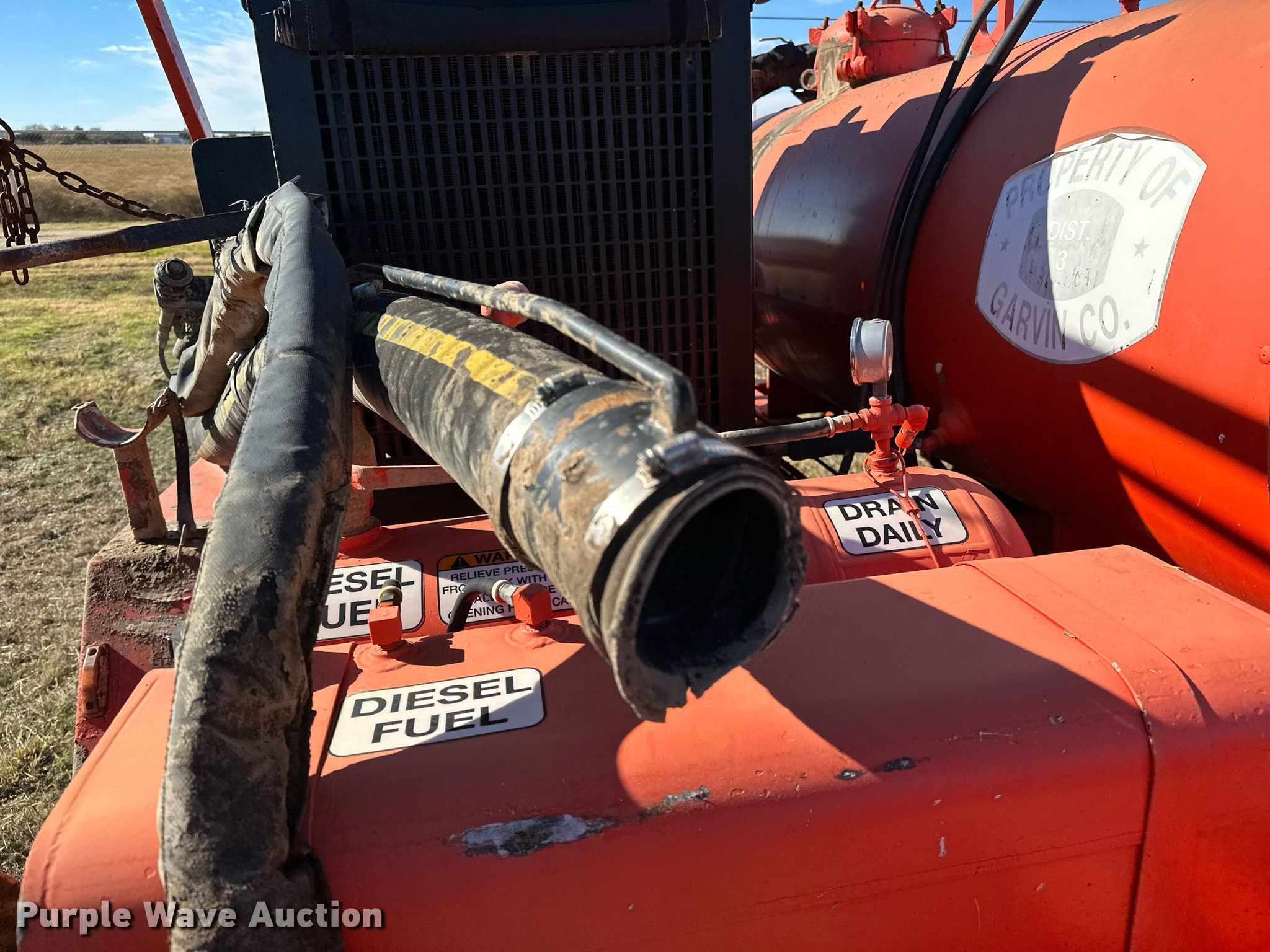 2006 Dura Patcher 125 DJT pothole patcher. Hours: 533 on meter, Serial: 141940. Engine John Deere 4045DF270B, Displacement: 4.5L, Cylinders: 4, Fuel type: Diesel. Features Overall: 17' L x 96" W, Tank: 96" L x 34" diameter, Suspension: Spring. Tires Size: 225/75R15. Transfer of ownership documentation will be a bill of sale. Garvin County - District 3. 50270 East County Road 1520. Stratford, OK 74872