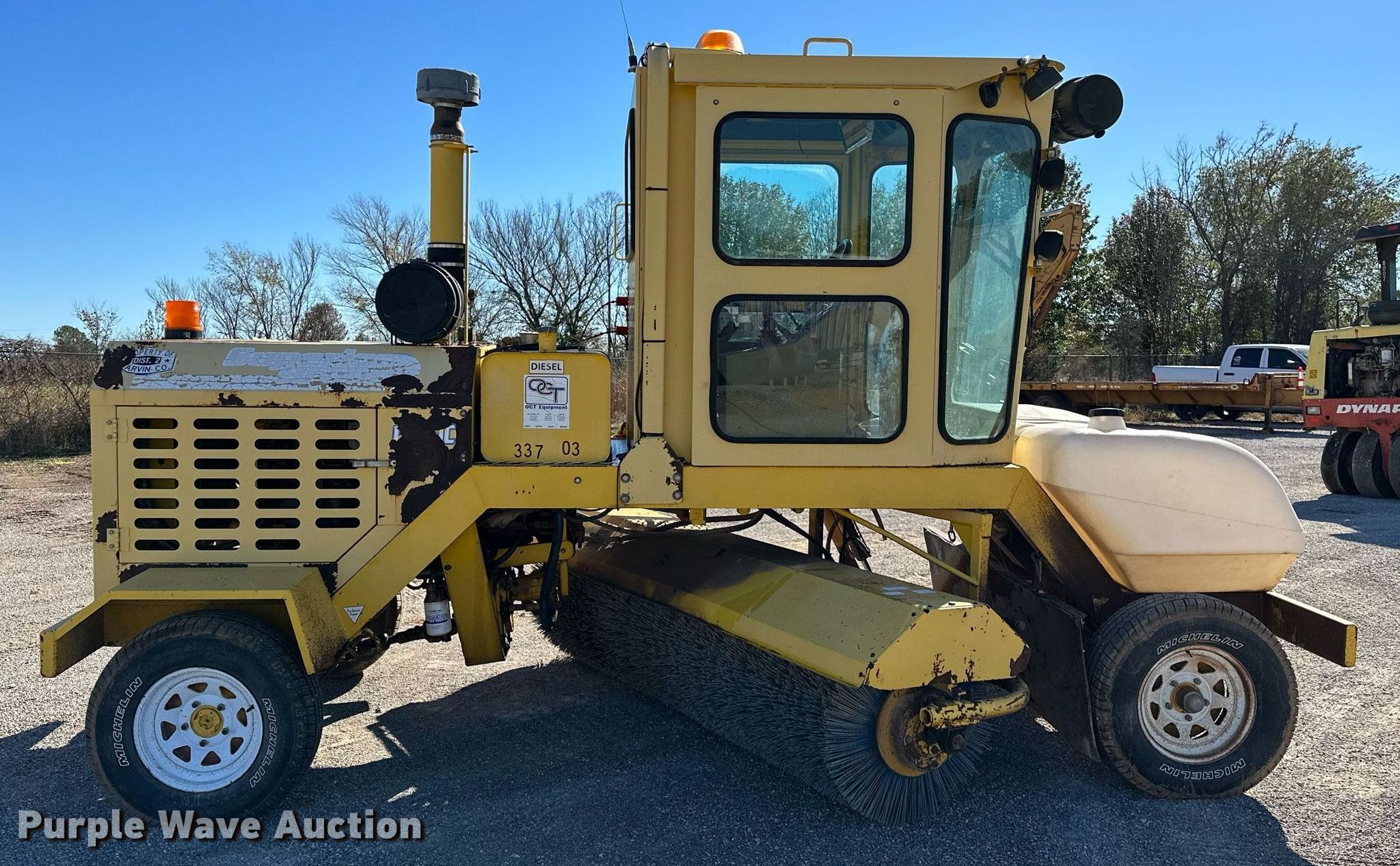 2005 Superior Broom DT80C broom. Hours: 1,641 on meter, Serial: 805198. Engine Cummins B4.5-30C, Displacement: 4.5L, Cylinders: 4, Fuel type: Diesel. Transmission Hydrostatic. Chassis Suspension: Spring, Brakes: Hydraulic. Operators station Enclosed cab. Features Broom Width: 96", Water spray system. Tires Size: 235/75R15. Notes Dead battery, Starter issues , Non-operational spray down system. Garvin County. 606 Main St. Elmore City, OK 73433