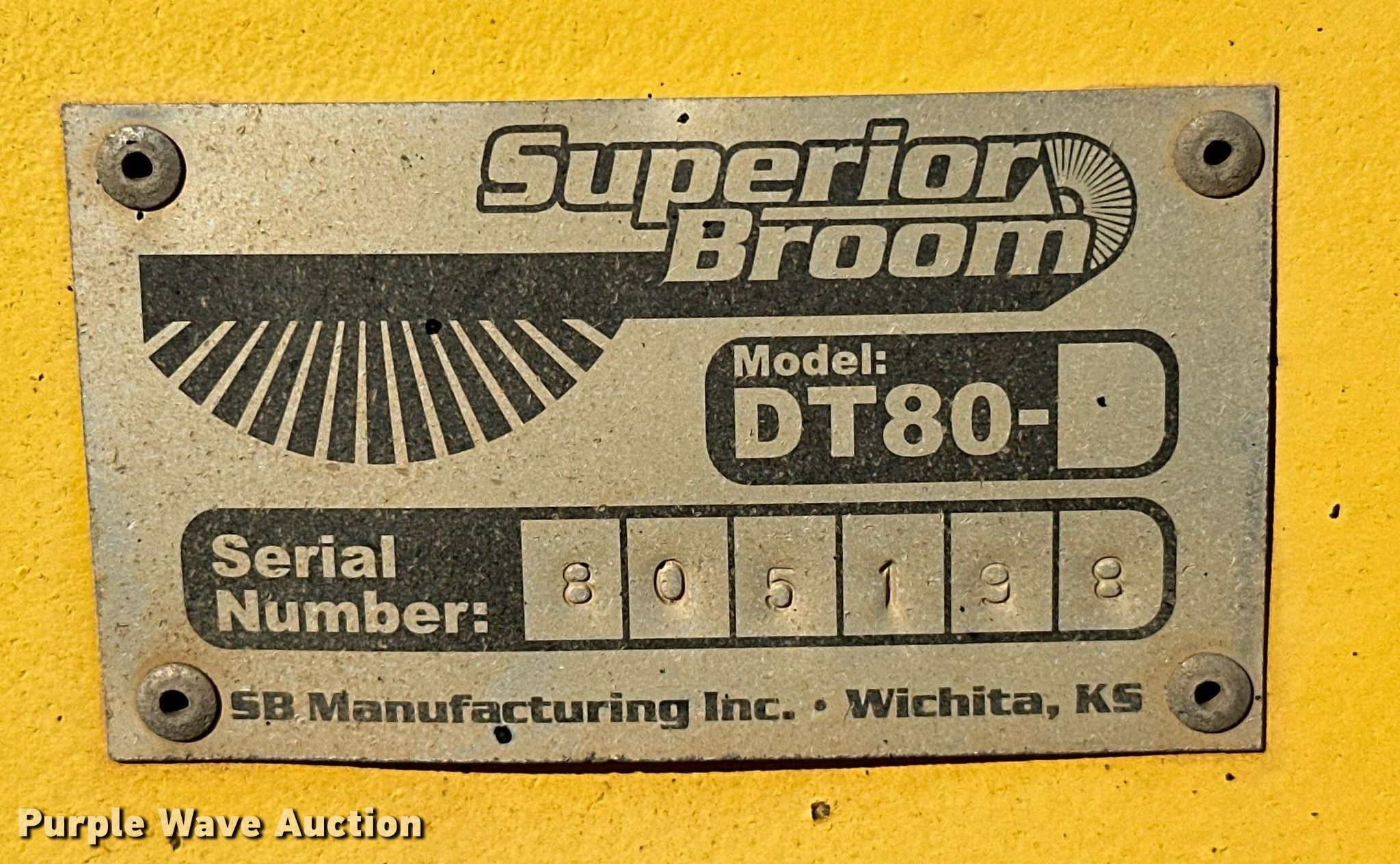 Purple Wave is selling a used Broom in Oklahoma. This item is a 2005 Superior Broom DT80C broom with the following: Hours: 1,641 on meter, Serial: 805198