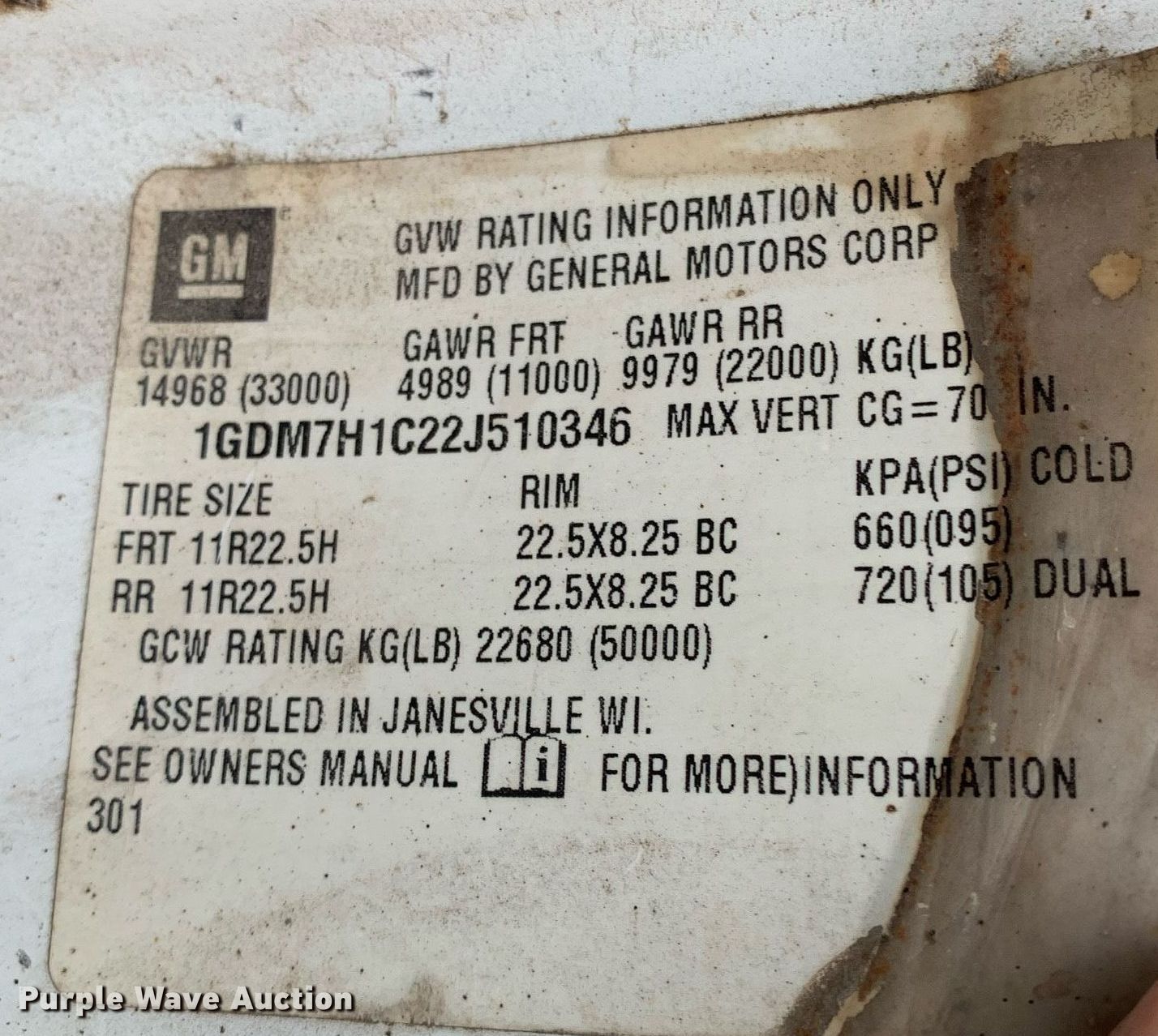Purple Wave is selling a used Oil Distributor Truck in Texas. This item is a 2002 GMC C7500 pothole patcher truck with the following: Miles: 69,942 on odometer, VIN: 1GDM7H1C22J510346, Unit #: 22094