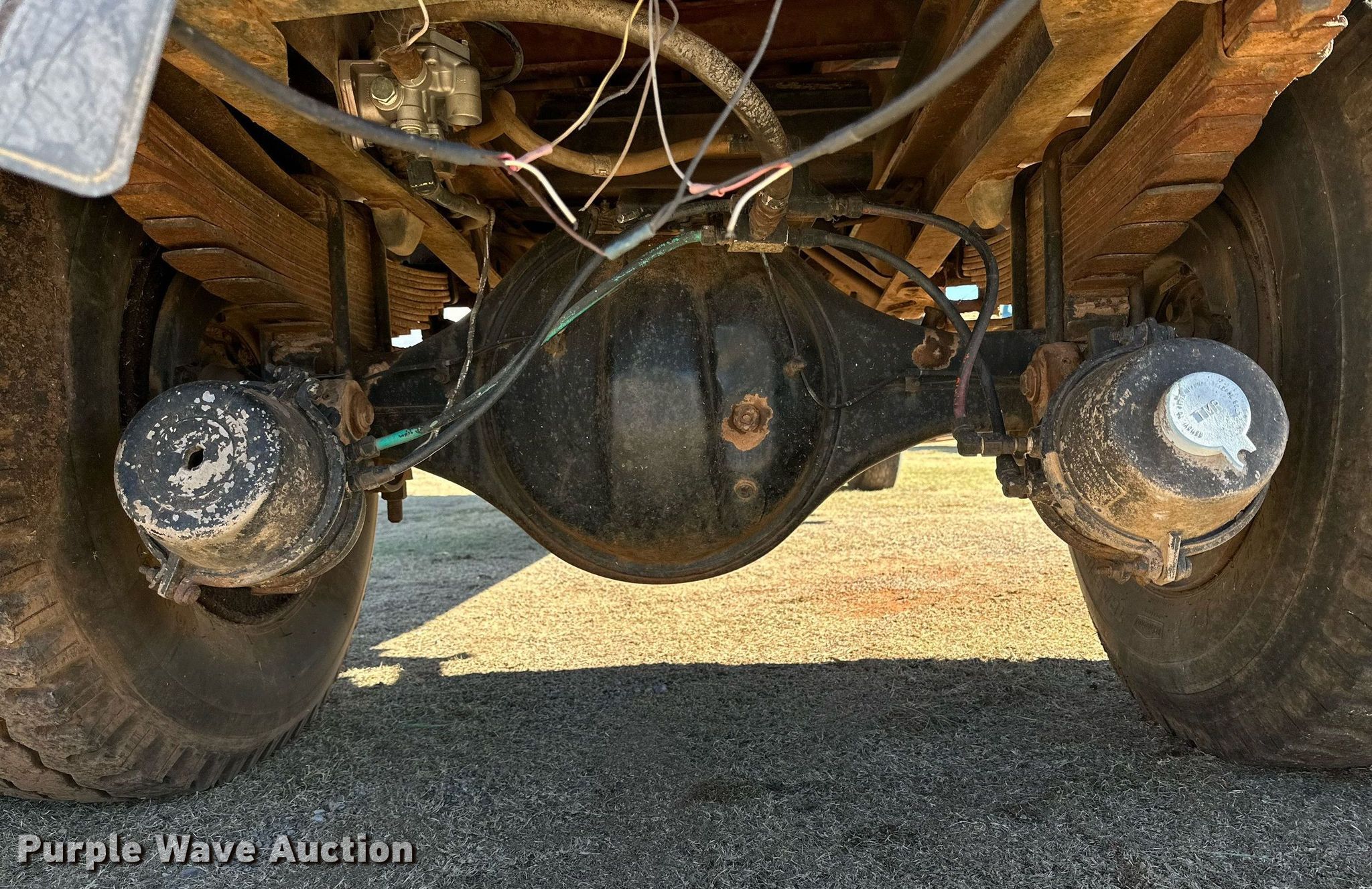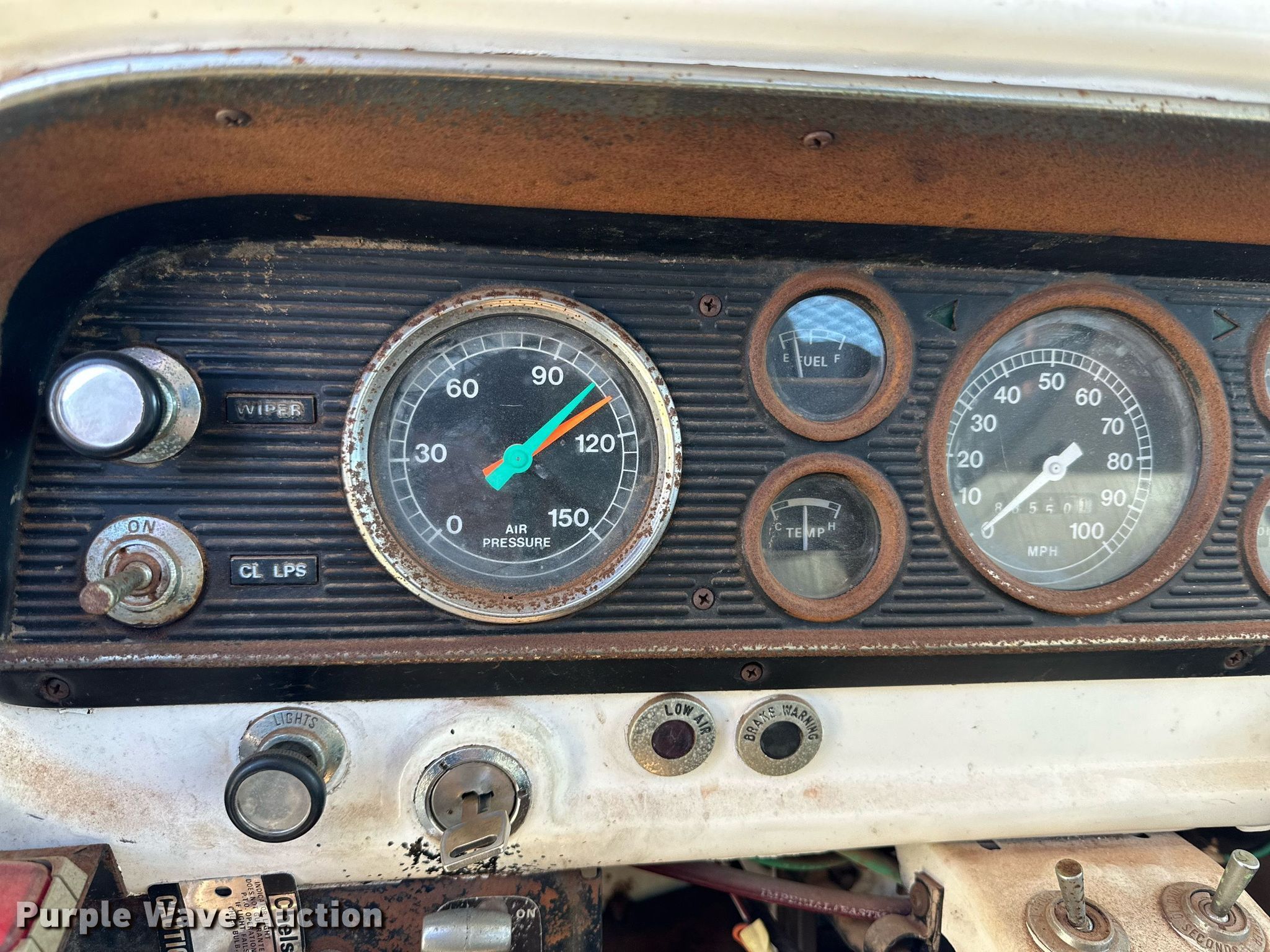1977 Ford F800 dump flatbed truck. Miles: 88,550 on odometer, VIN: F82JVY91606. Engine Cylinders: 8, Fuel type: Gas. Transmission Ford, Manual, Speed: 5, plus 2. Chassis Double frame, Axles: Single, Suspension: Spring, Brakes: Air, PTO. Interior Heat. Features Dump bed 16' L x 94" W, Side board height: 12", Bed type: Steel, Ram: Single. Tires Size: 10.00-20. Notes Dead battery, Clutch issues. Oklahoma classic title. City of Arapaho. 667 Main St. Arapaho, OK 73620