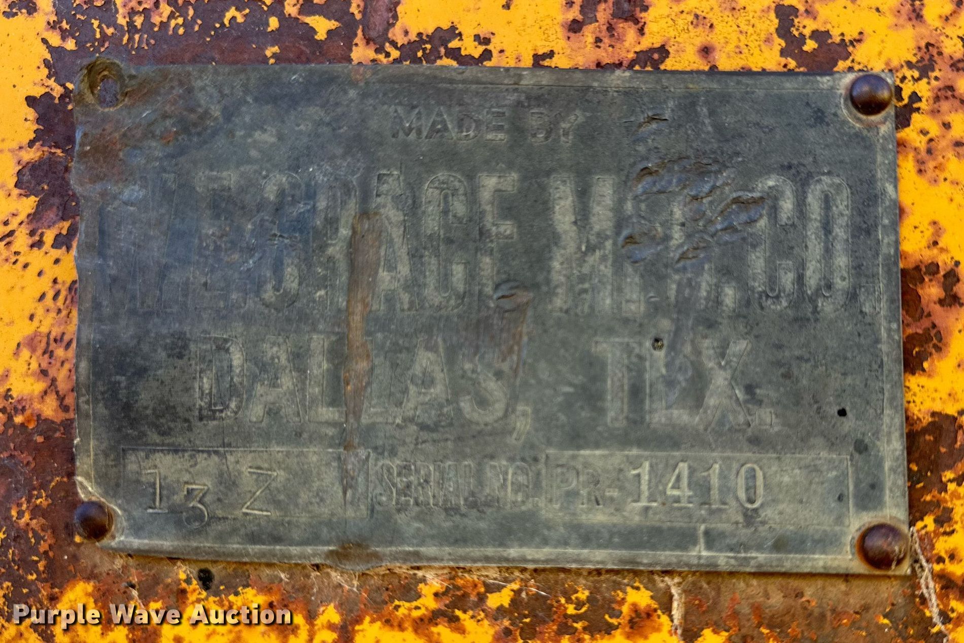 Purple Wave is selling a used Pull Type Roller Compactor in Texas. This item is a W.E. Grace pull type pneumatic roller with the following: Serial: PR1410