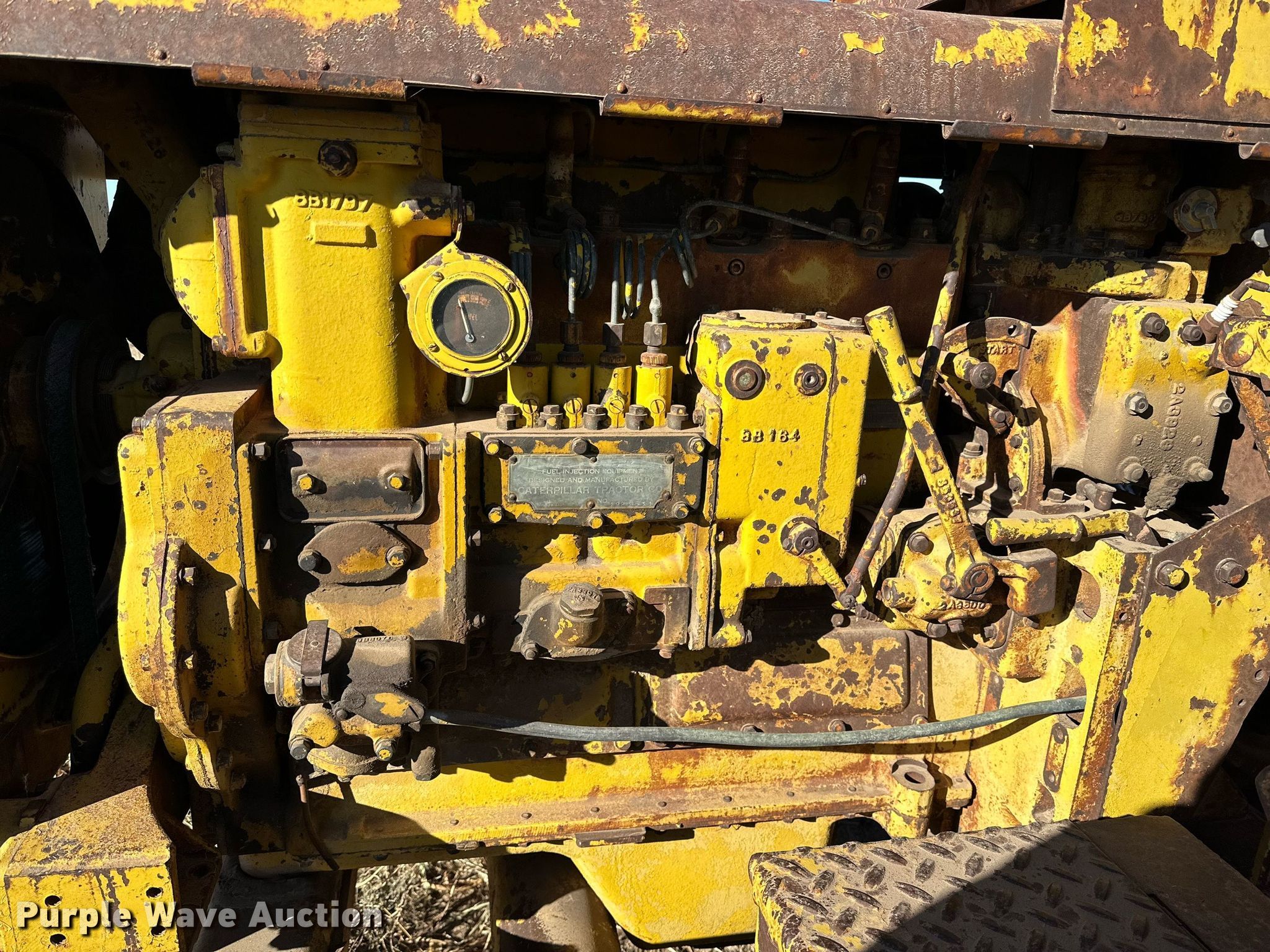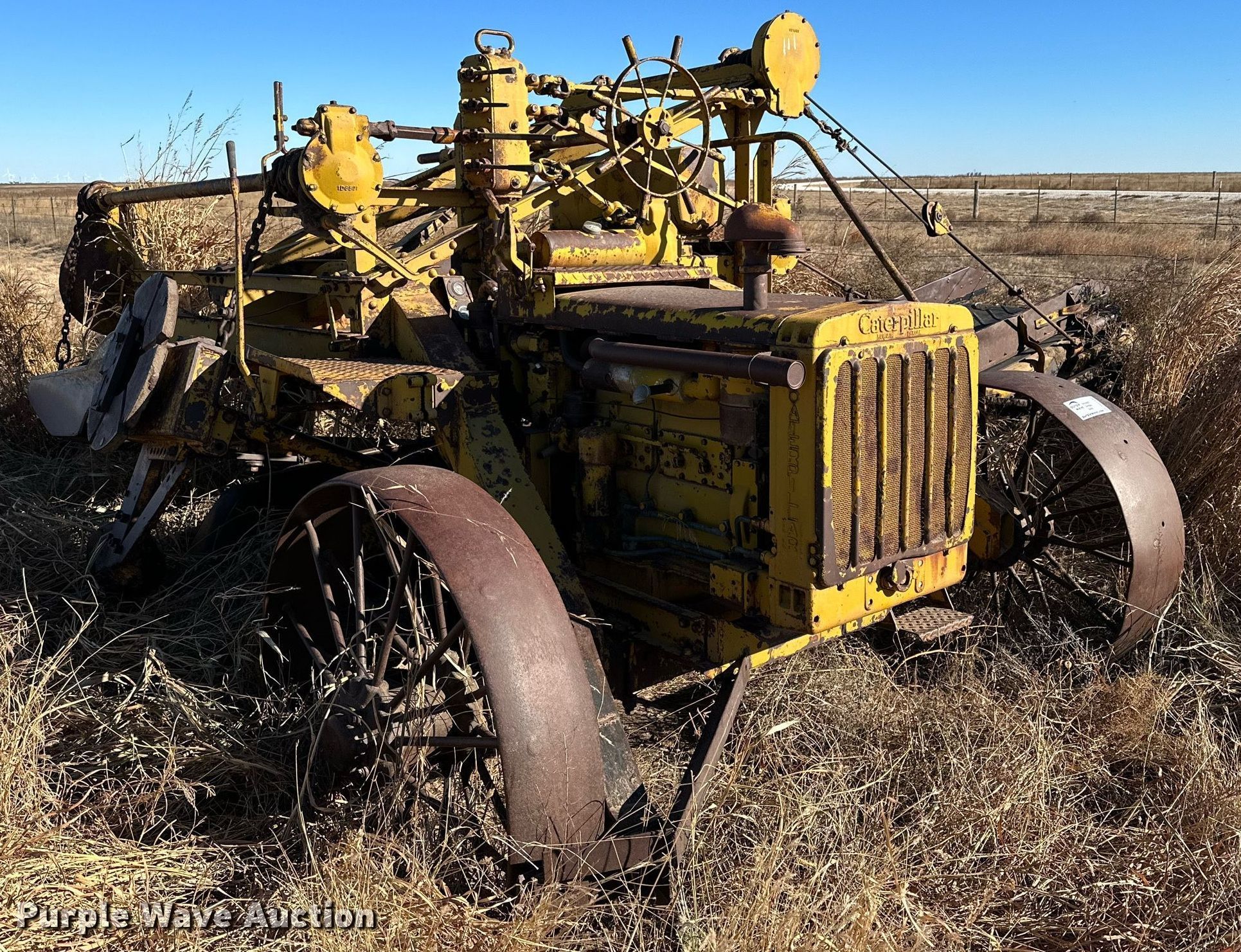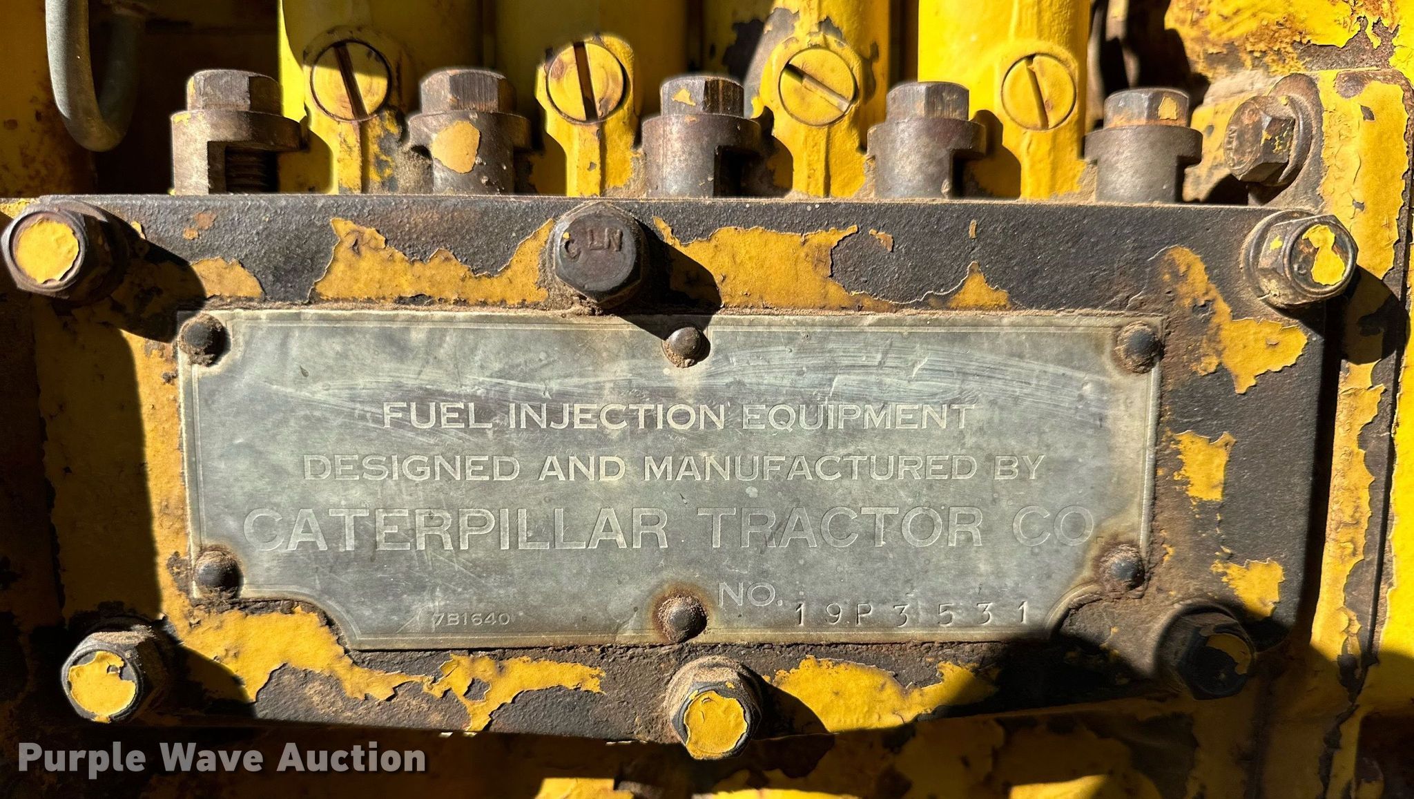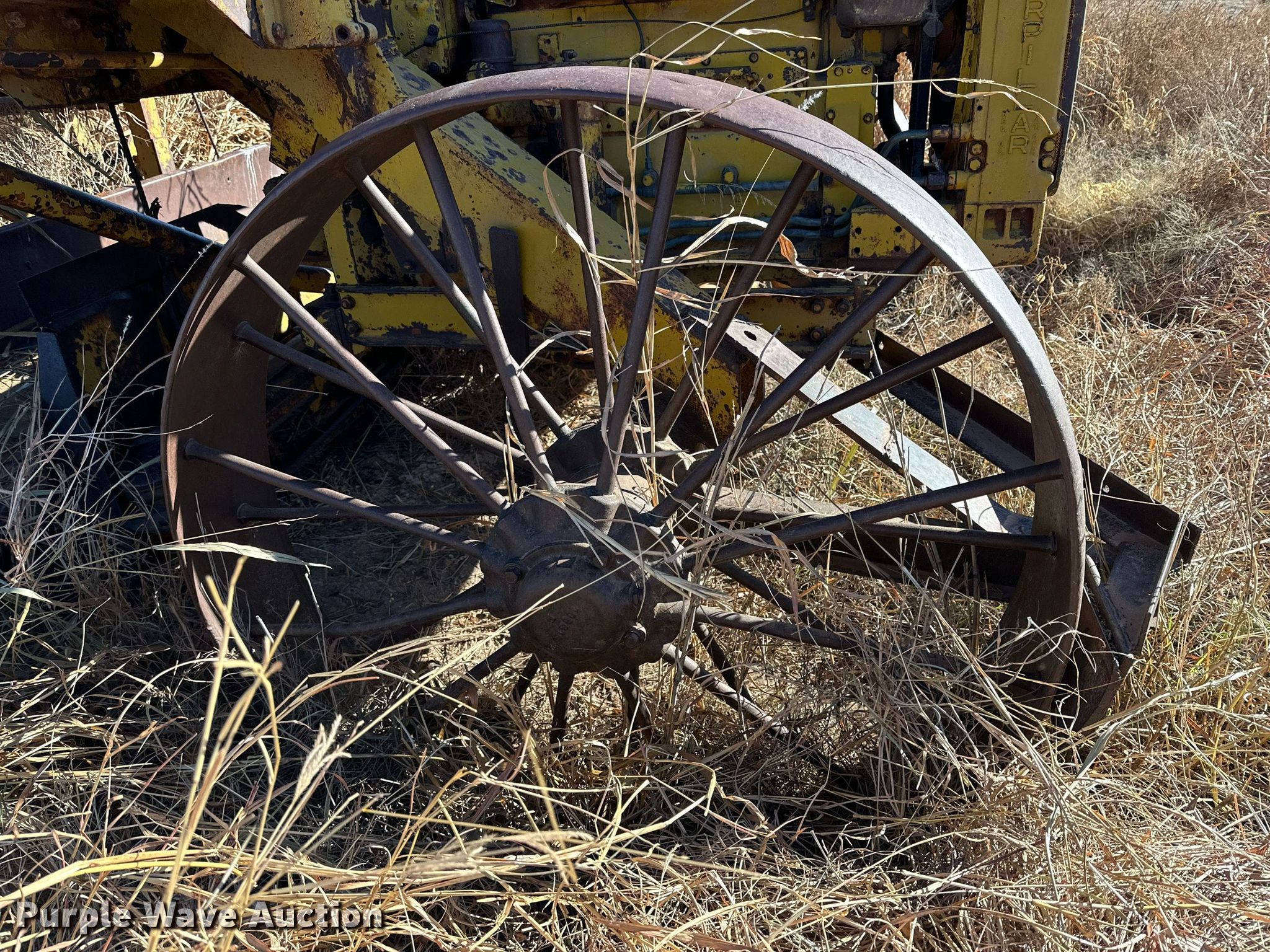 Caterpillar motor grader. Engine. Caterpillar , Cylinders: 4 , Fuel type: Diesel. Features Conveyor: 20" , Blade controls: Three lever. Tires Steel wheels. Notes Non-operational unit. Hansford County, TX. 702 Front Street. Gruver, TX 79040