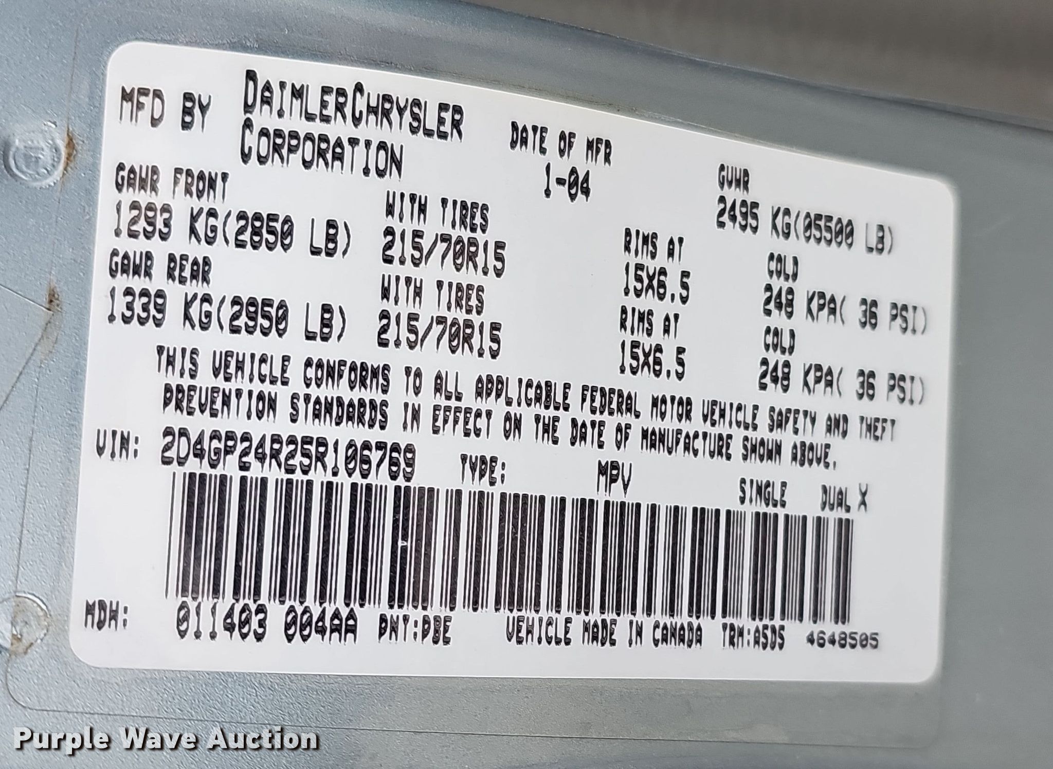 - VIN: 2D4GP24R25R106769