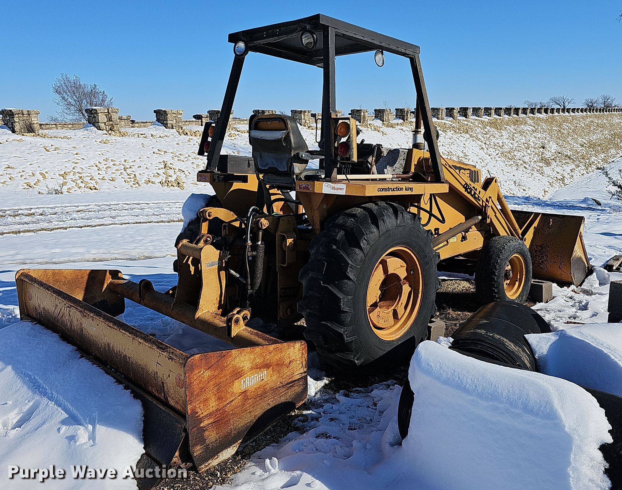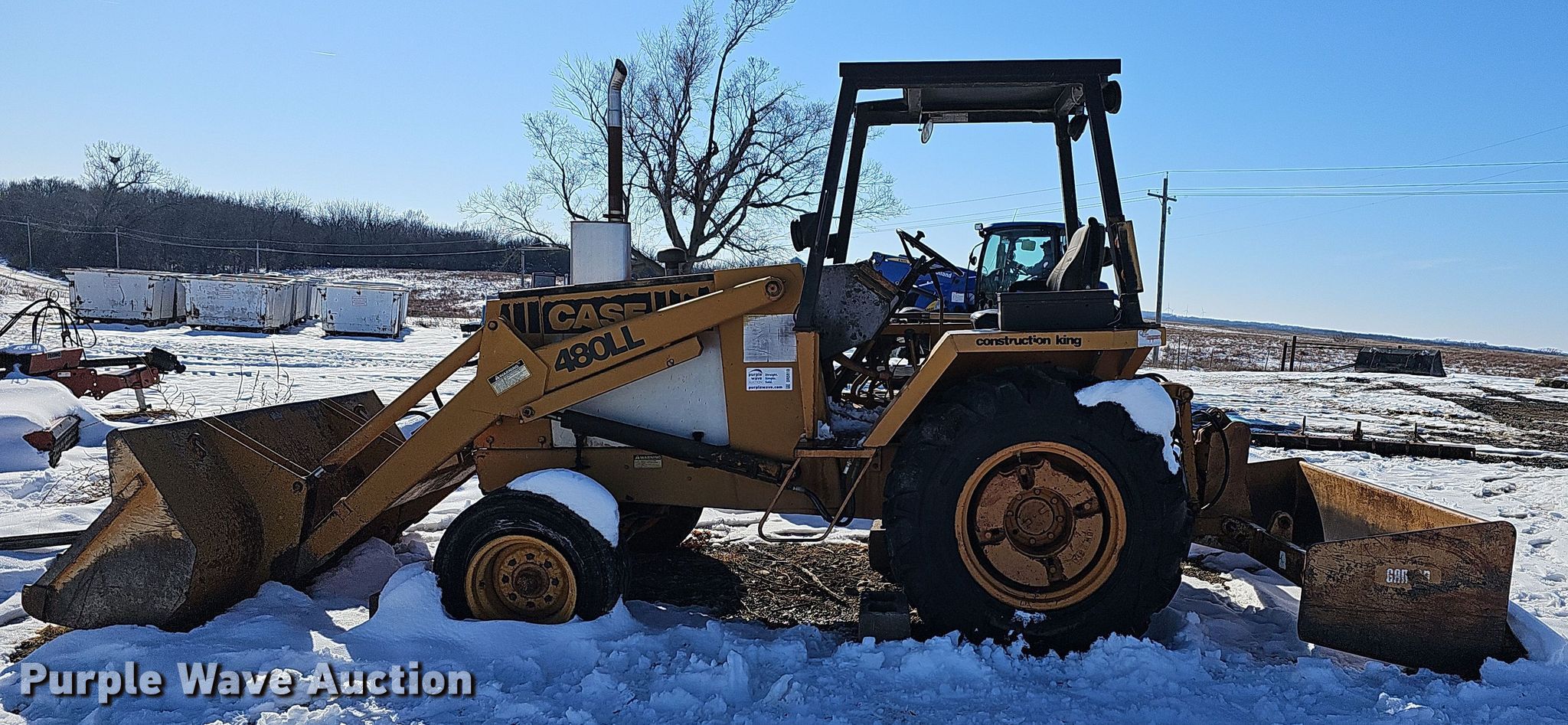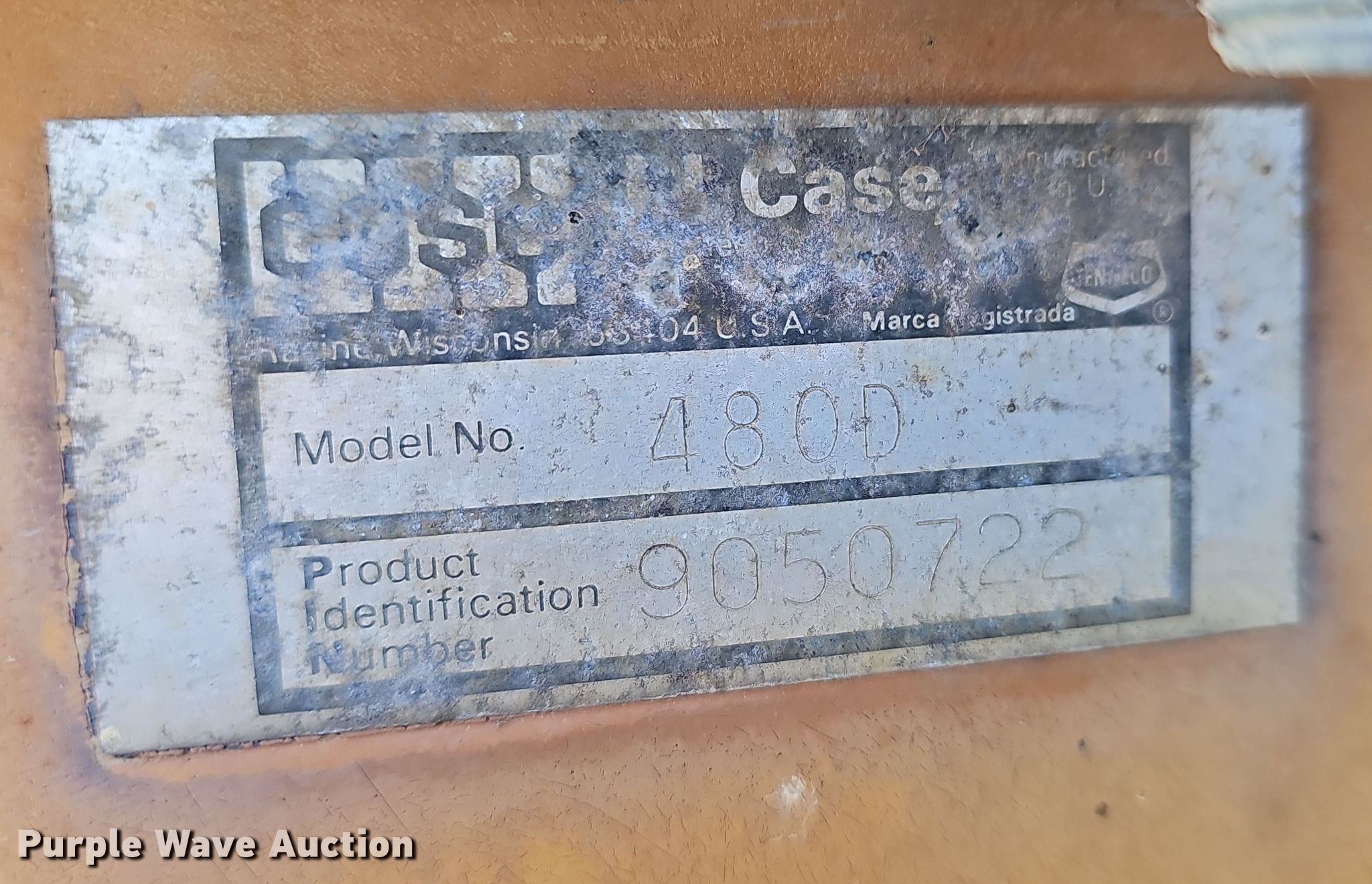 1981 Case 480D landscape tractor. Hours: 1,900 on meter, Hours: Unknown, Serial: 9050722. Engine Case G188D, Cylinders: 4, Fuel type: Diesel. Transmission Shuttle shift, 4F - 4R. Chassis Differential lock. Operators station OROPS, Backhoe controls: Four stick. Features Loader Bucket, Box blade Width: 7', Rear ripper Width: 7', Shanks: 7. Tires Front: 11L-16, Rear: 17.5L-24. Notes Flat tire will be fixed prior to auction, Dead battery, Engine issues , Non-operational unit. Marion, KS 66861