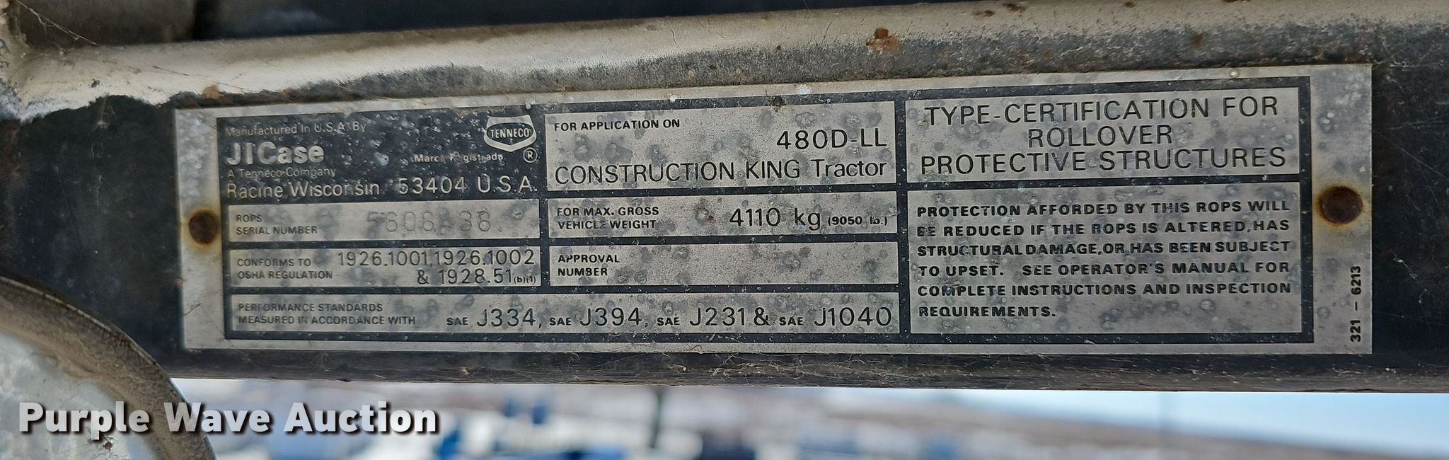 Purple Wave is selling a used Industrial Loader Tractor in Kansas. This item is a 1981 Case 480D landscape tractor with the following: Hours: 1,900 on meter, Hours: Unknown, Serial: 9050722