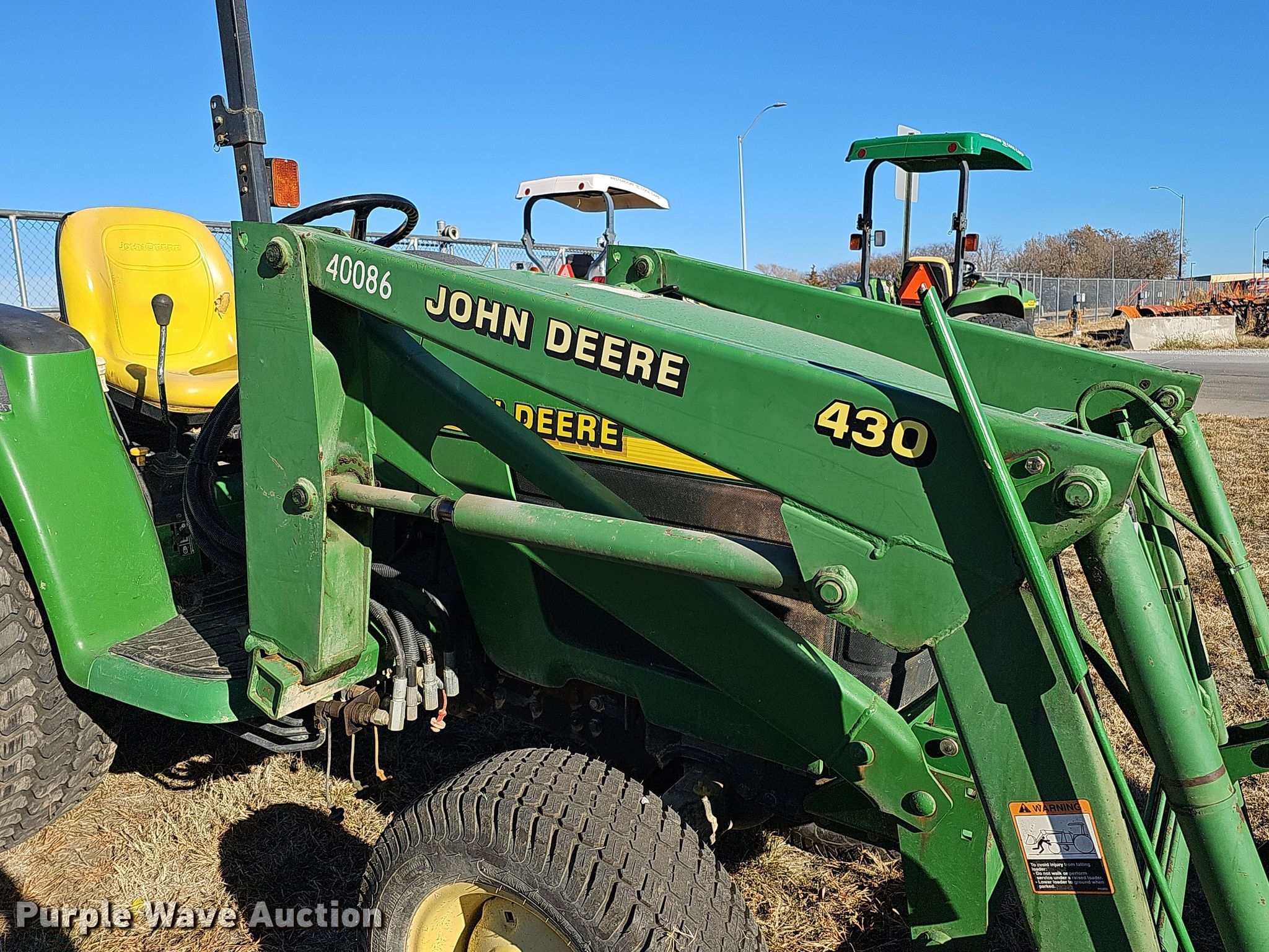 Purple Wave is selling a used Tractor in Nebraska. This item is a 2001 John Deere 4300 tractor with the following: Hours: 3,260 on meter, Serial: LV4300H430280, Unit #: 40086