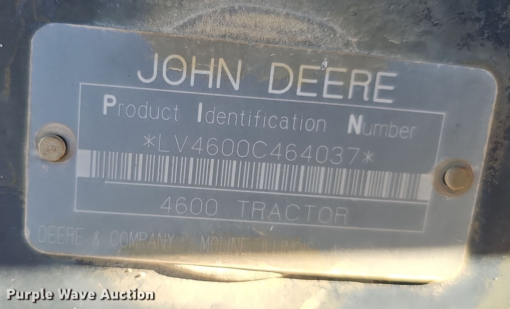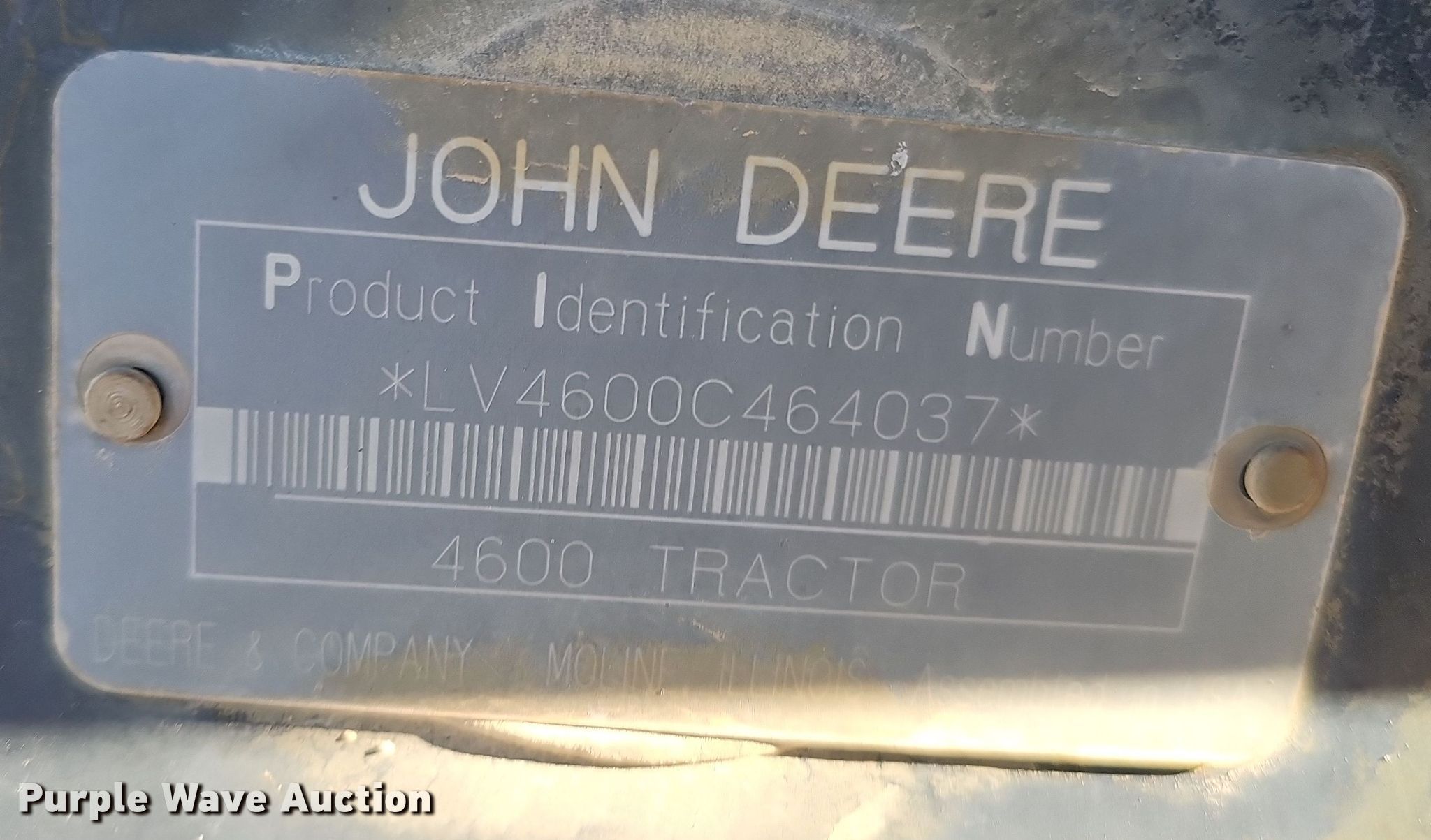 Purple Wave is selling a used Tractor in Nebraska. This item is a 2001 John Deere 4600 tractor with the following: Hours: 1,461 on meter, Serial: LV4600C464037, Unit #: 40089