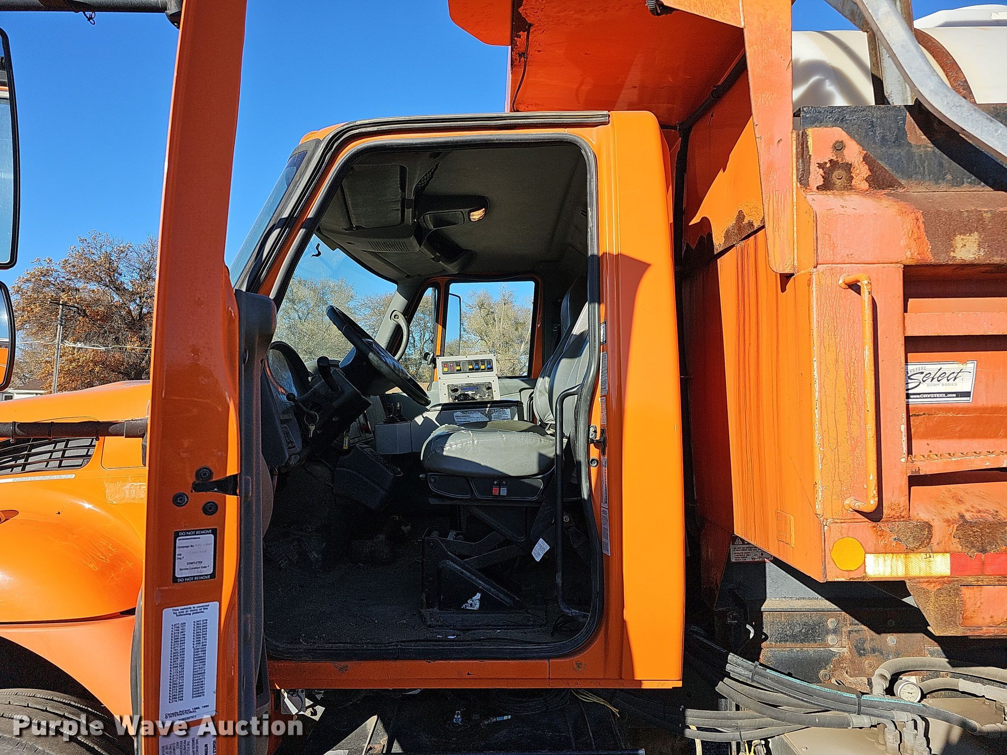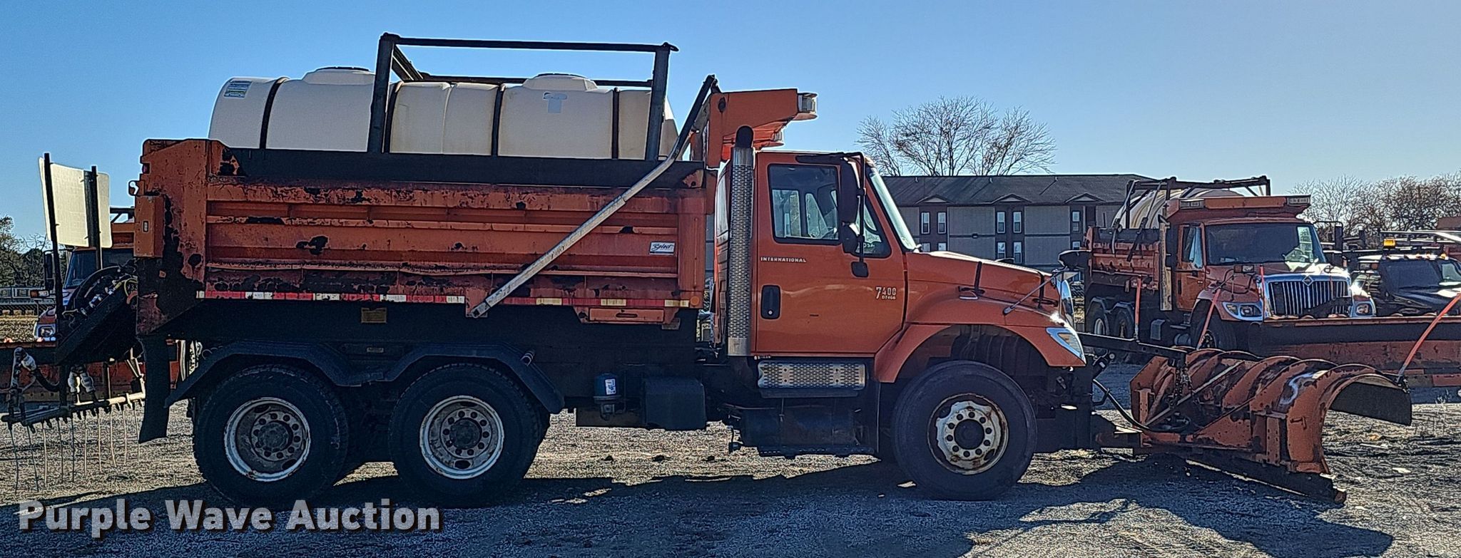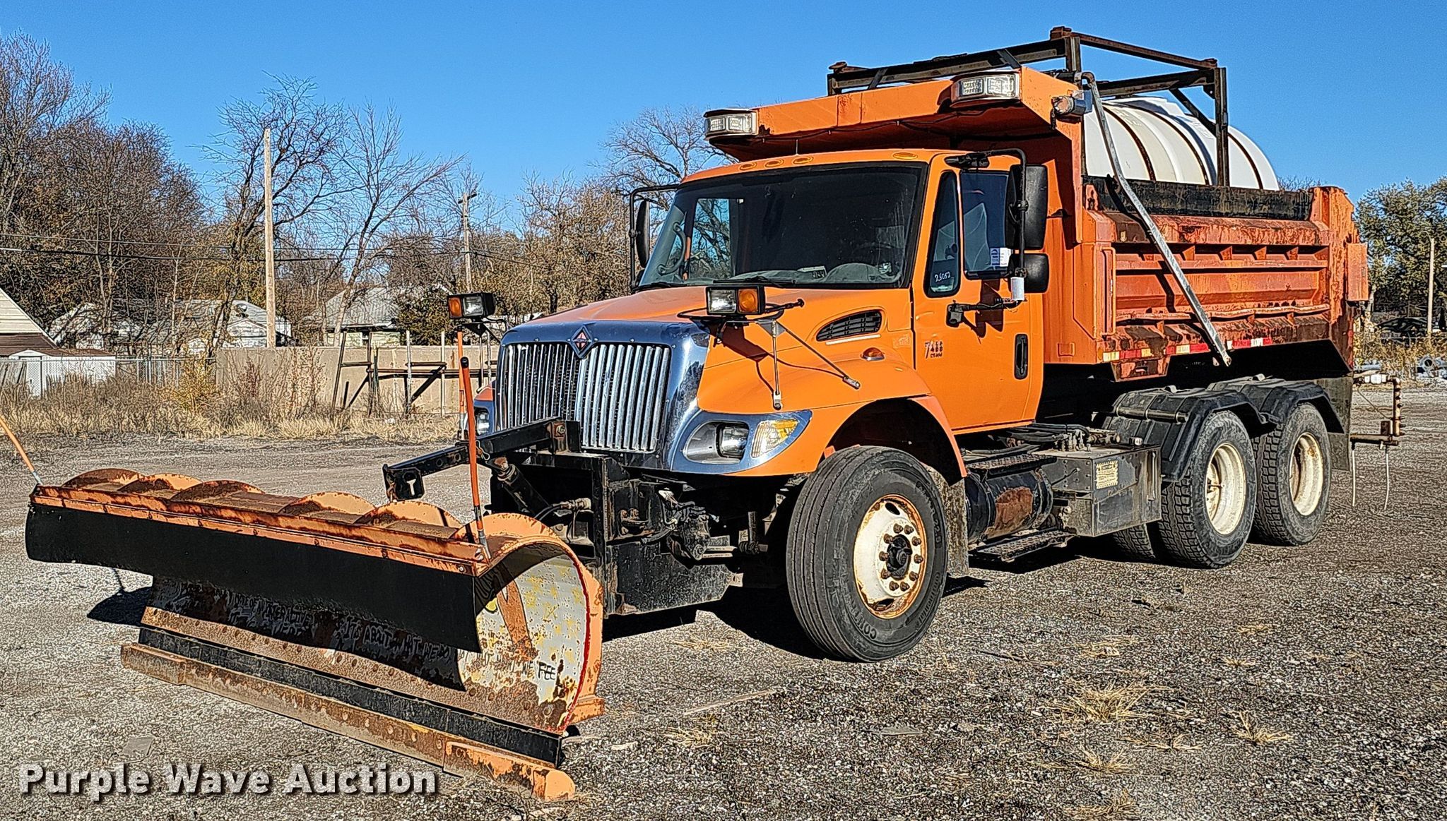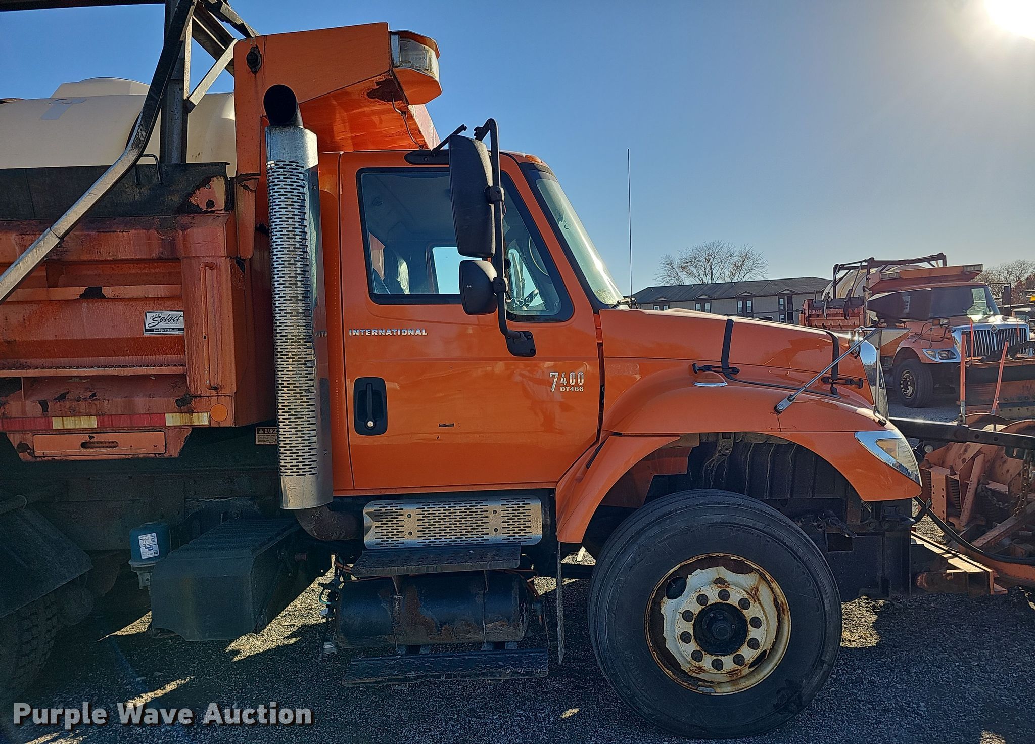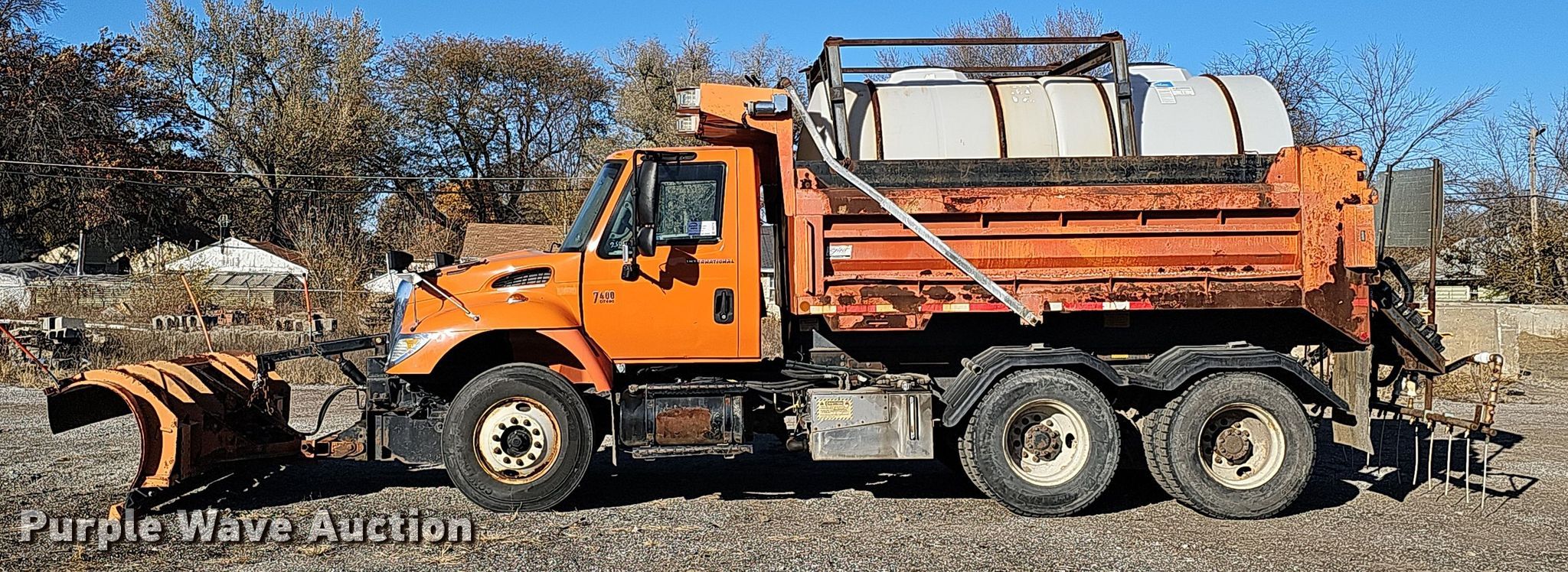 2007 International 7400 dump truck. Miles: 65,448 on odometer, Hours: 6,465 on meter, VIN: 1HTWGAAR07J401824, Unit #: 25052. Engine International DT466, Displacement: 7.6L, Cylinders: 6, Fuel type: Diesel. Transmission Allison, Automatic. Chassis Axles: Single, Differential lock: Inter-axle, Suspension: Spring over walking beam, Brakes: Air, PTO, GVWR: 53,220 lbs FAWR: 13,220 lbs, IAWR: 20,000 lbs, RAWR: 20,000 lbs, Wheelbase: 172". Interior Heat, Power windows, Cruise control. Features Dump bed Crysteel Select, 13' L x 96" W, Side height: 34", Side board height: 8", Bed type: Steel, Bed vibrator, Roll tarp, Ram: Single, Plow Width: 120", Liquid applicator Poly tank capacity: 925 gallons, Sprayer bar: 98" W, Nozzle spacing: 10". Tires Front: 11R22.5. Notes End gate missing. Nebraska title. Title distribution may be delayed up to 14 days from verification of funds. City of Lincoln Fleet. 3300 Baldwin Avenue. Lincoln, NE 68504