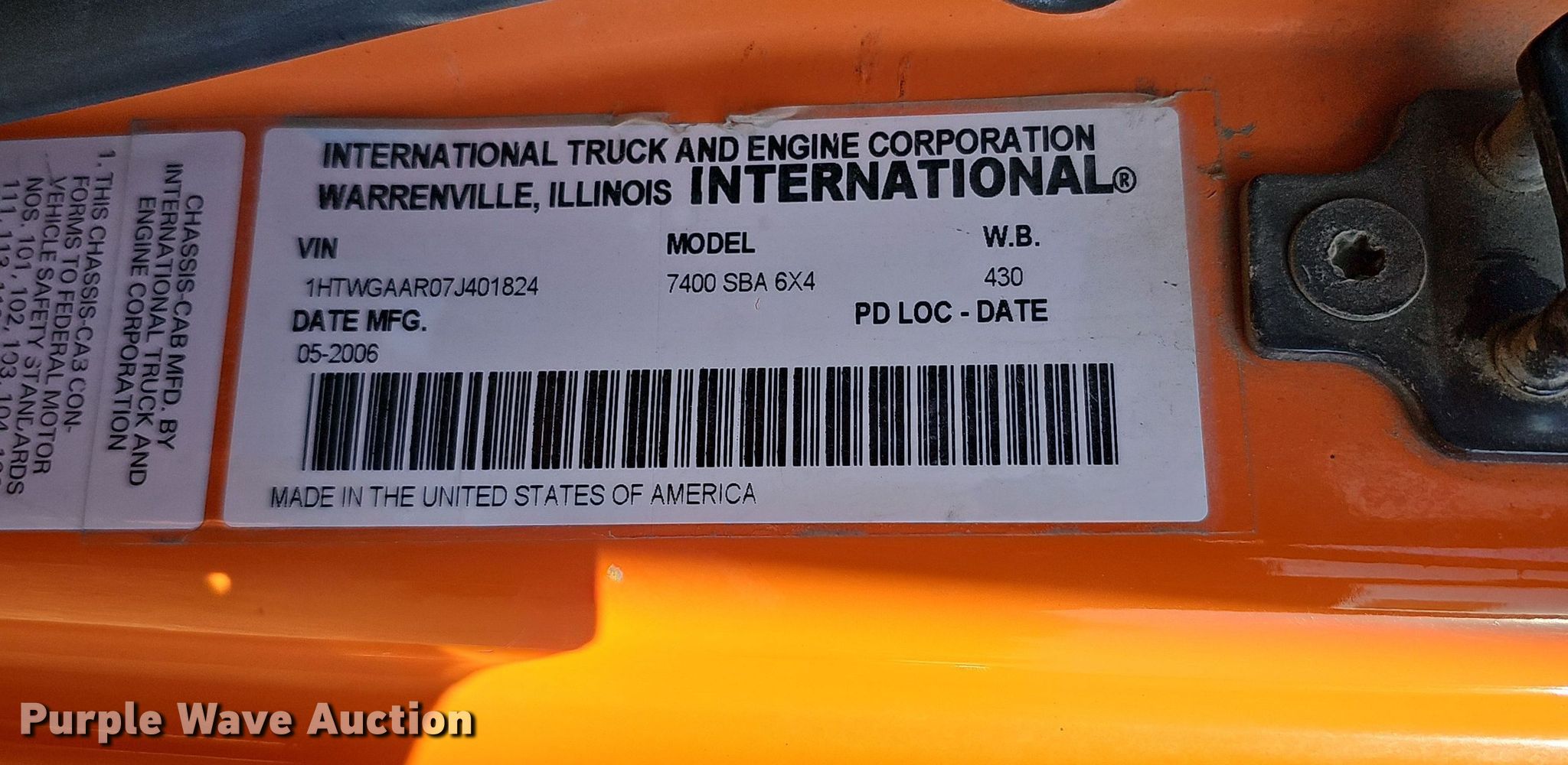 Purple Wave is selling a used Construction Dump Truck in Nebraska. This item is a 2007 International 7400 dump truck with the following: Miles: 65,448 on odometer, Hours: 6,465 on meter, VIN: 1HTWGAAR07J401824, Unit #: 25052