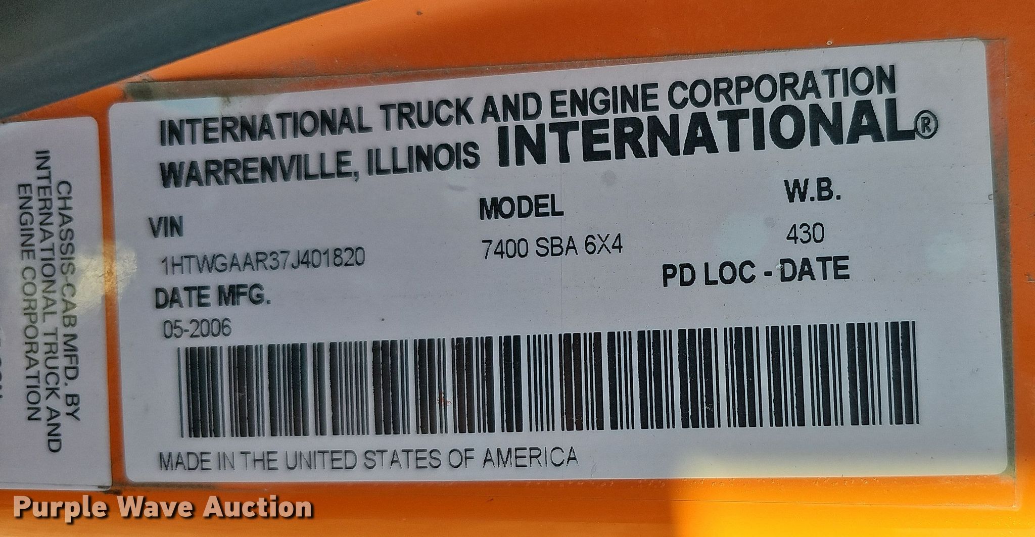Purple Wave is selling a used Construction Dump Truck in Nebraska. This item is a 2007 International 7400 dump truck with the following: Miles: 64,457 on odometer, Hours: 5,748 on meter, VIN: 1HTWGAAR37J401820, Unit #: 25048