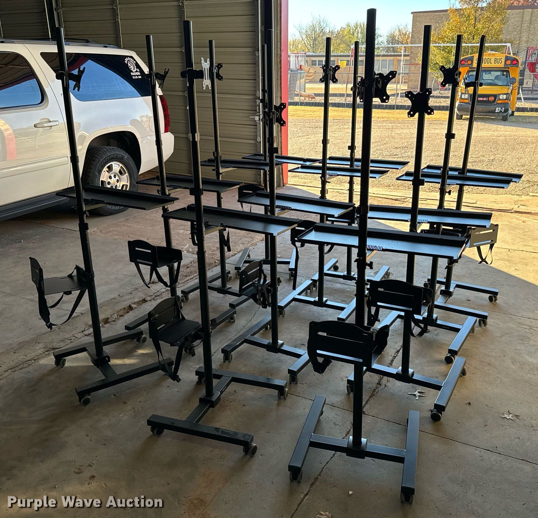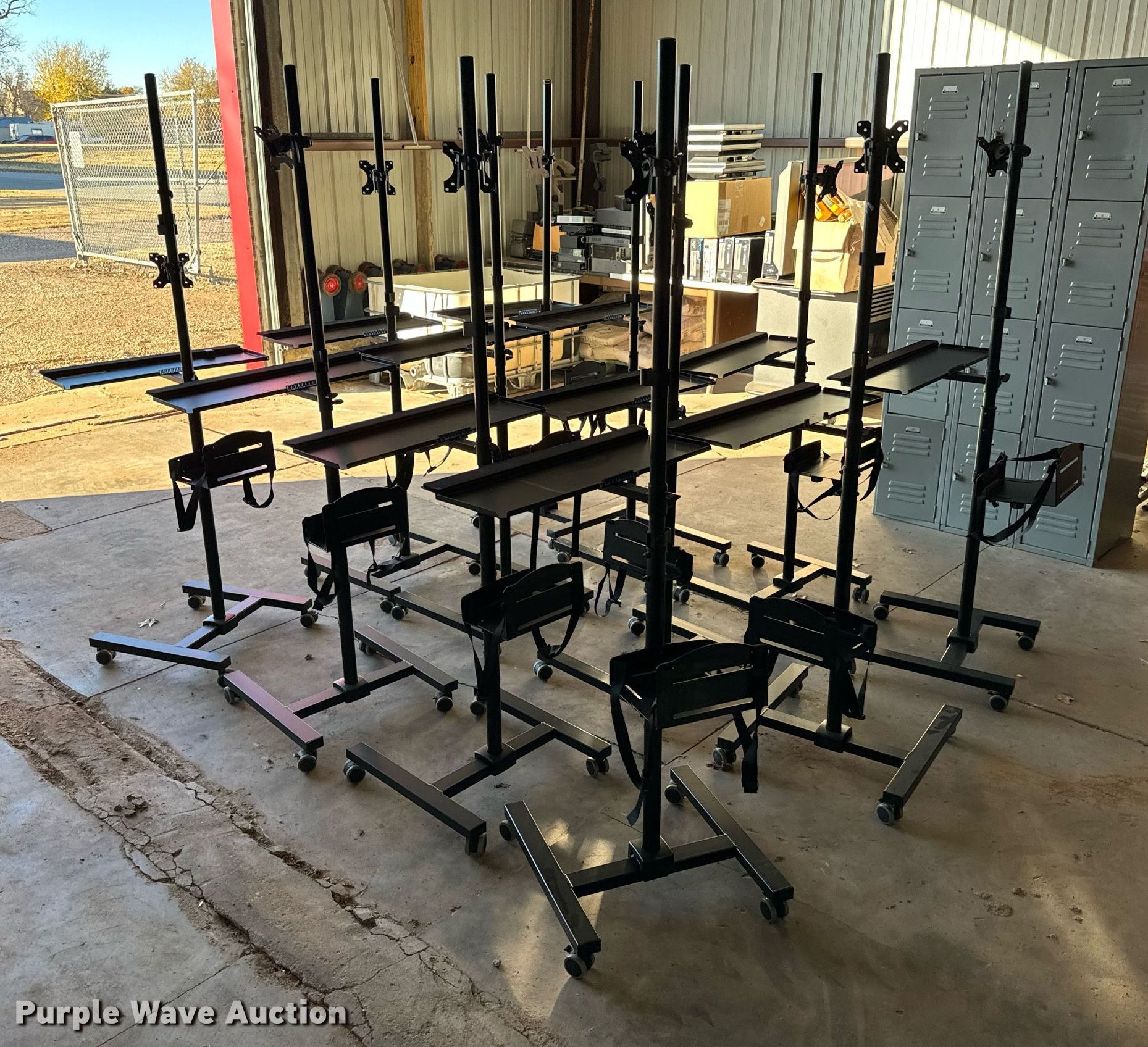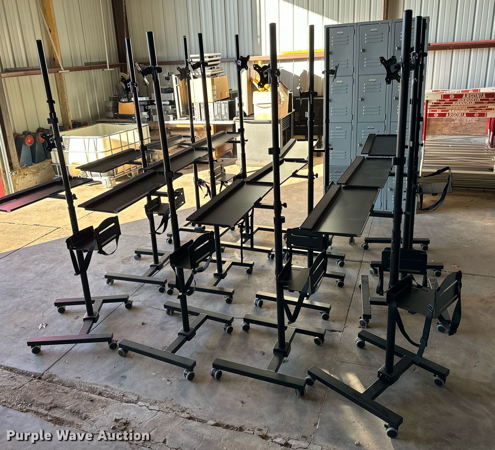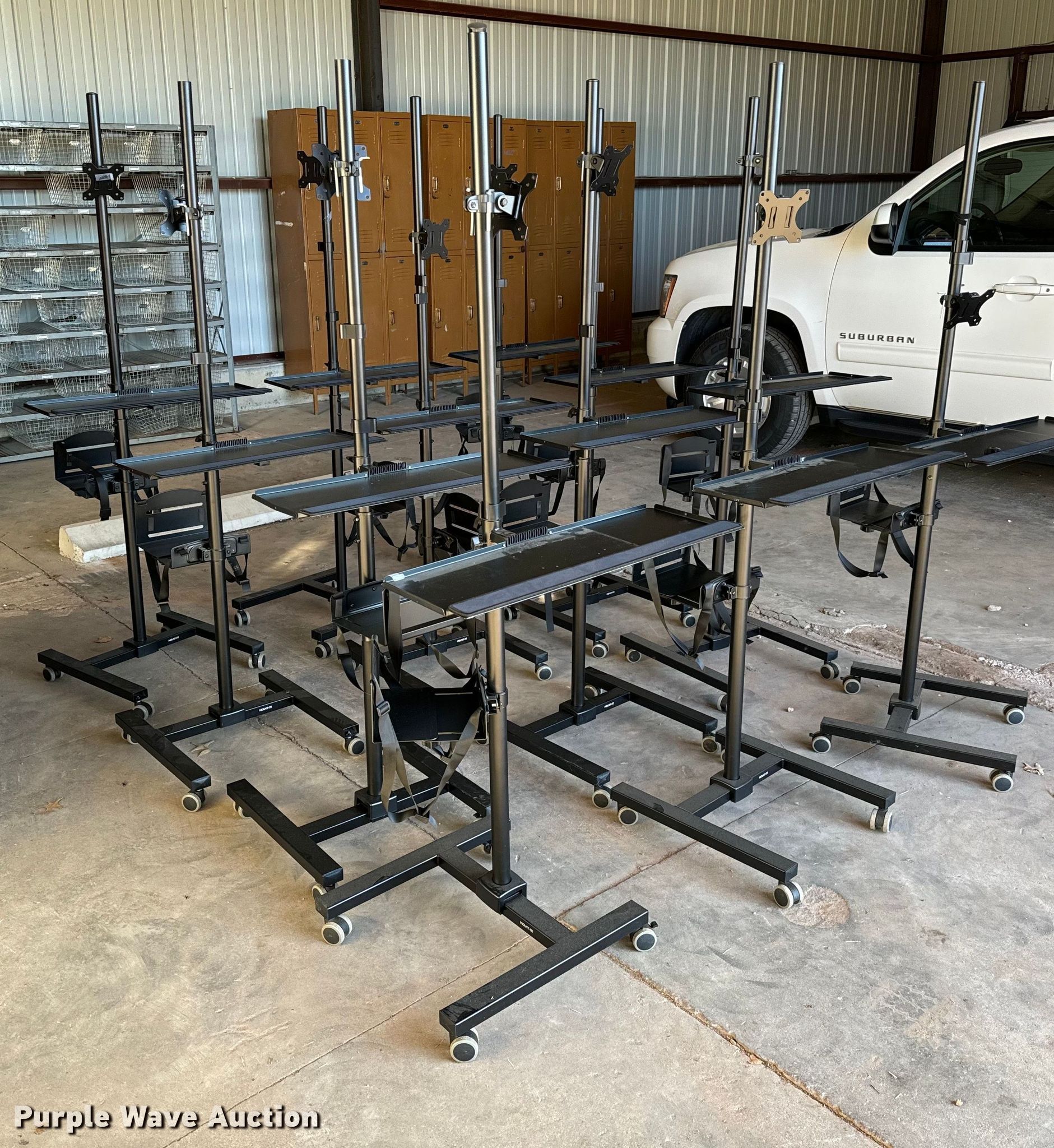 Purple Wave is selling a used Office Supplies and Equip. in Kansas. This item is a (12) computer stands with the following: Lockers not included