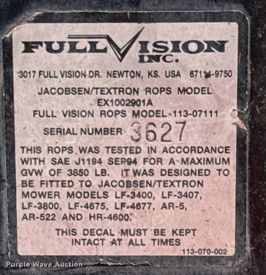 Purple Wave is selling a used Commercial Turf Mower in Kansas. This item is a Jacobsen AR lawn mower with the following: Hours: 4,823 on meter, Cutting width: 96", Serial: 6809801693