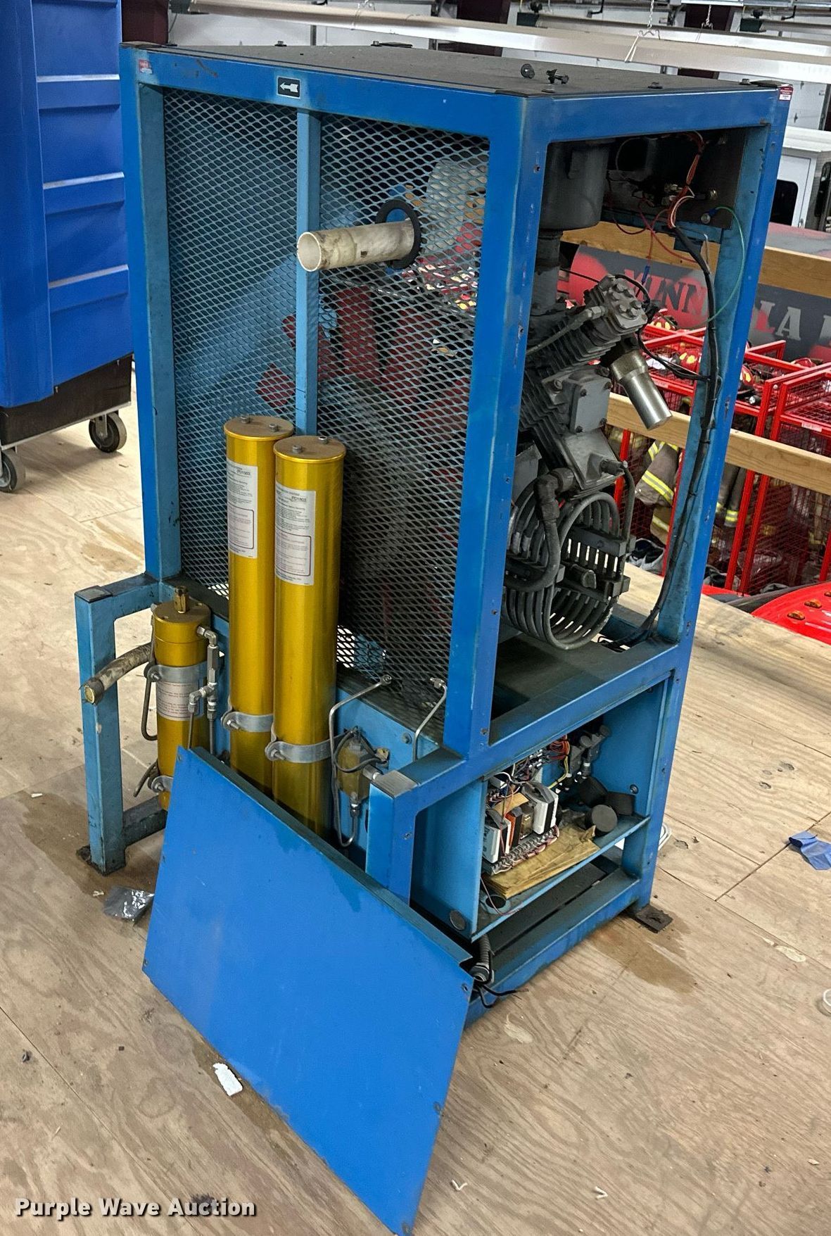 Purple Wave is selling a used Tools in Kansas. This item is a Cascade SCBA fill station with the following: Weg electric motor, Volts: 208/460, Phase: Three, Amps: 54.4/24.6