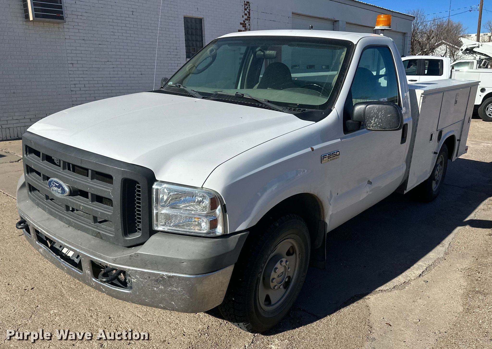 This 2005 Ford F250 Super Duty utility bed pickup truck will sell to the highest bidder regardless of price.