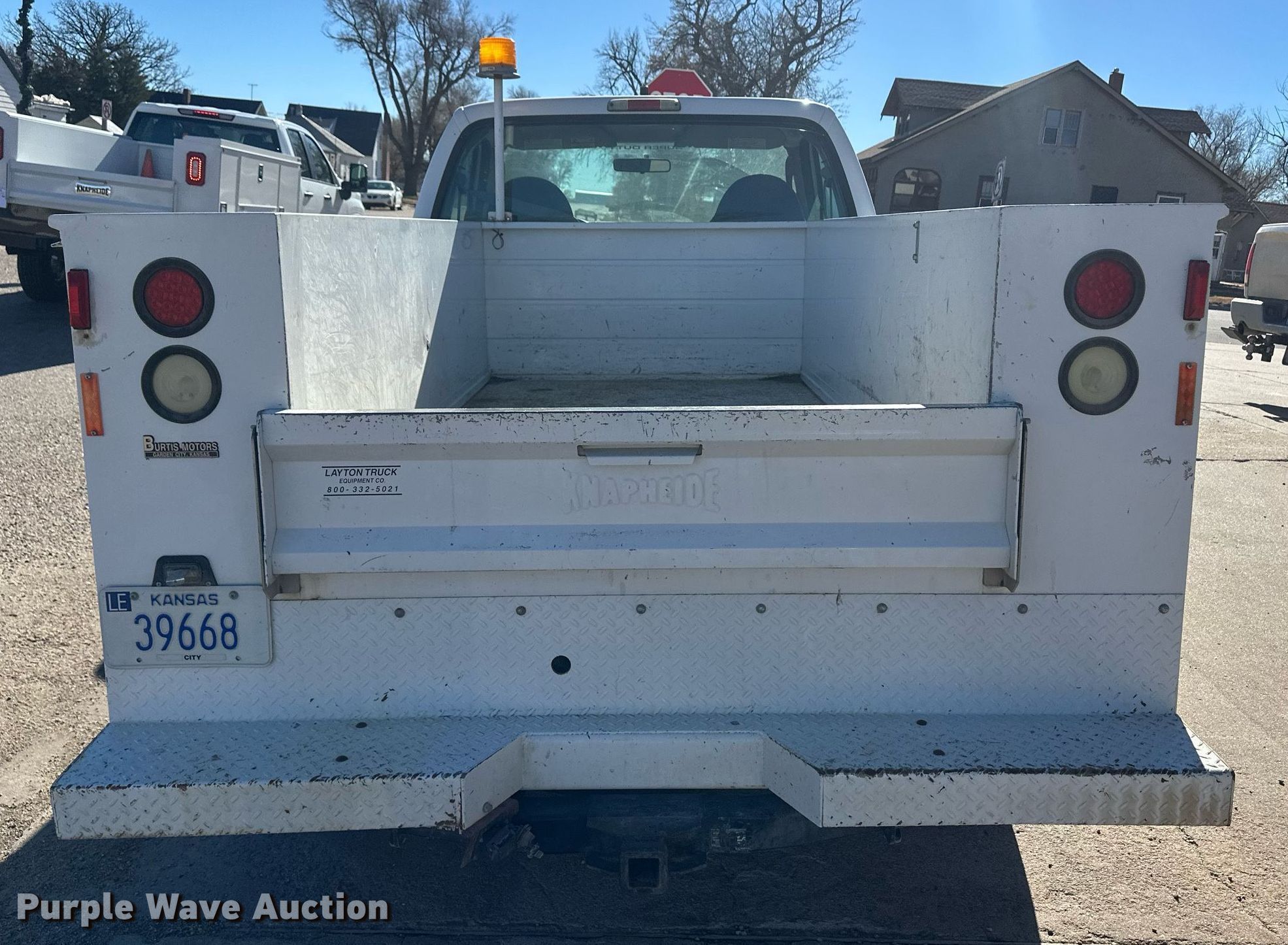 2005 Ford F250 Super Duty utility bed pickup truck. Miles: 107,386 on odometer, VIN: 1FDNF20505EB97270. Engine Displacement: 5.4L V8 SOHC, Cylinders: 8, Fuel type: Gas. Transmission Automatic. Interior AC, Heat. Features Utility bed Knapheide, 8' L x 78" W. Tires Size: 245/75R17. Notes Dash warning indicator: Check engine, Trailer brake controller fault. Kansas title. Title distribution may be delayed up to 14 days from verification of funds. City of Dighton. Dighton, KS 67839