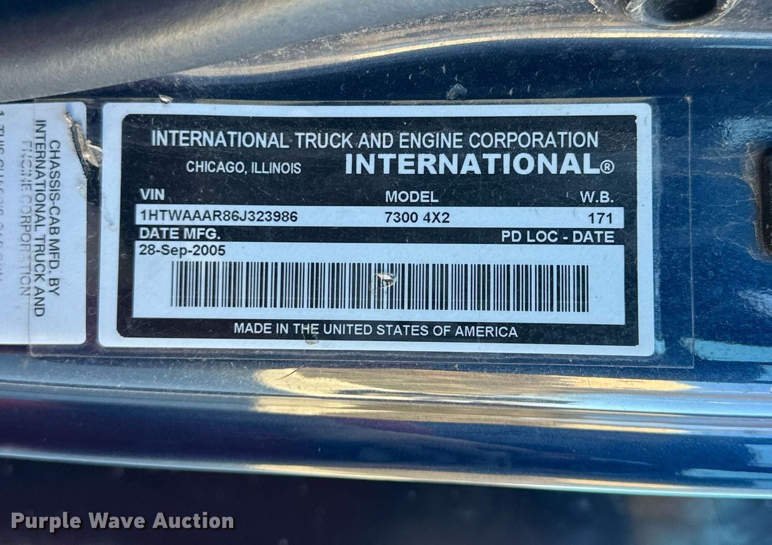 Purple Wave is selling a used Truck Chassis in Kansas. This item is a 2006 International 7300 applicator truck with the following: Miles: 45,639 on odometer, Hours: 4,808 on meter, VIN: 1HTWAAAR86J323986