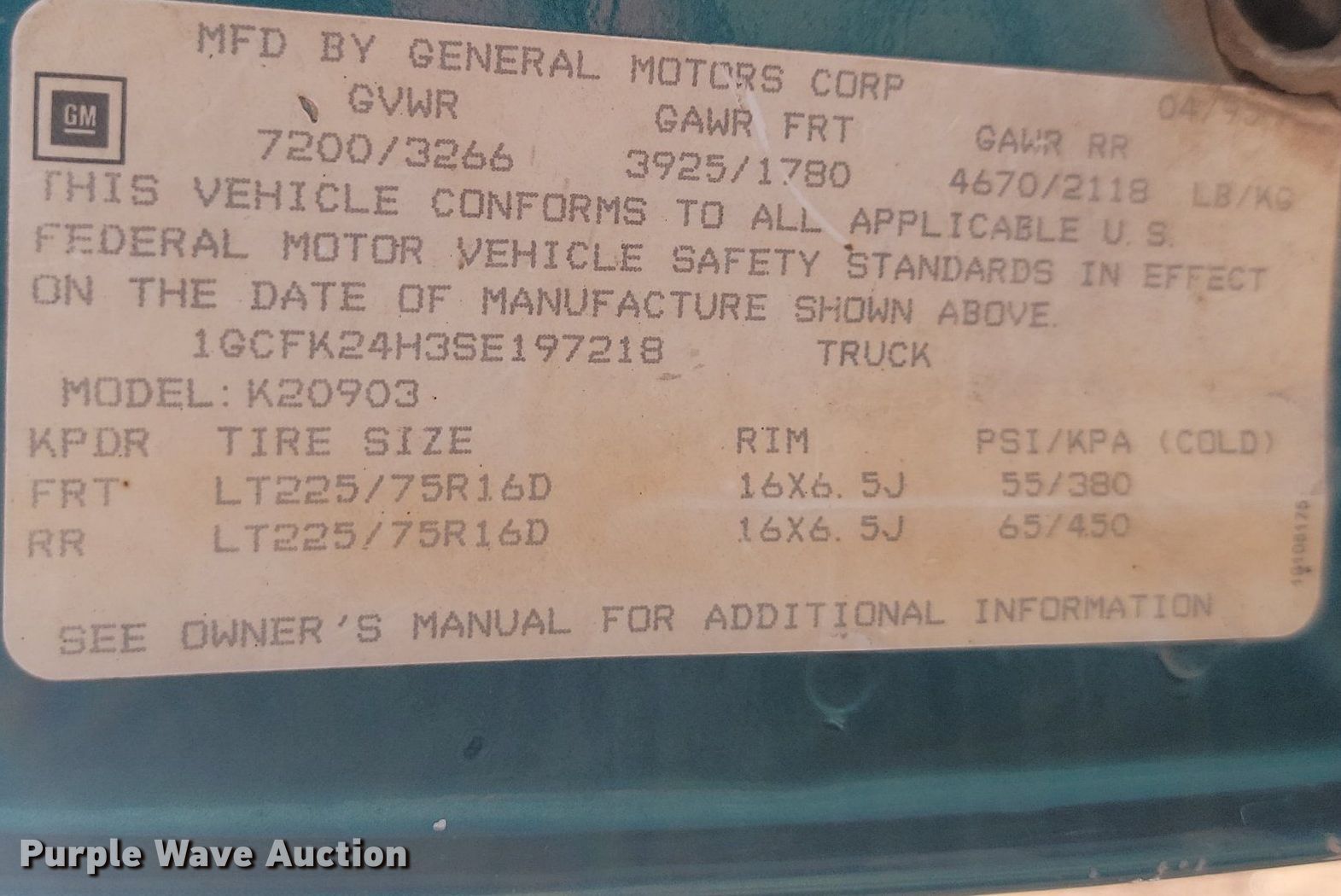 - VIN: 1GCFK24H3SE197218
