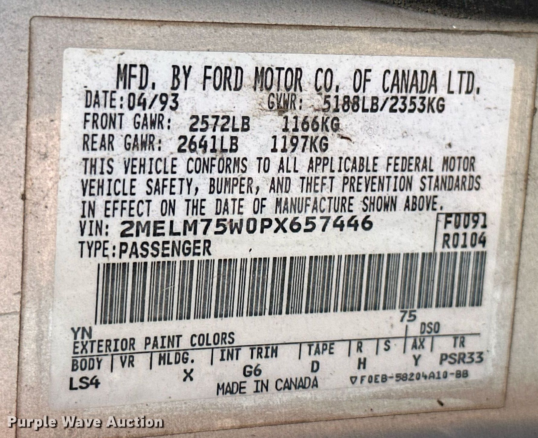 Purple Wave is selling a used Passenger Vehicle in Oklahoma. This item is a 1993 Mercury Grand Marquis LS with the following: Miles: 133,812 on odometer, VIN: 2MELM75W0PX657446