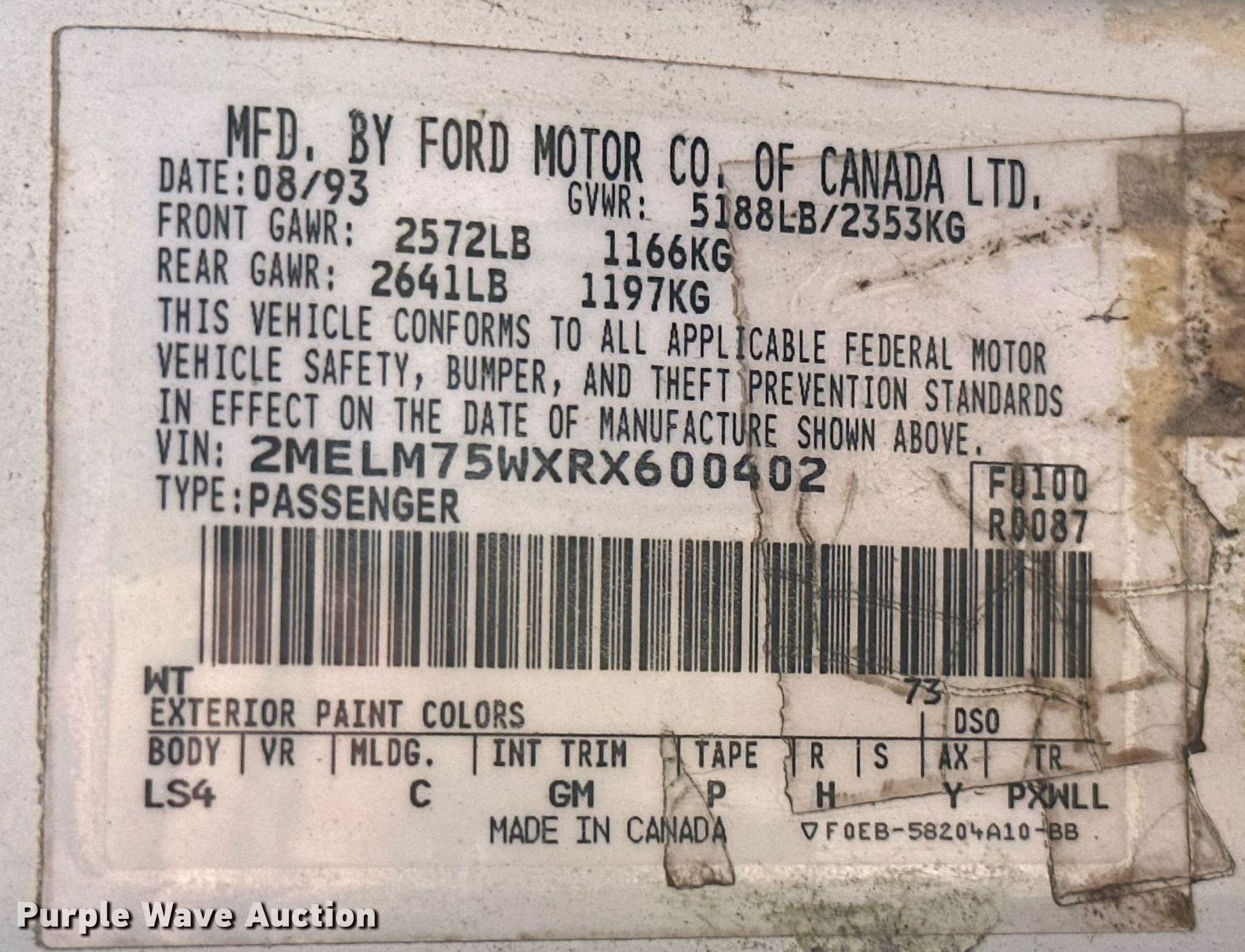 Purple Wave is selling a used Passenger Vehicle in Oklahoma. This item is a 1994 Mercury Grand Marquis LS with the following: Miles: 121,051 on odometer, VIN: 2MELM75WXRX600402