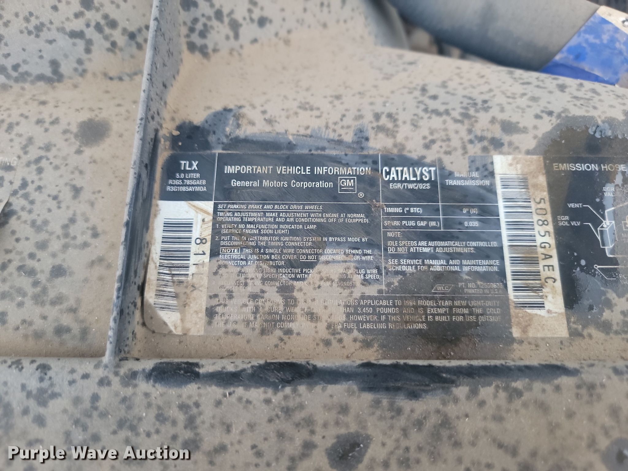 1994 Chevrolet C1500 Ext. Cab pickup truck. Miles: 133,253 on odometer, VIN: 2GCEC19H4R1184050. Engine Displacement: 5.0L V8 VIH, Cylinders: 8, Fuel type: Gas. Transmission Manual, Speed: 5. Interior AC, Heat, Cruise control. Tires Size: 235/75R15. Notes Windshield chipped or cracked. South Dakota title. Title distribution may be delayed up to 14 days from verification of funds. Avon School District. 210 North Pine Street. Avon, SD 57315