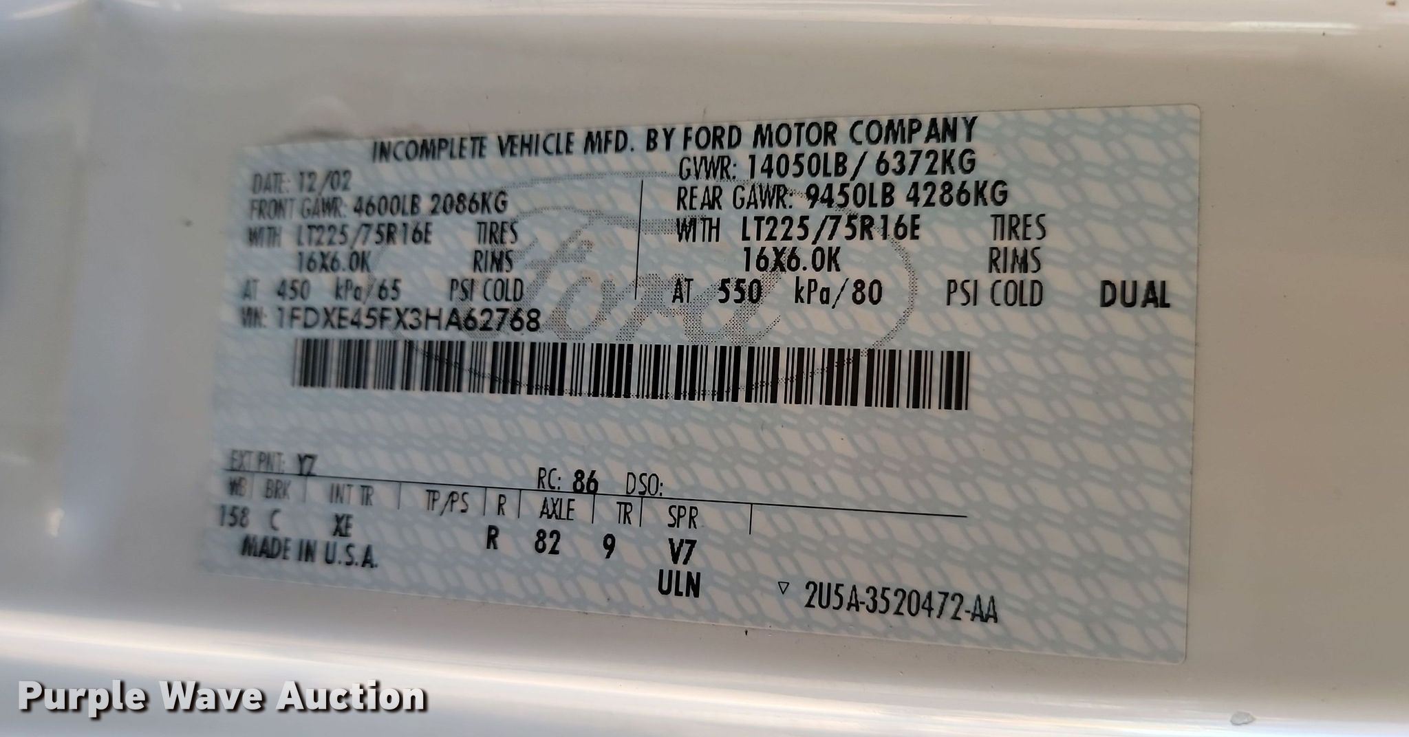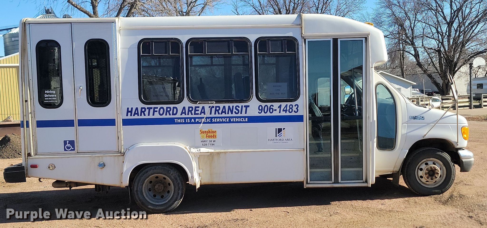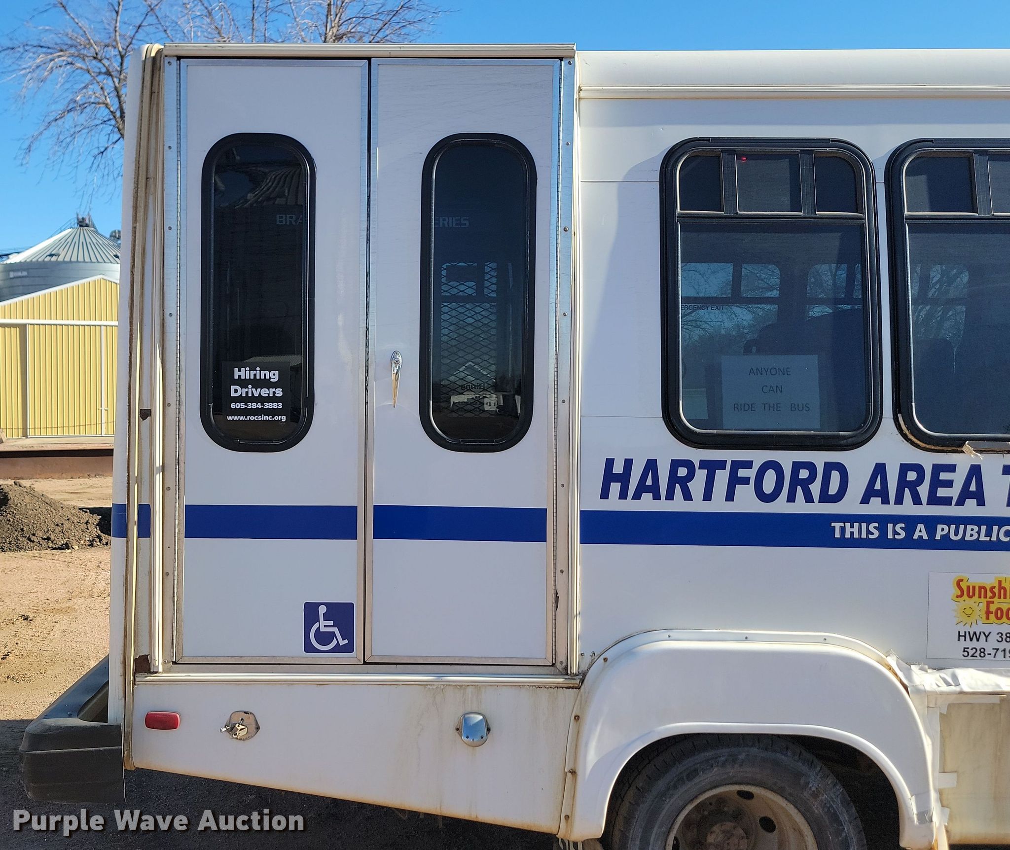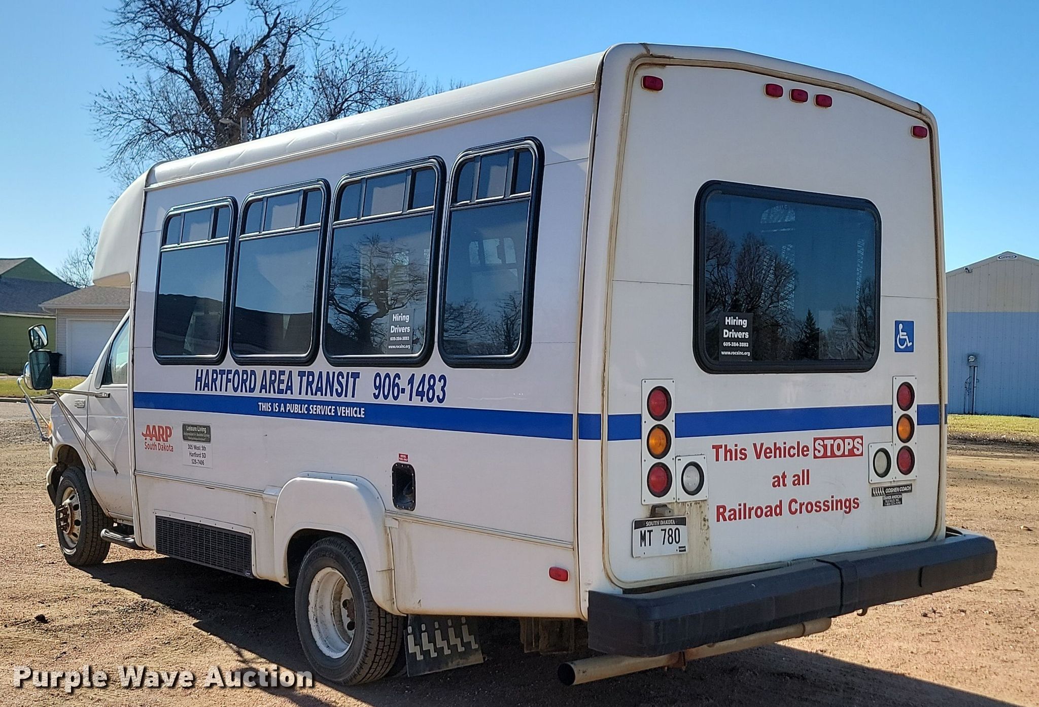 2003 Ford E450 shuttle bus. Miles: 140,516 on odometer, VIN: 1FDXE45FX3HA62768. Engine Displacement: 7.3L, Cylinders: 8, Fuel type: Diesel. Transmission Automatic. Chassis Axles: Single, Suspension: Spring, Brakes: Hydraulic. Interior AC, Heat, Cruise control, Passengers: 10, Wheelchair lift. Tires Size: 225/75R16. South Dakota title. Title distribution may be delayed up to 14 days from verification of funds. City of Hartford - SD. 102 West Menth Street. Hartford, SD 57033