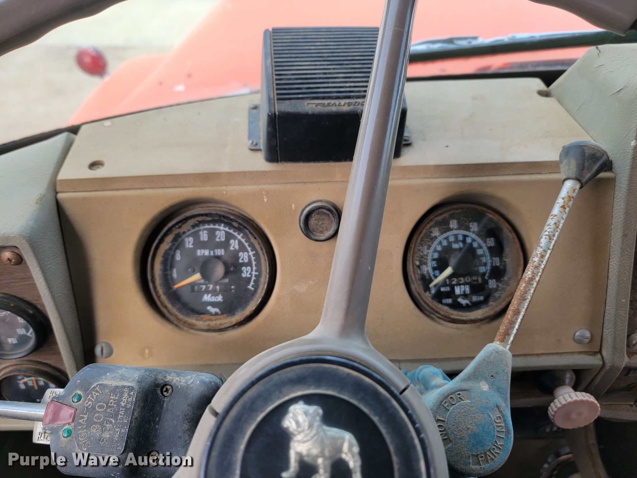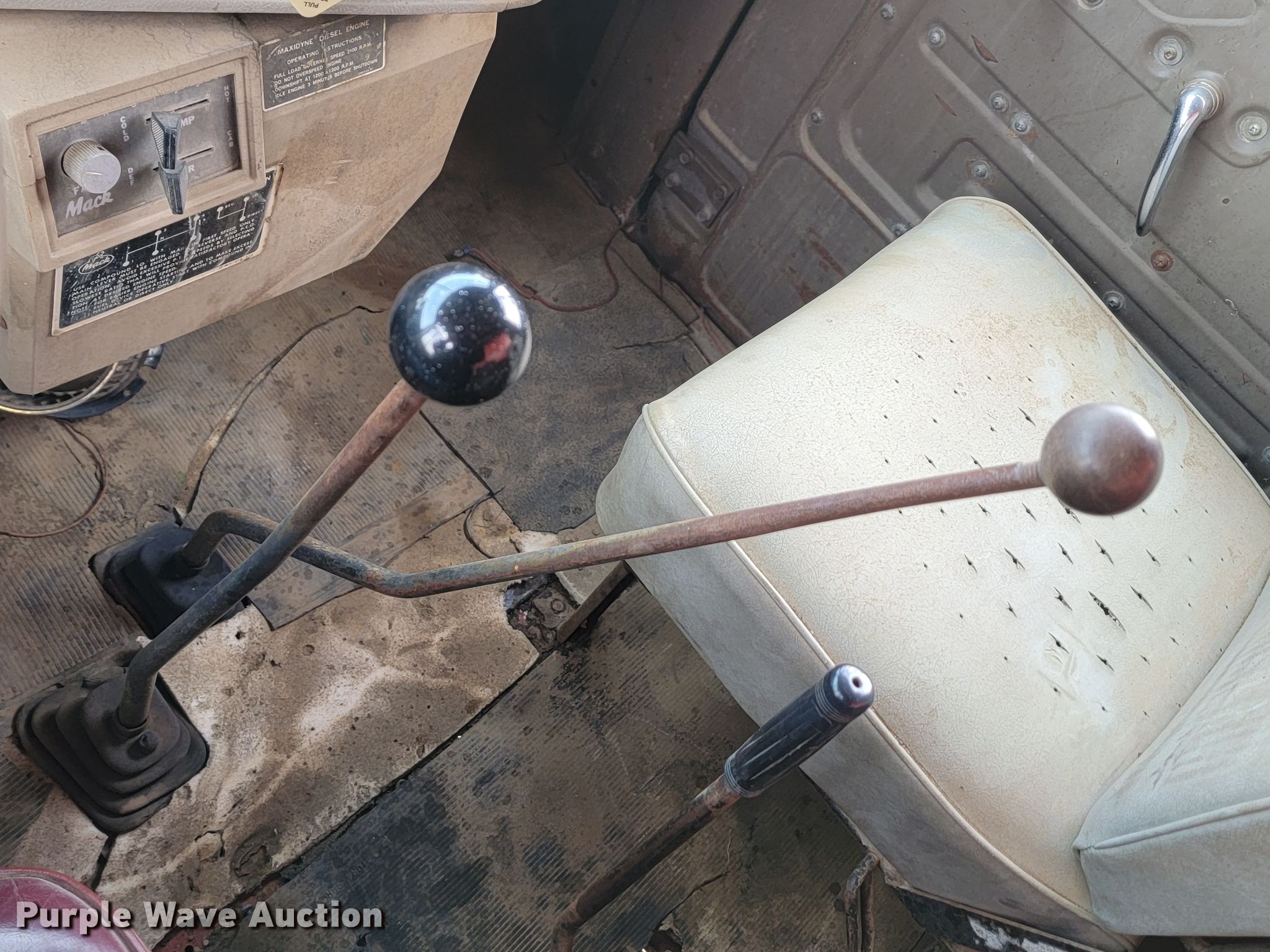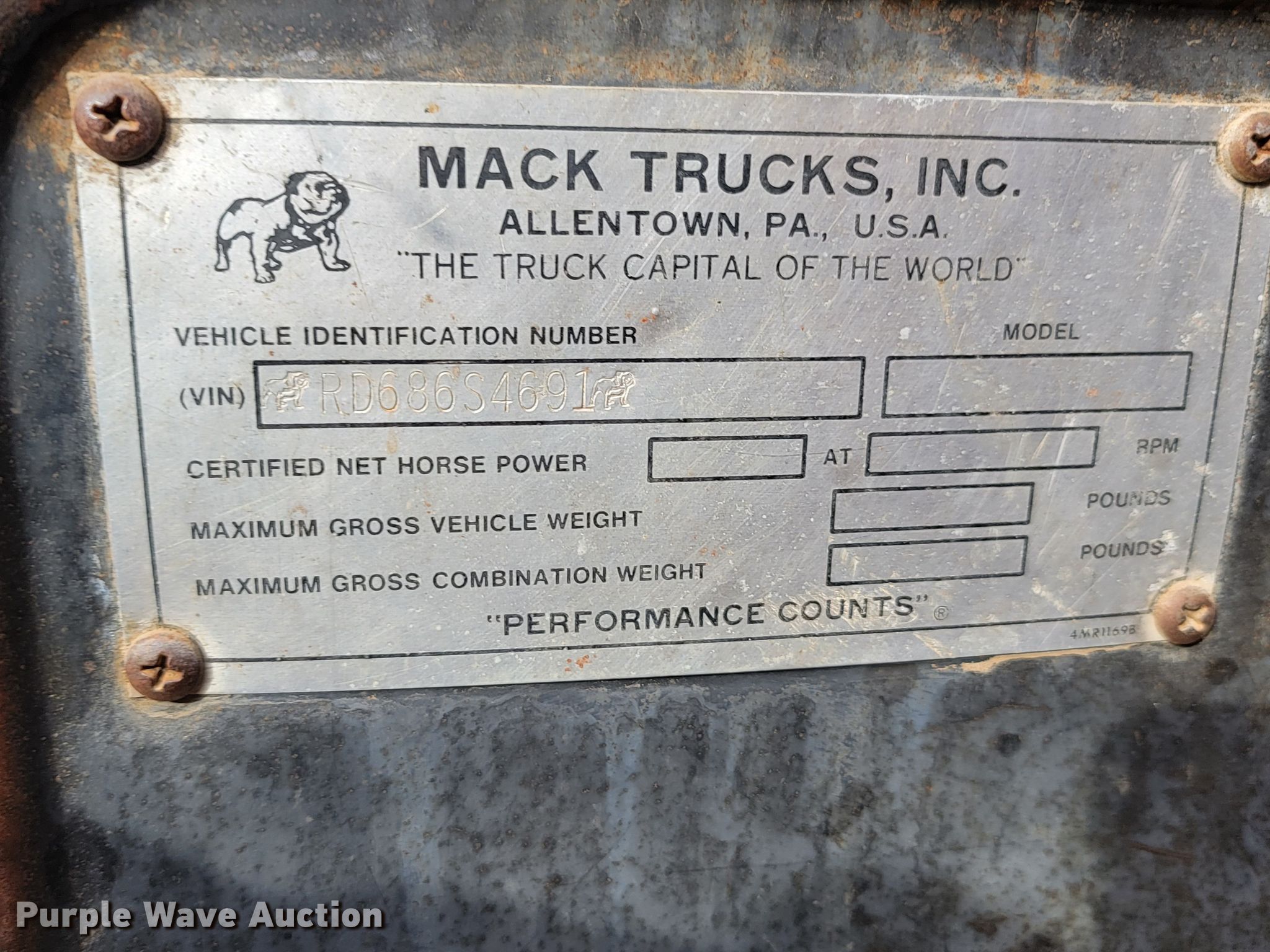 1978 Mack RD686S dump truck. Miles: 212,309 on odometer Actual mileage unknown, Hours: 1,771 on meter, VIN: RD686S4691. Engine Mack, Cylinders: 6, Fuel type: Diesel. Transmission Maxitorque, Manual. Chassis Double frame, Axles: Tandem, Suspension: Camelback, Brakes: Air, PTO. Interior Heat. Features Dump bed 15' L x 96" W, Bed type: Steel, Ram: Single , End gate: Manual. Tires Size: 11R22.5. Notes Windshield chipped or cracked, Non-operational lights, Non-operational heater. Iowa title. Mileage has not been verified. Exempt will be written in the odometer disclosure on the title. Title distribution may be delayed up to 14 days from verification of funds. Jones County, SD. 311 N Main. Murdo, SD 57559
