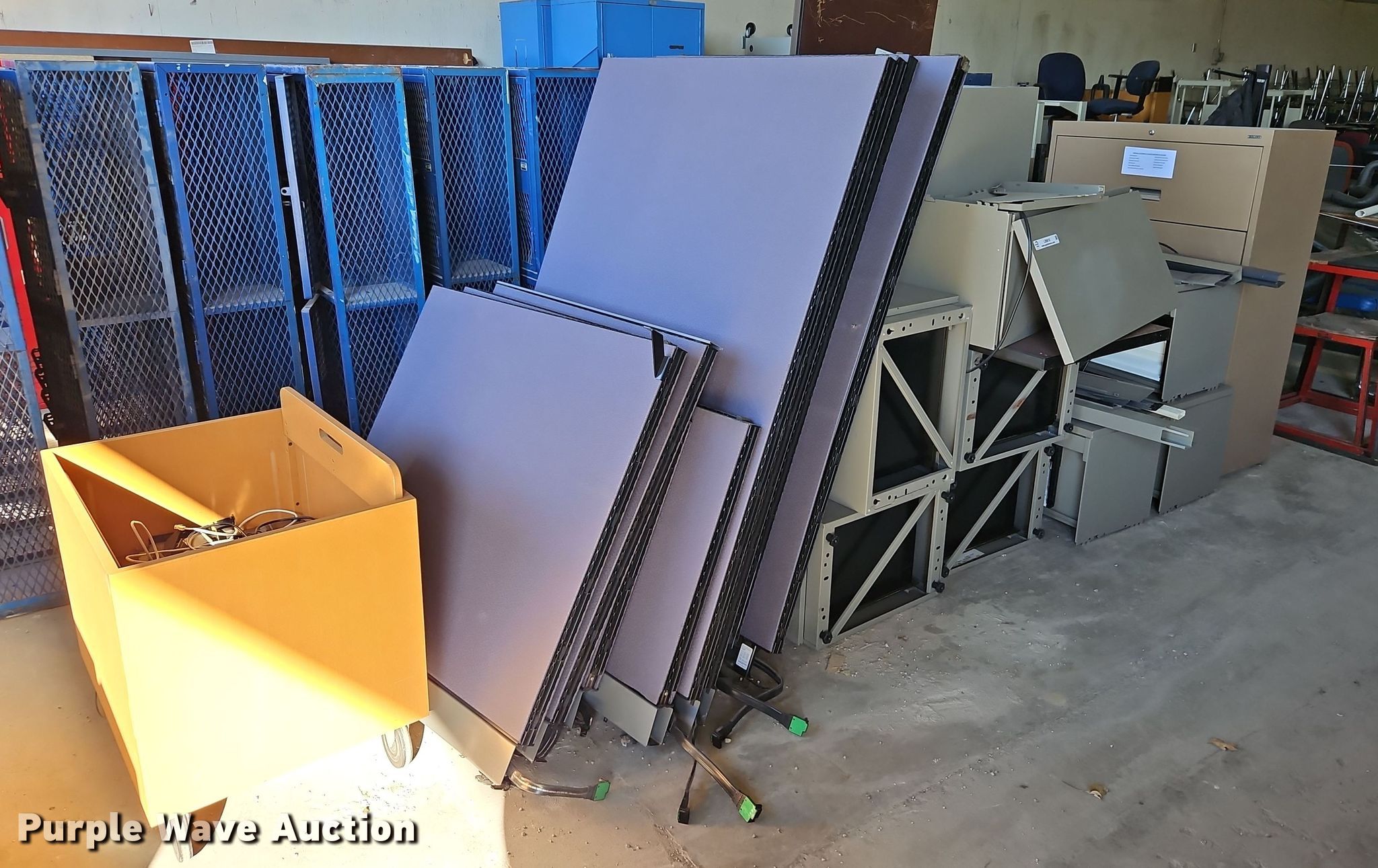 Purple Wave is selling a used Furniture in Kansas. This item is a Cubical furniture with the following: Desk, Walls, Cabinets