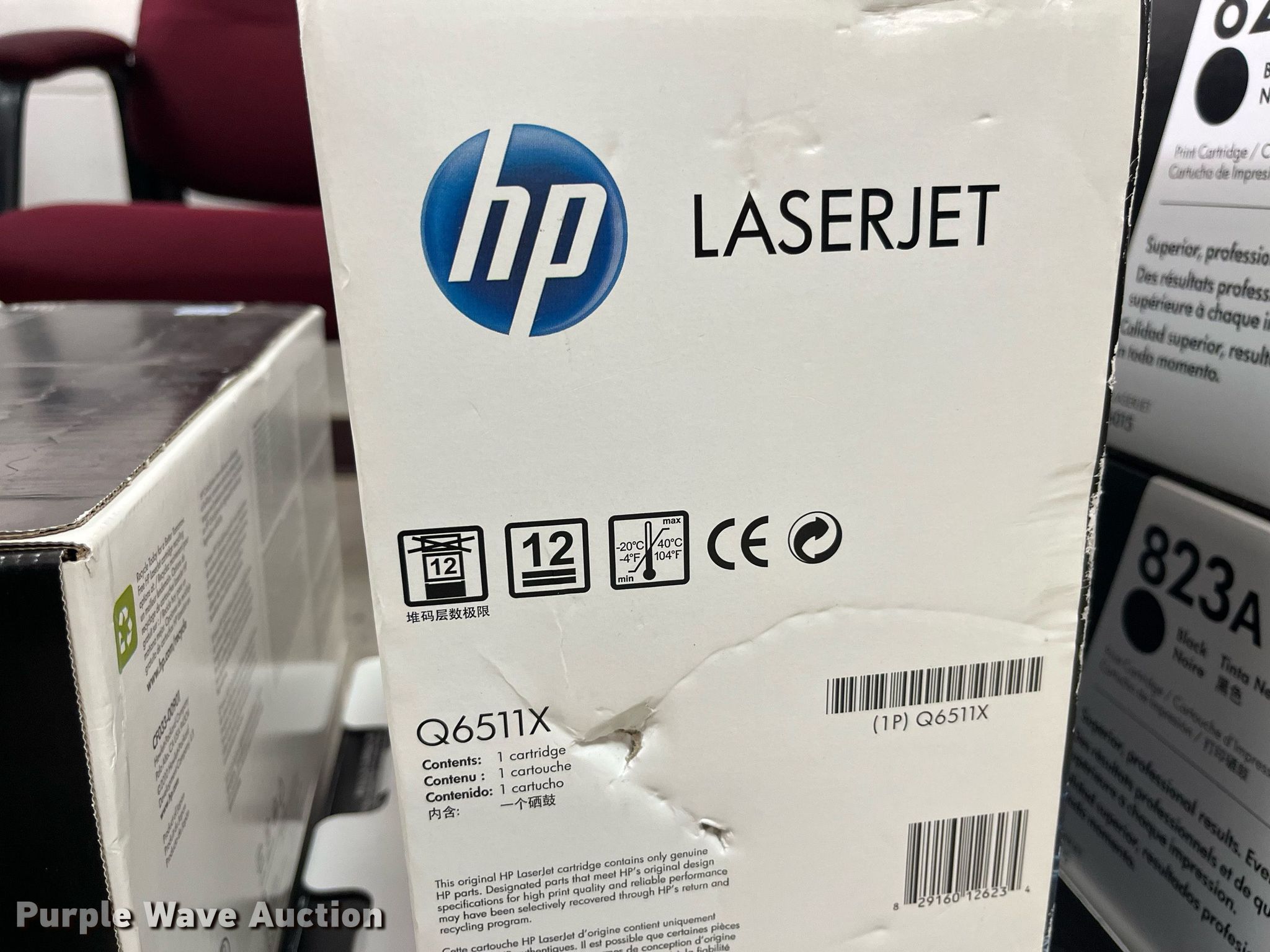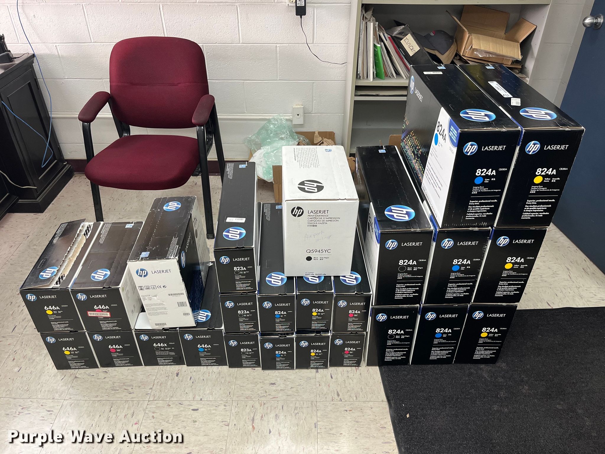 Purple Wave is selling a used Office Supplies and Equip. in Missouri. This item is a HP LaserJet printer ink with the following: Approx. 25 boxes of various ink