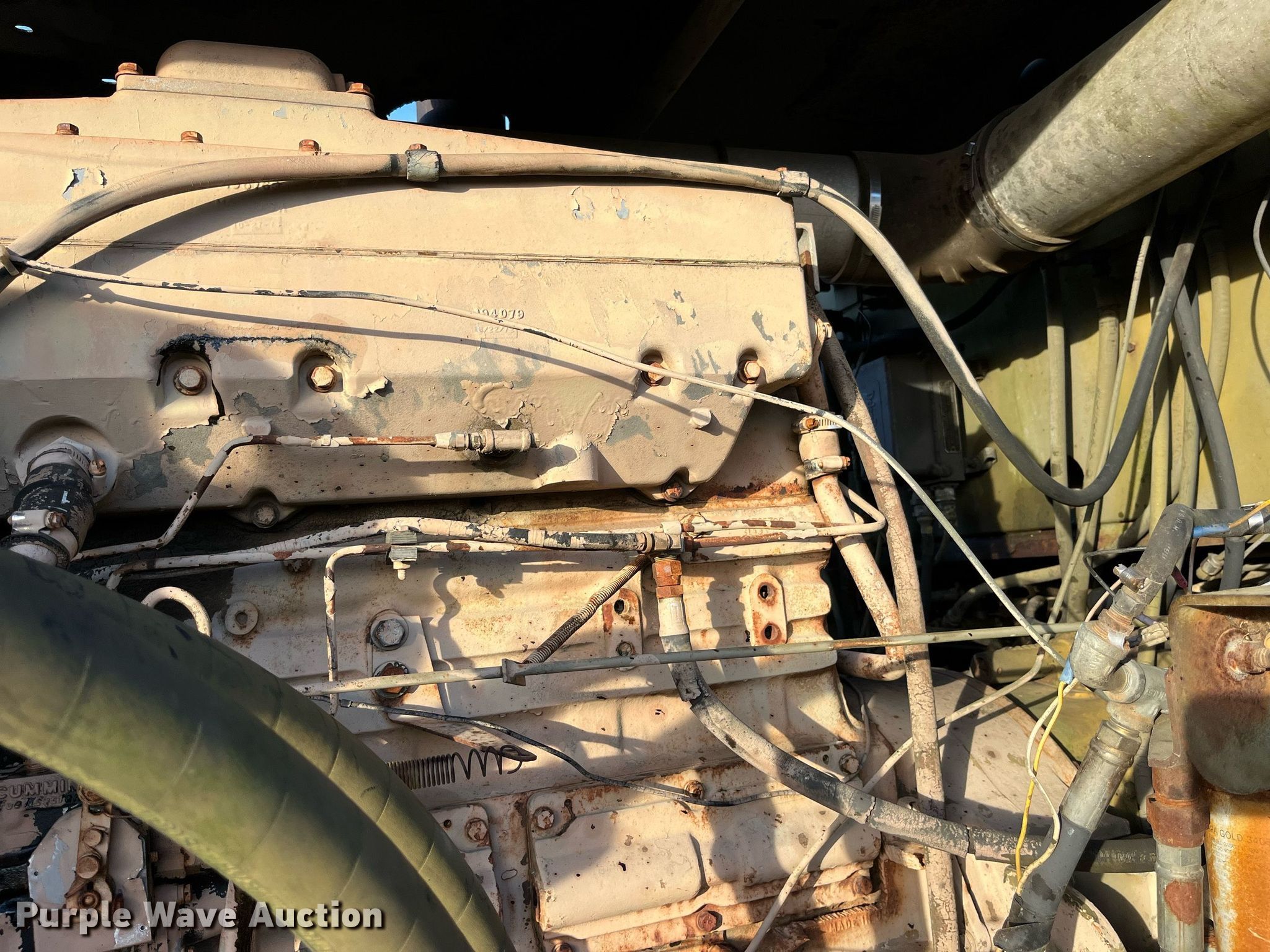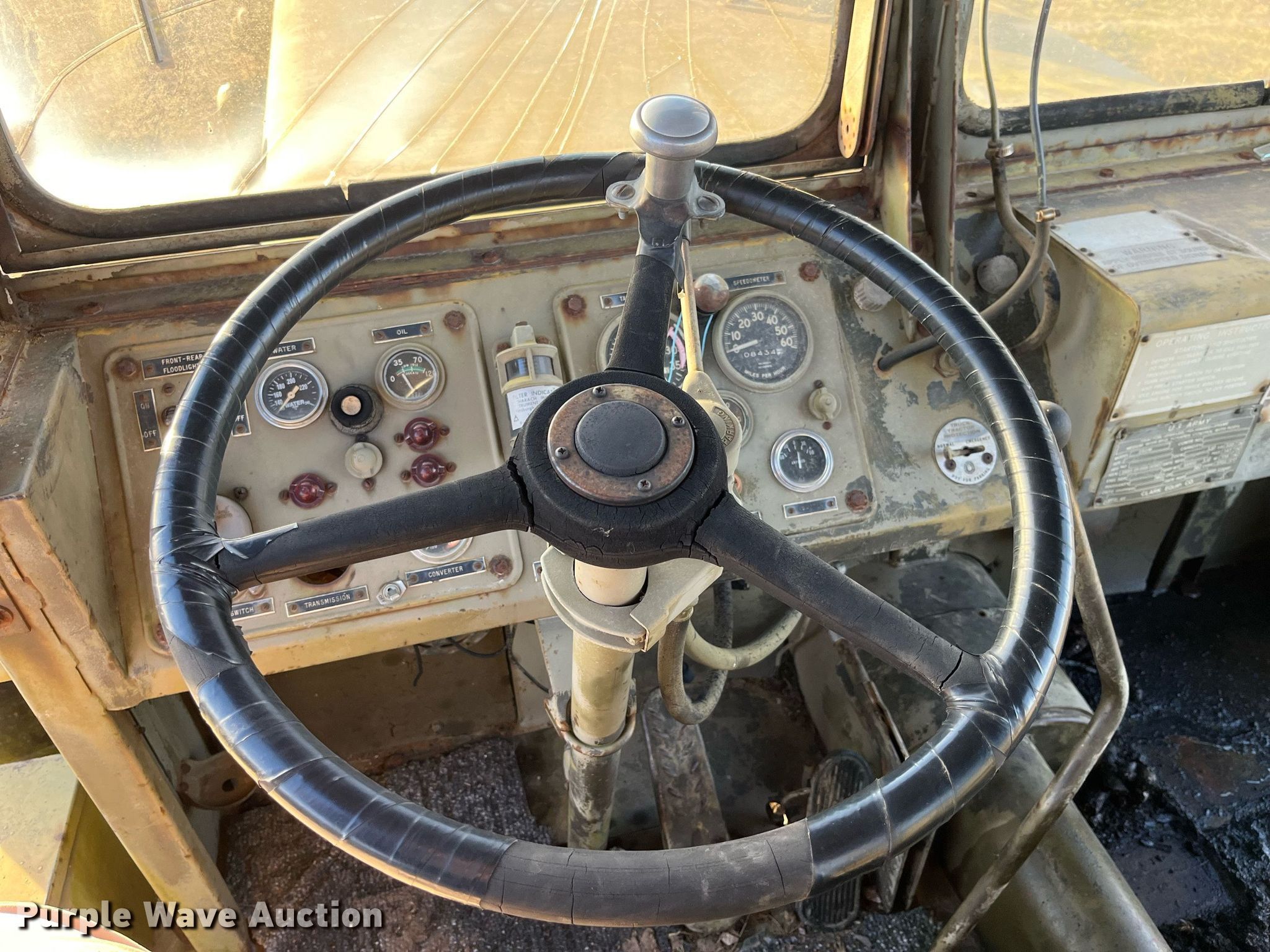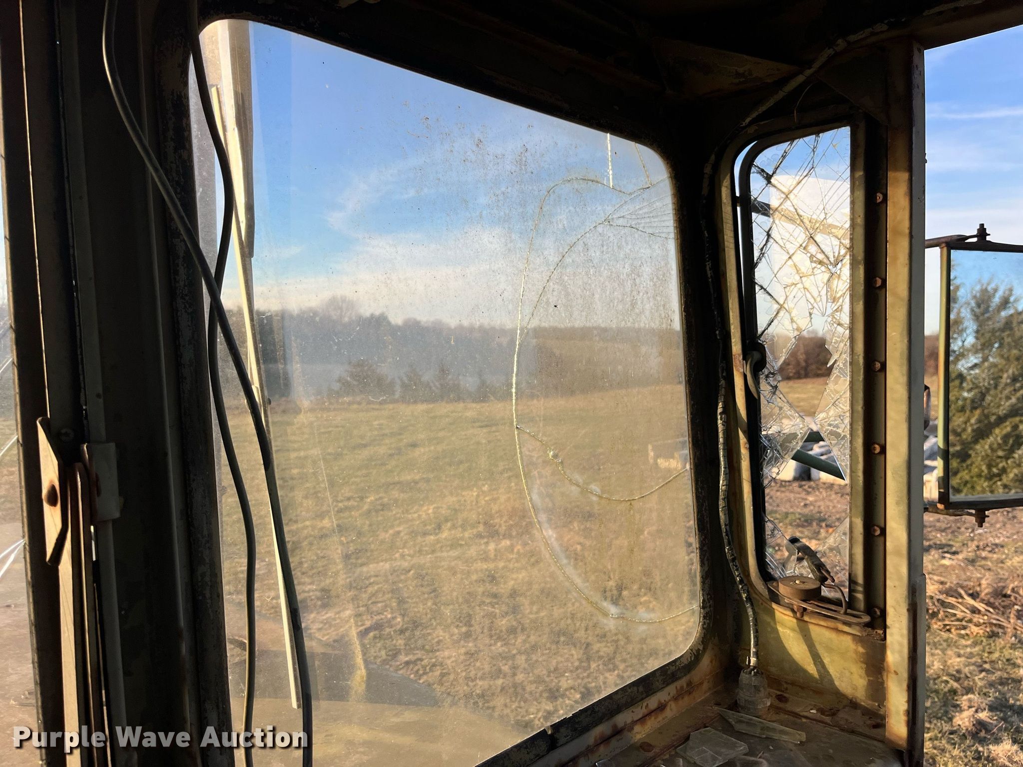 Michigan 290M scraper. Hours: 1,551 on meter, Serial: 61364. Engine Cylinders: 6, Fuel type: Diesel. Transmission Powershift, 4F - 2R. Features Bowl capacity: 12 cu.yd., Hydraulic lift, Scraper controls: Lever controls No. of controls: 3, Rear push block, Blade: 11' 3" W Semi U. Tires Size: 29.5-29. Notes No brakes, Glass cracked, Dead battery, Antifreeze leak. Monroe County. 300 N Main St. Paris, MO 65275