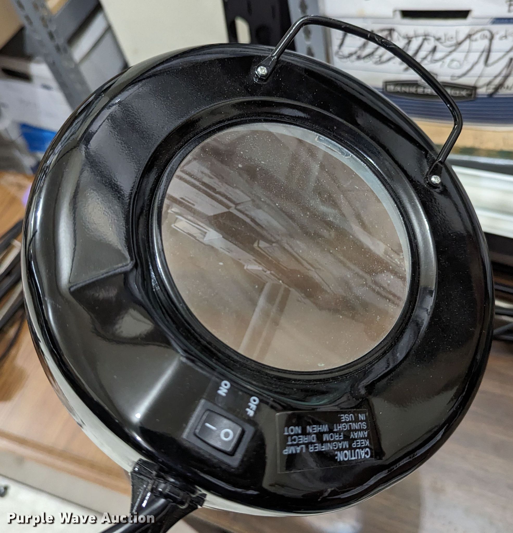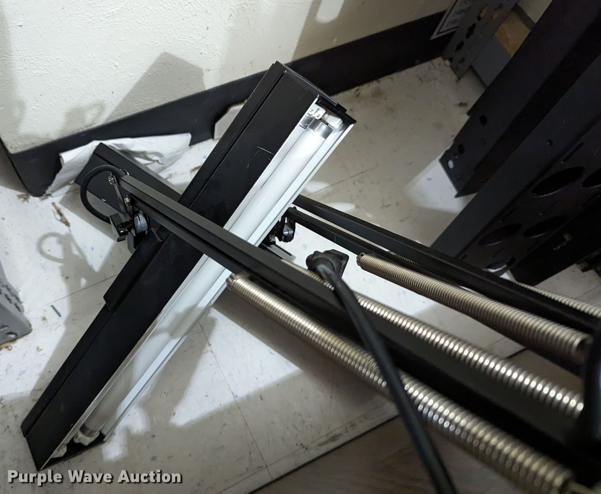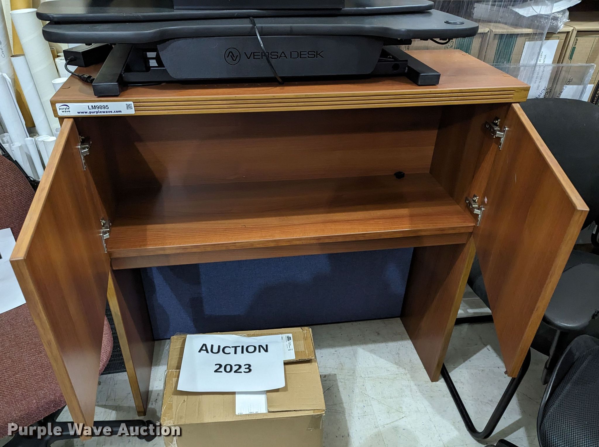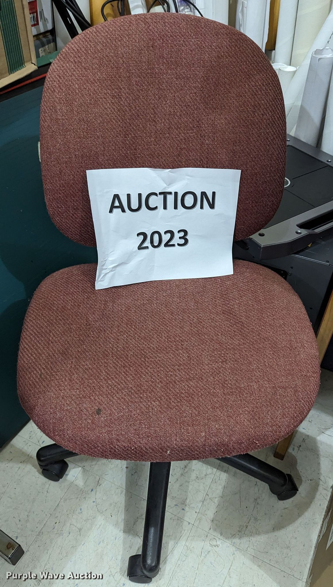 Purple Wave is selling a used Office Supplies and Equip. in Oklahoma. This item is a Office supplies with the following: (3) chairs, Table, Desk, (3) table lights, Magnifying light, Electrical racking, (6) clipboards, Versa keyboard stand, Paper organizer and more